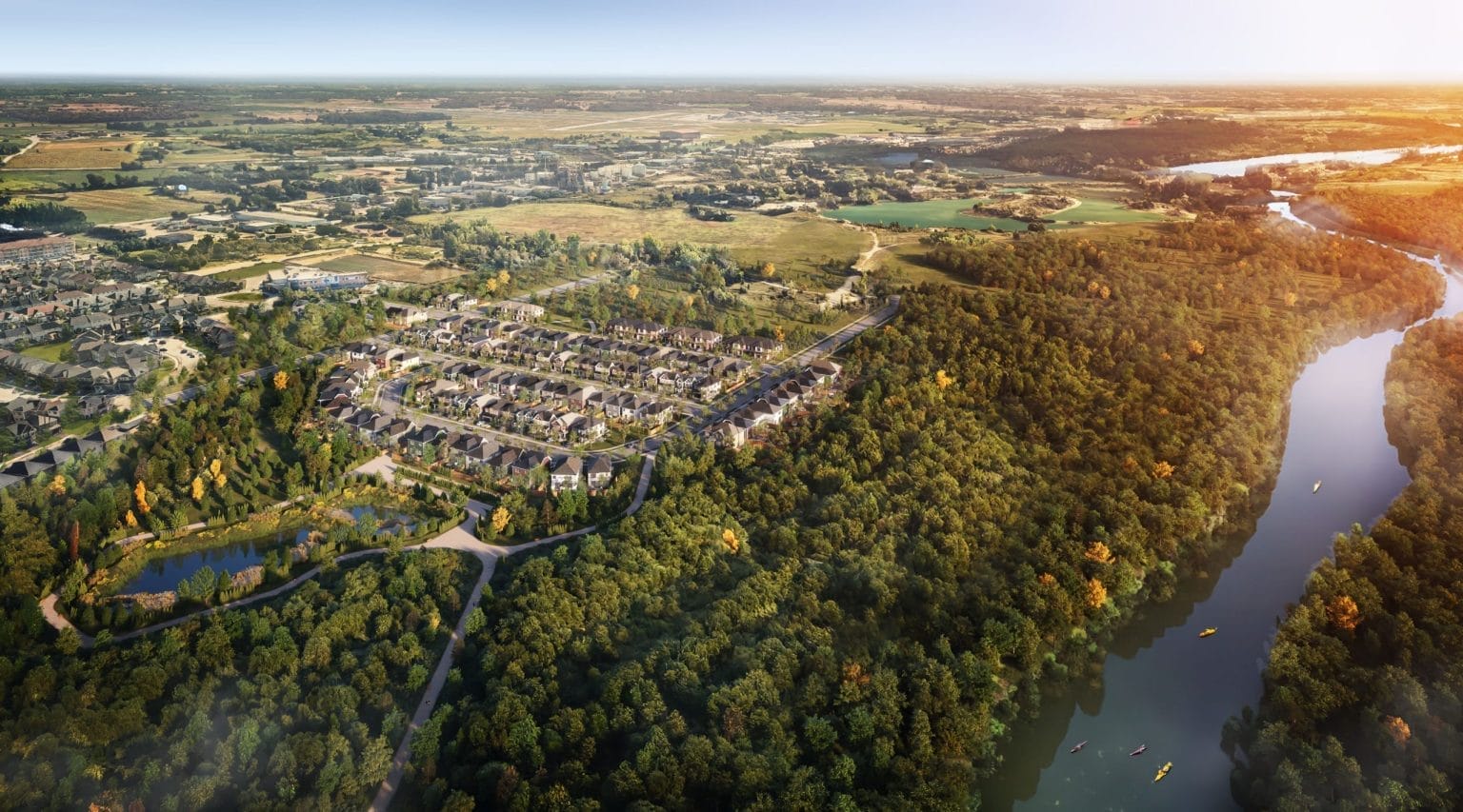 Step outside and let the Grand River greet you. A quiet morning paddle, an afternoon spent casting a line, an evening walk as the sun melts into the water—here, nature is never just a backdrop, but a way of life. Trails wind through the trees, offering space to wander, to reflect, to breathe. At Breslau Memorial Park, families gather for picnics beneath the shade, children fill the playground with laughter, and four-legged friends chase the joy of an open field. Whether it’s the steady rhythm of the river, the crunch of a trail beneath your feet, or the simple pleasure of fresh air and wide-open space, Riverland offers the kind of outdoors that welcomes you in.
