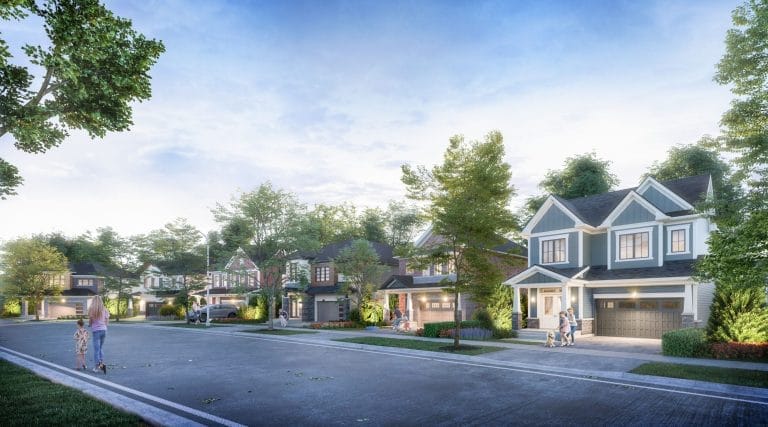 The community offers 2-storey townhomes and single-family detached homes.