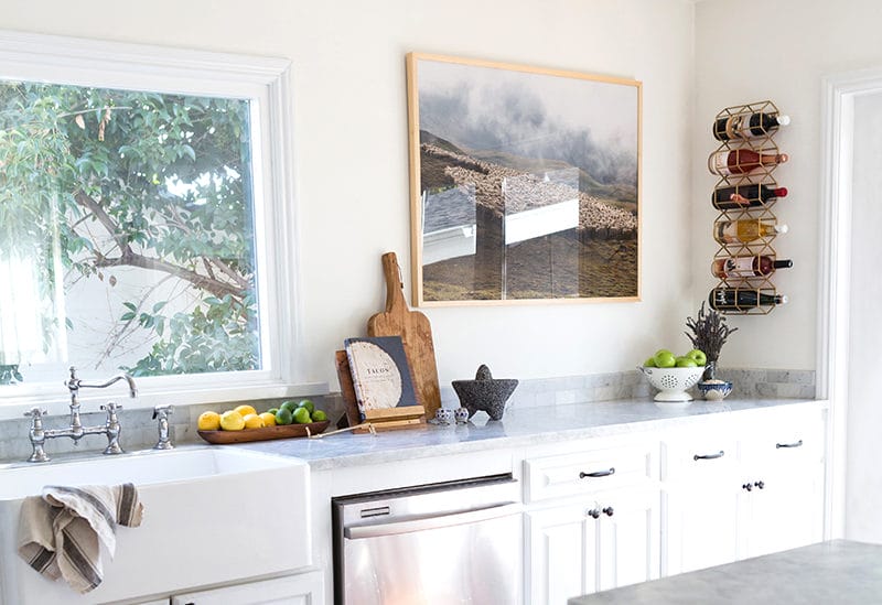 Kelly Lamb’s kitchen put’s her most used items on display, featuring a perfectly curated mix of bright apples, fragrant lavender, rolled oats and our personal favourite, the most stunning display of garlic we’ve ever seen.