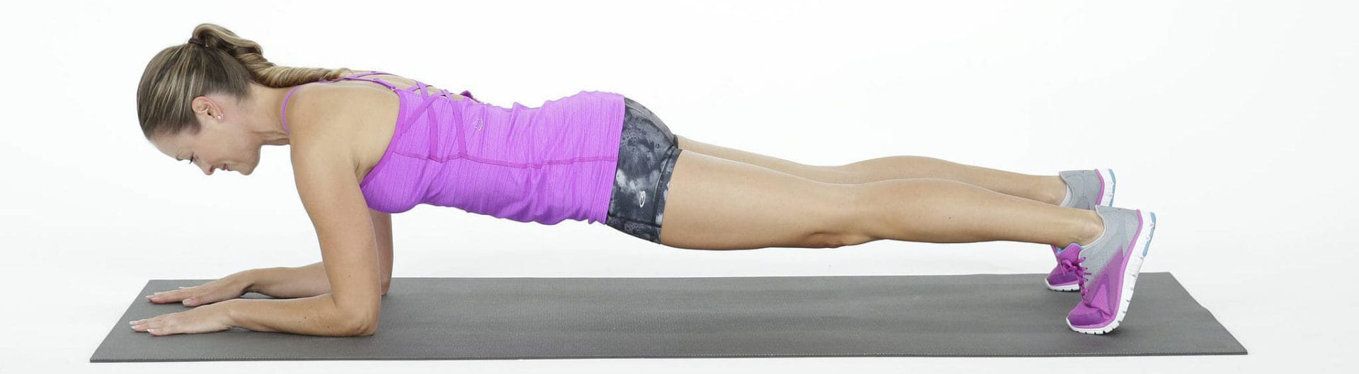 One of the simplest core workouts, plank can be done with your arms fully extended for beginners, or with your forearms on the ground for a more intense core workout. Set a timer to countdown from one minute and try to hold the pose as long as possible, checking in every few seconds to ensure your core is active and your back isn’t melting downward. Don’t worry if you shake or seem unsteady, you’ll improve with more practice.