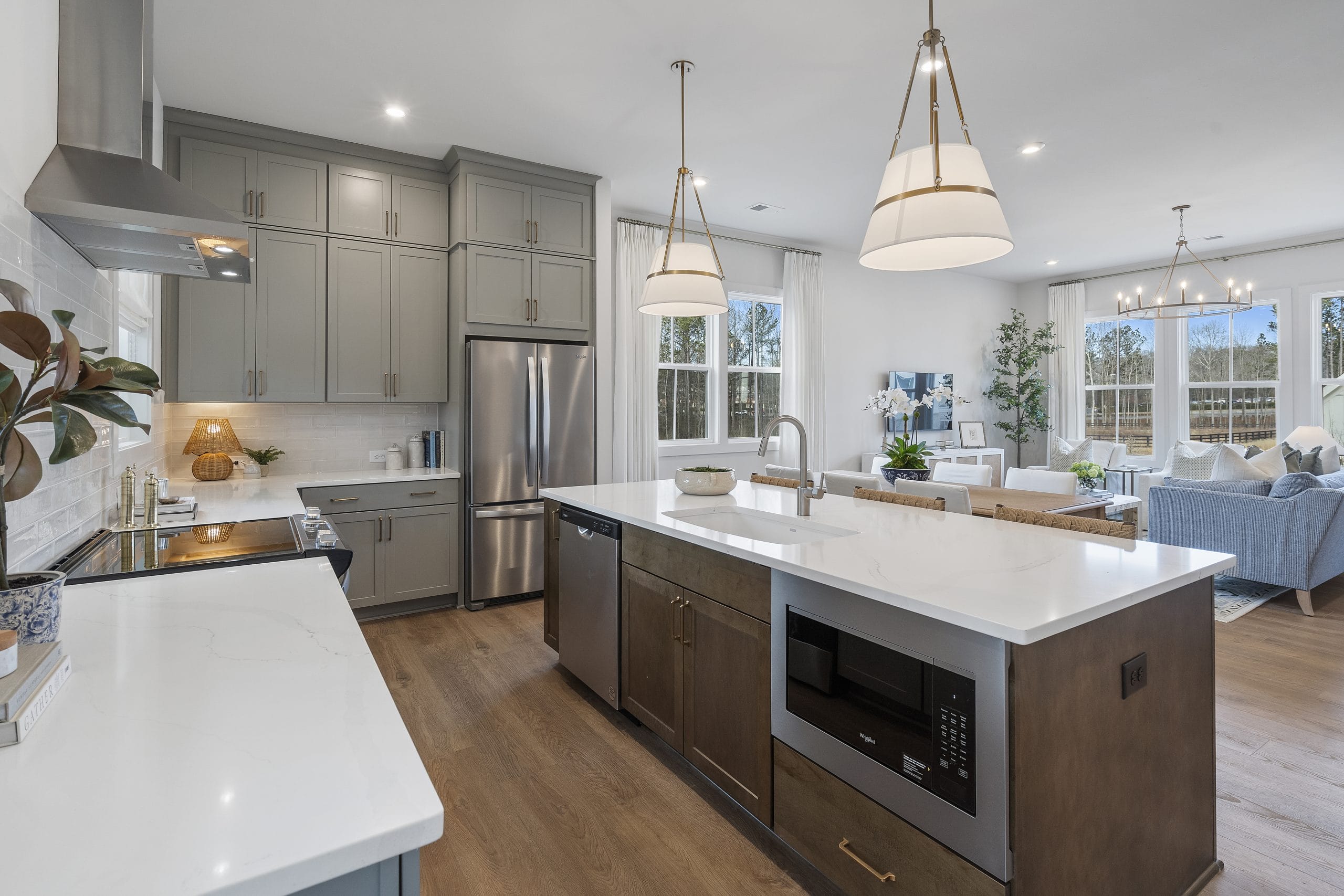 At Zephyr, thoughtfully crafted townhomes blend classic character with modern convenience. Open-concept interiors are designed for seamless living, featuring oversized kitchen islands, private suites, and versatile layouts that adapt to your lifestyle. Sunlit spaces, bespoke finishes, and covered patios create a warm and welcoming atmosphere, while community greenspaces, gravel paths, and shady trees encourage relaxation just outside your door. Two-car side-by-side garages add convenience for those commuting for work or escaping the city for a weekend getaway.