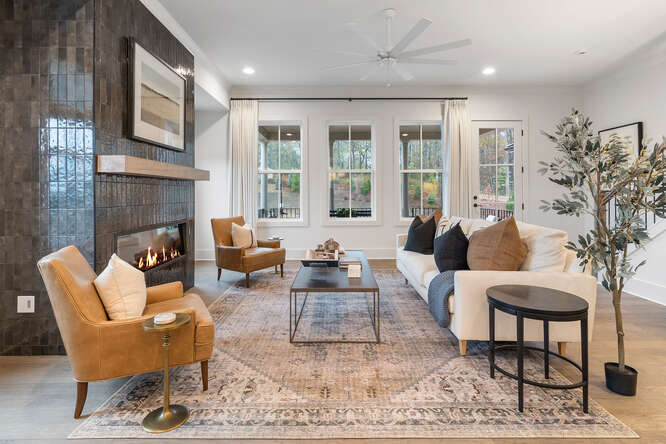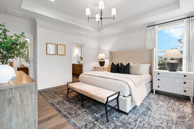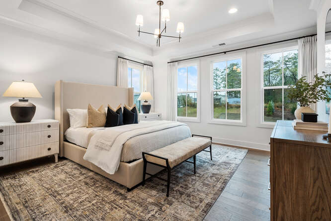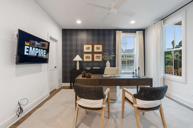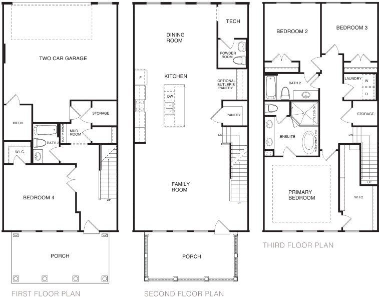 The Harleigh plan features amazing details with an abundance of space. This elevator-ready home opens its doors to so much creativity! The first floor features a bedroom perfect for an office or in-law suite with a full bath. The main floor features a spacious family room with fireplace opening out to your 2nd floor-covered porch overlooking the courtyard, an oversized island large enough to serve as a buffet, a chef’s kitchen with high-end stainless steel appliances, 42” stained/painted cabinets featuring soft close doors/drawers, walk-in pantry that’s alongside the butler’s pantry, the dining room is perfect for your oversized dining table, and a tech area perfect for your drop off station. The 3rd floor features a generous Primary Suite with a large walk-in custom-designed closet, a spacious bathroom with luxury tiles, large walk-in shower with bench, and a lavish soaking tub. There is a laundry room and 2 secondary bedrooms that share a full bath.