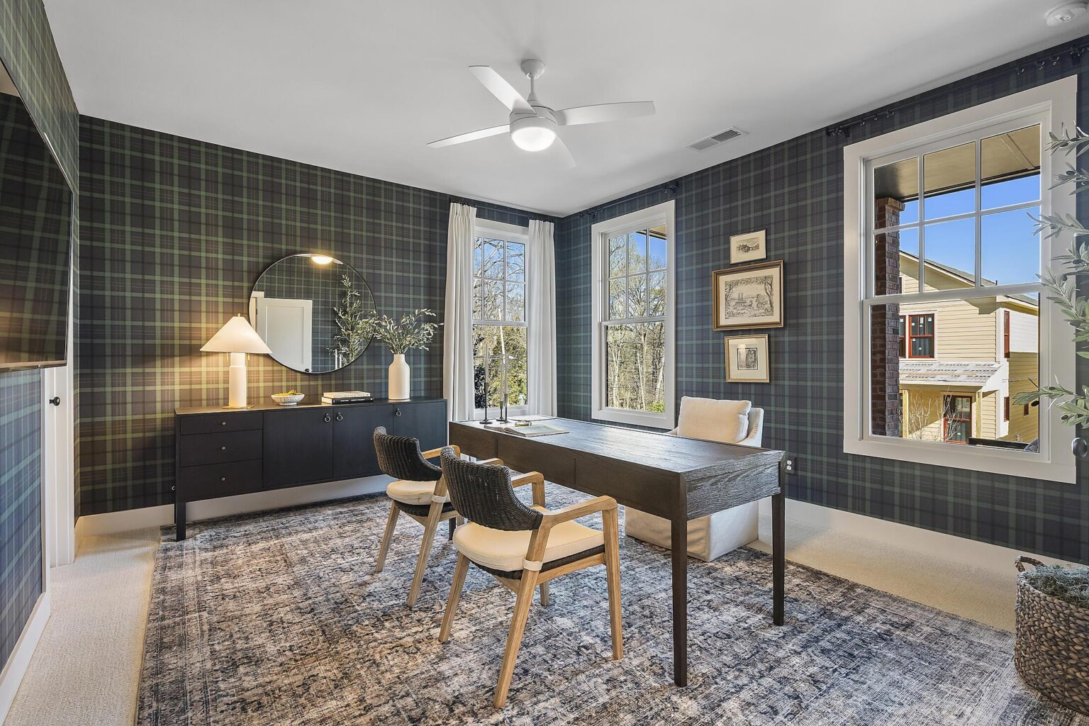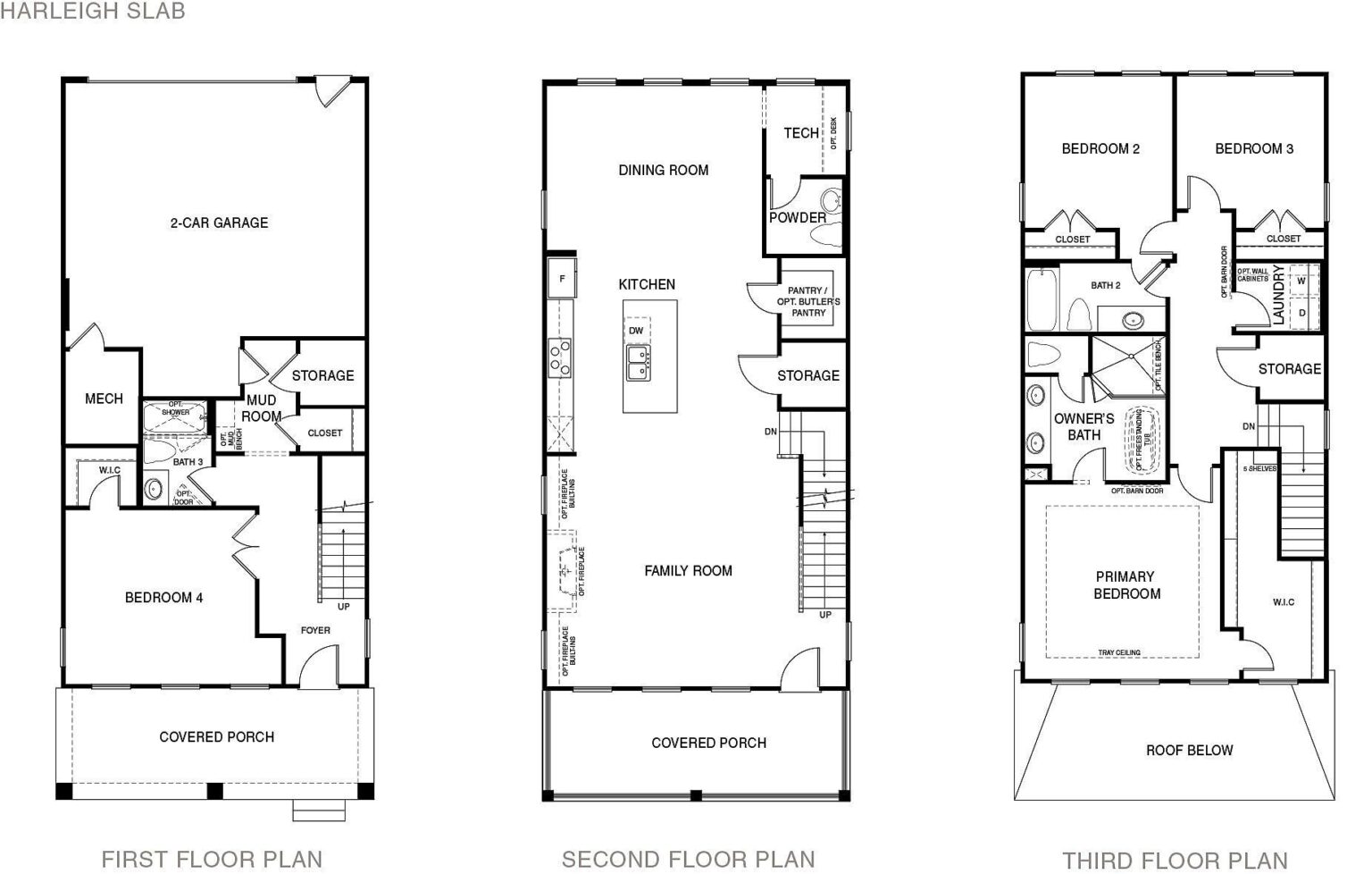 The Harleigh plan features amazing details with an abundance of space. The first floor features an expansive fourth bedroom with a full bath and mud room. The main floor features a spacious family room with fireplace opening out to your 2nd floor-covered porch, an oversized island large enough to serve as a buffet, a chef’s kitchen with high-end stainless steel appliances, stained/painted cabinets featuring soft close doors/drawers, walk-in pantry that’s alongside the butler’s pantry, the dining room is perfect for your oversized dining table, and a tech area perfect for your drop off station. The 3rd floor features a generous primary bedroom with a large walk-in custom-designed closet, a spacious bathroom with luxury tiles, large walk-in shower, and a lavish soaking tub. There is a laundry room and 2 secondary bedrooms that share a full bath.