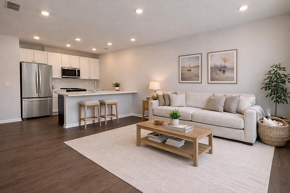 The Meridian offers three thoughtfully designed levels that maximize comfort and functionality for modern living. On the first floor, a welcoming foyer and convenient two-car garage provide easy access and storage. The second floor is the heart of the home, featuring a spacious open-concept family room that flows seamlessly into the kitchen, complete with a walk-in pantry, ample counter space, and an oversized island perfect for gathering. A private bedroom and additional storage space complete this level.