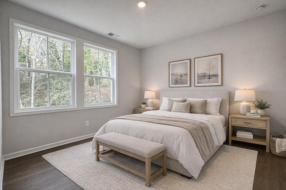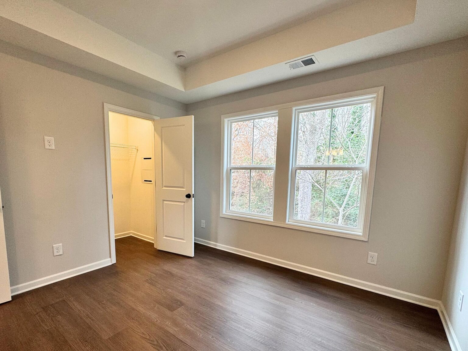 The third floor is home to the serene primary suite, boasting a walk-in closet and a spa-inspired ensuite with dual sinks and a walk-in shower. An additional bedroom with its own walk-in closet, a shared full bath, and a centrally located laundry area ensure everyday ease.