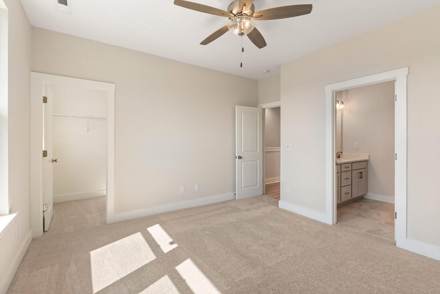 From the covered front entry into the first floor, you will find that every inch of the Kylen is designed for functionality. The 2-car rear entry garage includes a storage closet, and the first floor has a private guest suite with full bath. The open second floor features a kitchen with island large enough for dining, plus a pantry closet. It flows into the spacious Living room, which leads to the covered terrace. Tucked away is the Powder room, and then it's on to the third floor. Here you'll find a stacked laundry closet and two bedrooms, each with a private bath. The Premier Suite has a walk-in closet and the bath includes a double-sink vanity and large shower. This plan is available as an interior or exterior townhome, which offers additional windows for even more natural light.