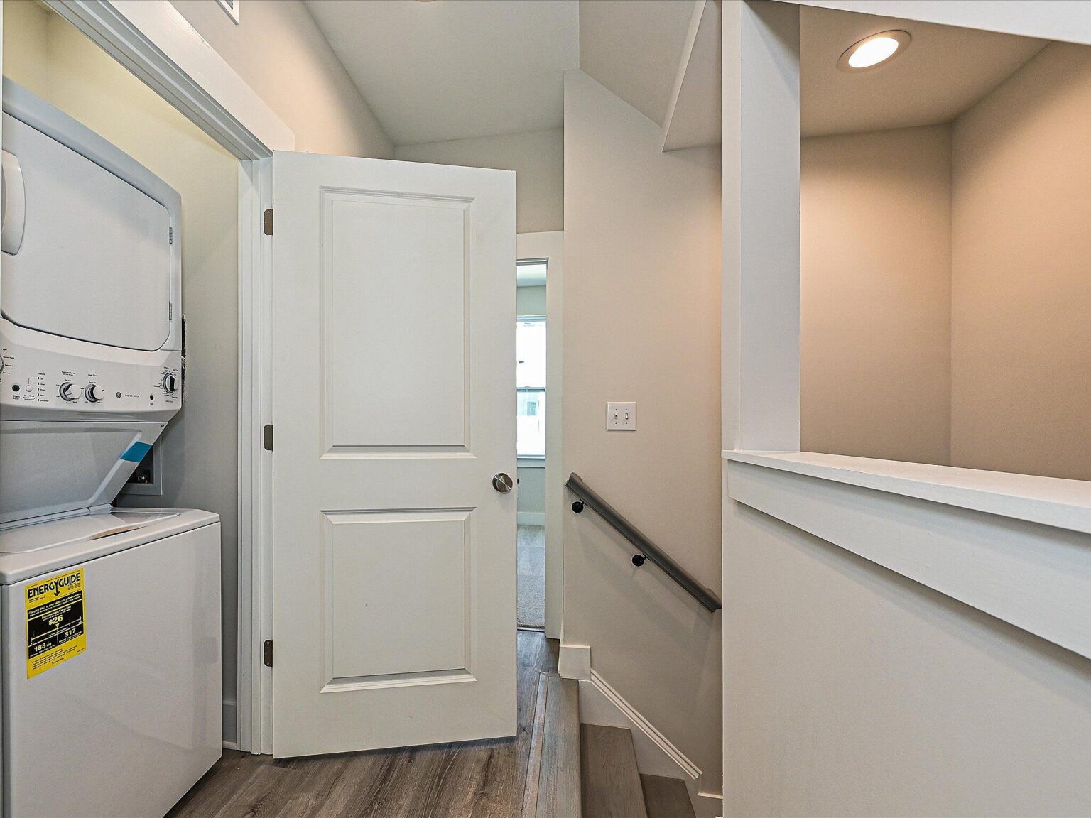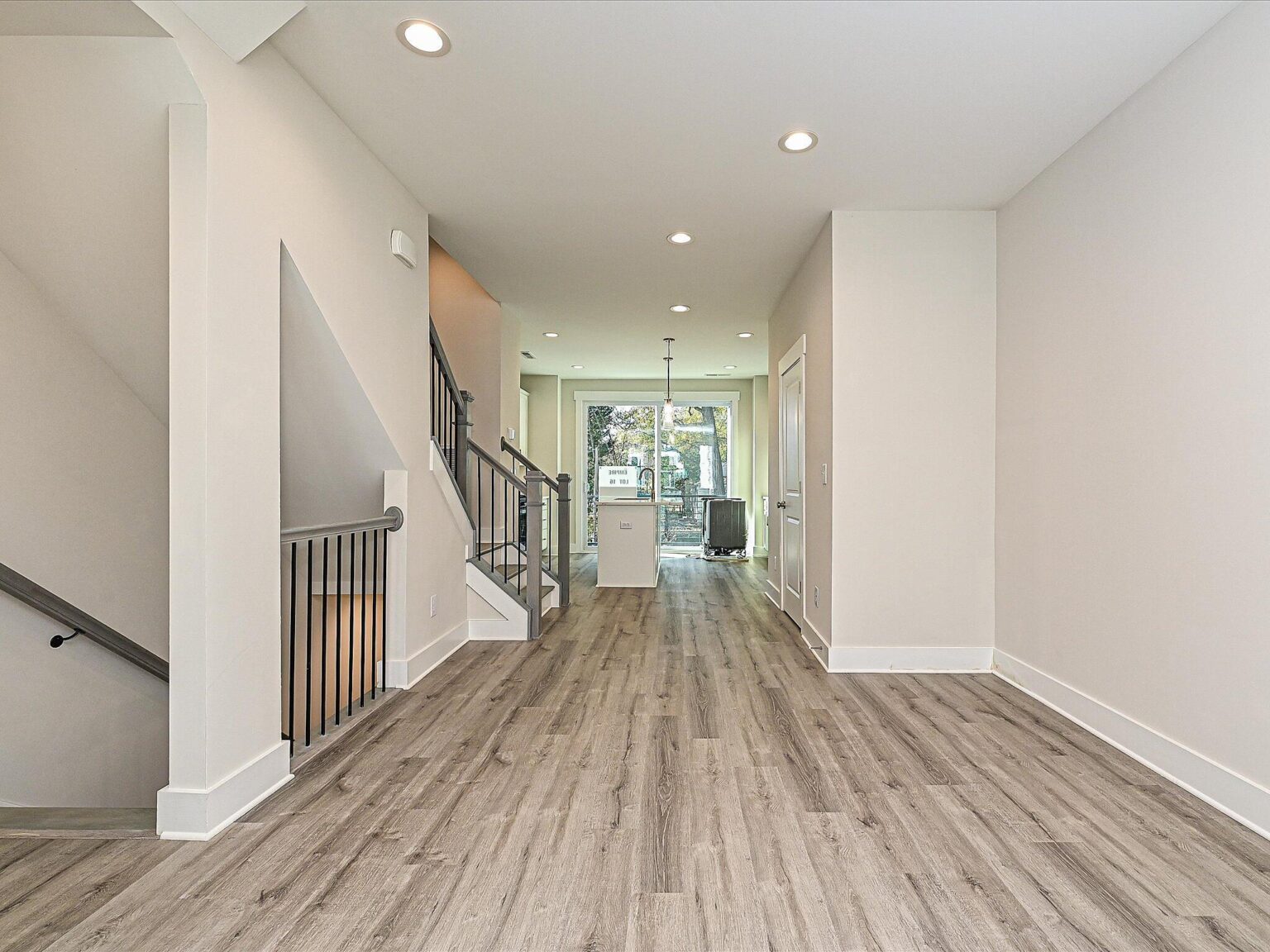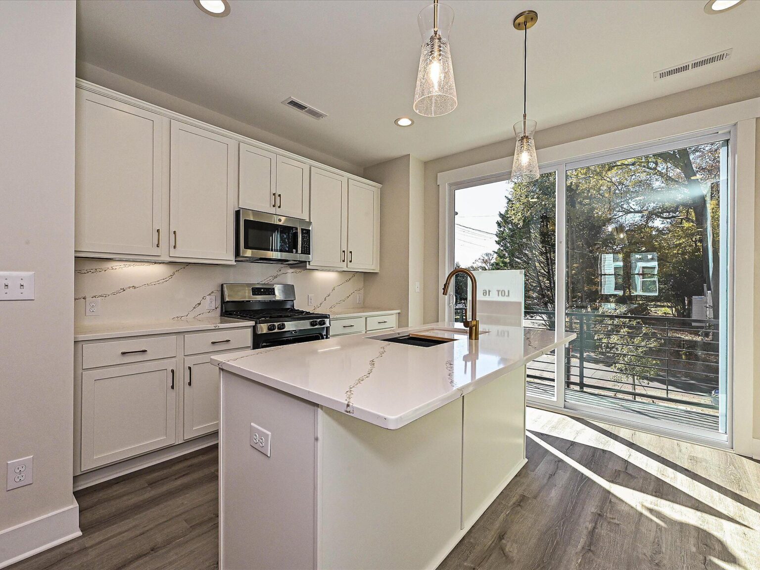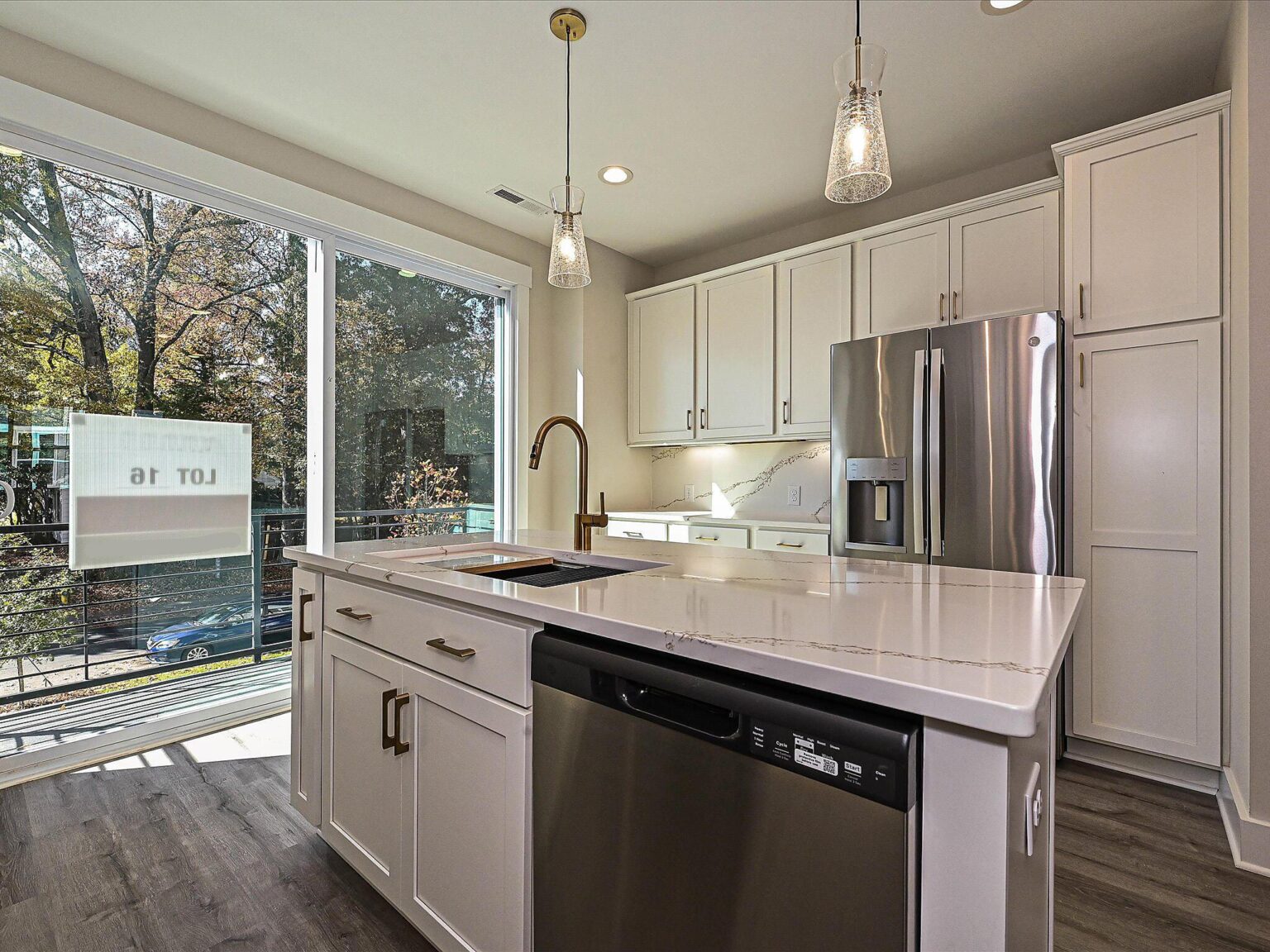 Enjoy a smart use of space in this new 4-story NoDa townhome, including 9' ceilings, 2-car tandem garage, & top floor Rec room with powder room & rooftop terrace. This space easily doubles as a guest bedroom! All kitchen and laundry appliances are included, w/ quartz counters & tiled floors in all full baths. Open layout on 2nd floor makes gatherings a breeze. Sliding doors off the kitchen lead to a small balcony, great for an urban herb garden or entertaining. Kitchen includes an island, 42" cabinets w/ trash pullout, quartz counters, tile backsplash, LED under-cabinet lights, pantry, large stainless steel undermount sink, & GE stainless steel appliances w/ gas range & French door fridge. 3rd floor laundry w/ GE stacked washer/dryer included. Premier Bath has a raised height-vanity w/ quartz counters & light grey painted cabs, tile floor, & large tiled shower w/ shampoo niche & semi-frameless glass. Low-maintenance LVP flooring at the garage entry, throughout the 2nd floor, & 3rd floor hall & laundry. Stairs have oak treads & straight black wrought iron balusters. Nook by the second-floor stairs can host a desk for a home office area. 3 miles from Uptown Charlotte, close to N. Davidson St. and Plaza Midwood, plus walkable to restaurants. Quick ride-share to Optimist Hall and the LYNX light rail.