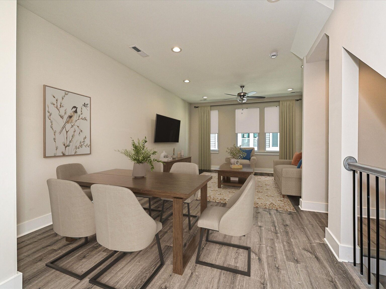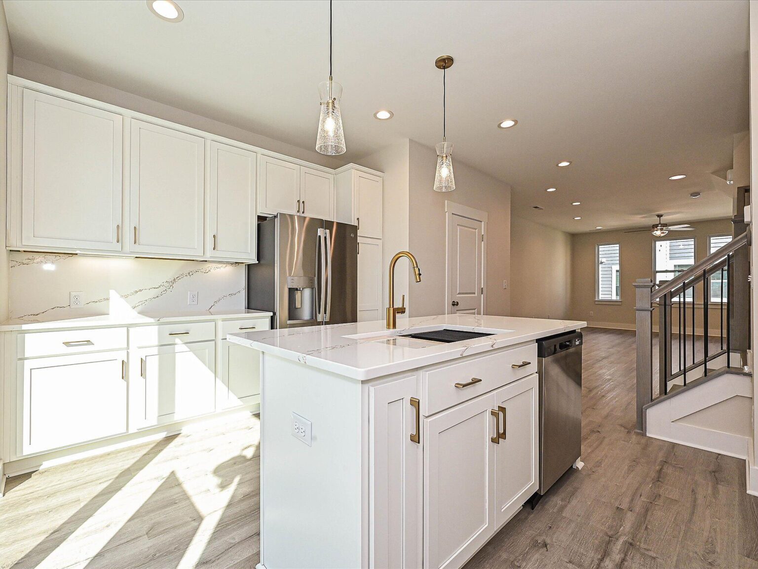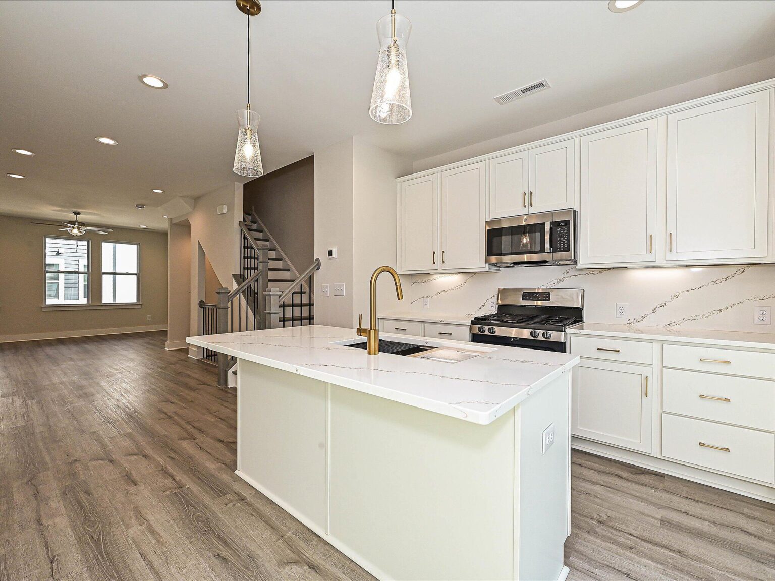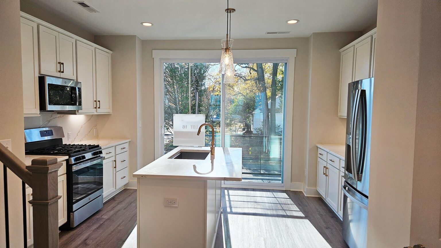 Enjoy a smart use of space in this new 4-story NoDa townhome, including 9' ceilings, 2-car tandem garage, & top floor Rec room with powder room & rooftop terrace. This space easily doubles as a guest bedroom! All kitchen and laundry appliances are included, w/ quartz counters & tiled floors in all full baths. Open layout on 2nd floor makes gatherings a breeze. Sliding doors off the kitchen lead to a small balcony, great for an urban herb garden or entertaining. Kitchen includes an island, 42" cabinets w/ trash pullout, quartz counters, tile backsplash, LED under-cabinet lights, pantry, large stainless steel undermount sink, & GE stainless steel appliances w/ gas range & French door fridge. 3rd floor laundry w/ GE stacked washer/dryer included. Premier Bath has a raised height-vanity w/ quartz counters & light grey painted cabs, tile floor, & large tiled shower w/ shampoo niche & semi-frameless glass. Low-maintenance LVP flooring at the garage entry, throughout the 2nd floor, & 3rd floor hall & laundry. Stairs have oak treads & straight black wrought iron balusters. Nook by the second-floor stairs can host a desk for a home office area. 3 miles from Uptown Charlotte, close to N. Davidson St. and Plaza Midwood, plus walkable to restaurants. Quick ride-share to Optimist Hall and the LYNX light rail.