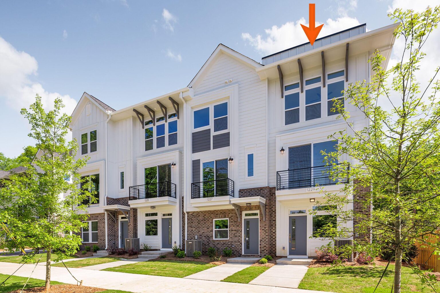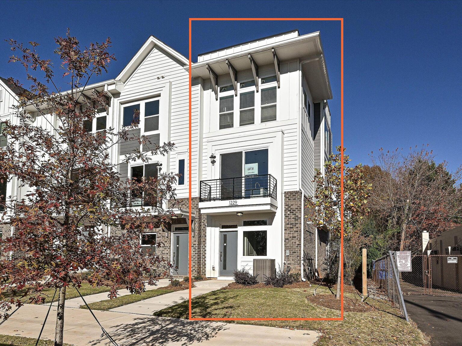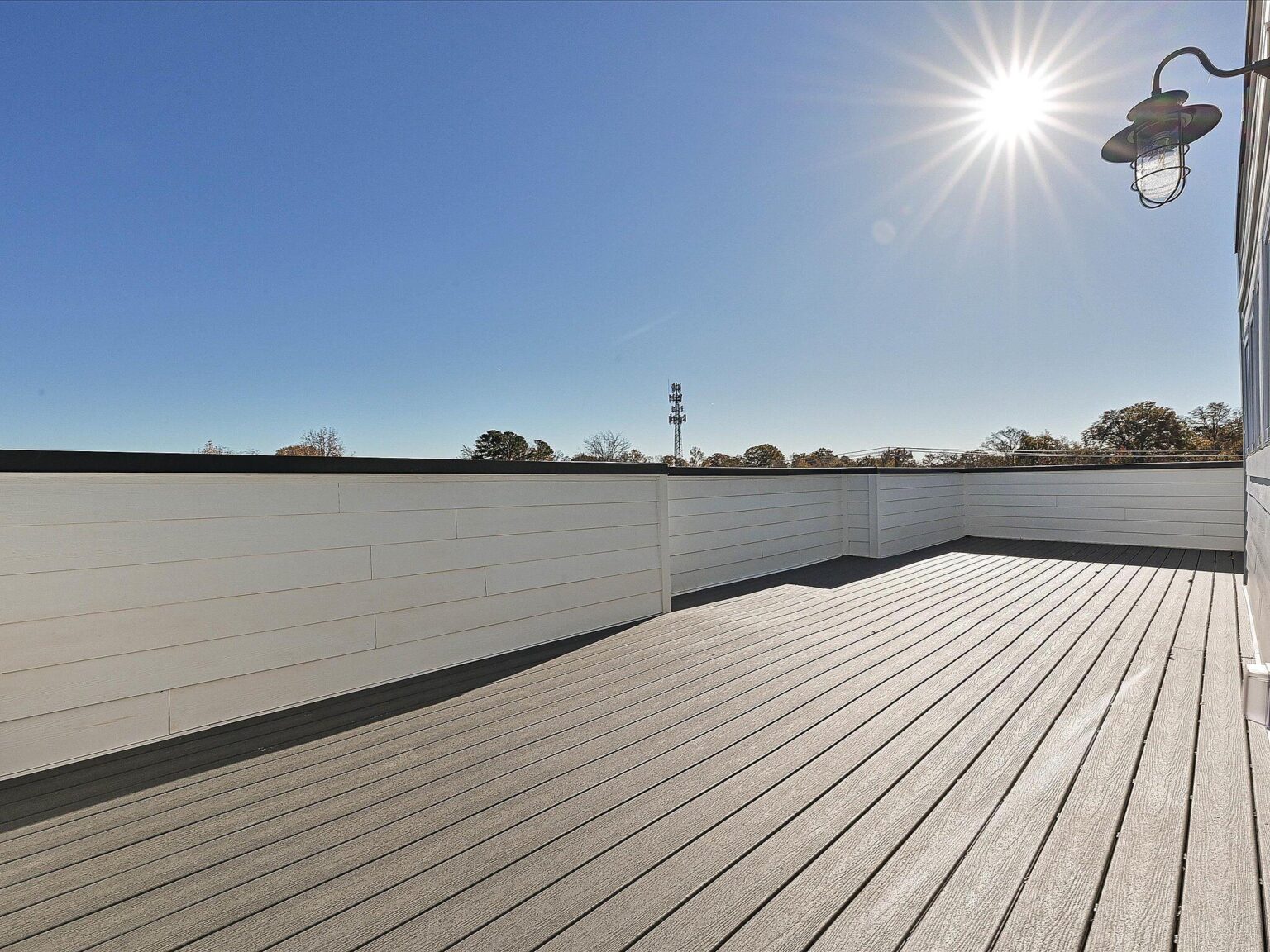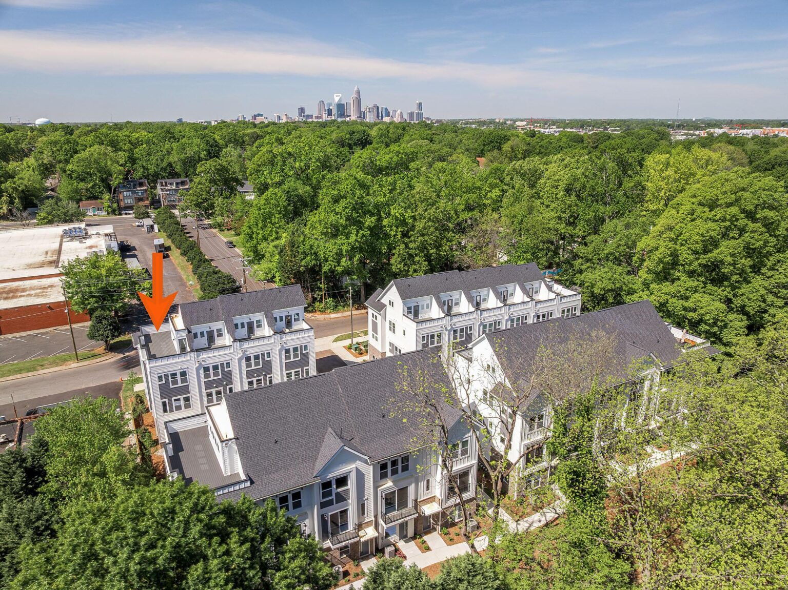 NoDa end-unit townhome maximizes natural light and outdoor living, with an expansive rooftop terrace spanning the entire top floor, plus a balcony off the Kitchen, which is ideal for an urban herb garden; both outdoor spaces include TREX decking. The rooftop terrace is large enough for multiple gathering spaces; imagine a lounge area, dining space, AND entertaining bar! Nice open layout on the 2nd floor makes entertaining a breeze. The kitchen features quartz counters, 42" white cabinets, LED under-cabinet lights, trash pullout, & GE stainless steel appliances with a gas range & French door fridge included, plus large stainless steel undermount sink. The nook by the staircase is large enough to have a desk for a home office area. The 3rd floor has 2 bedrooms plus laundry with a GE stacked washer/dryer included. The Premier bath includes a large tiled shower w/ semi-frameless glass, a raised-height vanity w/ quartz counters & white painted cabinets, plus tiled floors. The secondary bath has white cabinets, quartz counter, and tiled floor. Enjoy features such as 9' ceilings throughout, 2 ceiling fans, 2" blinds, and modern lighting. LVP floors are throughout the 1st and 2nd floor plus 3rd floor hall & laundry, with oak treads on stairs. 2-car tandem garage plus private driveway for extra parking. Easy access to N. Davidson St. and Plaza Midwood, and minutes from Uptown Charlotte and the LYNX light rail. Restaurants and shops are within walking distance as well.