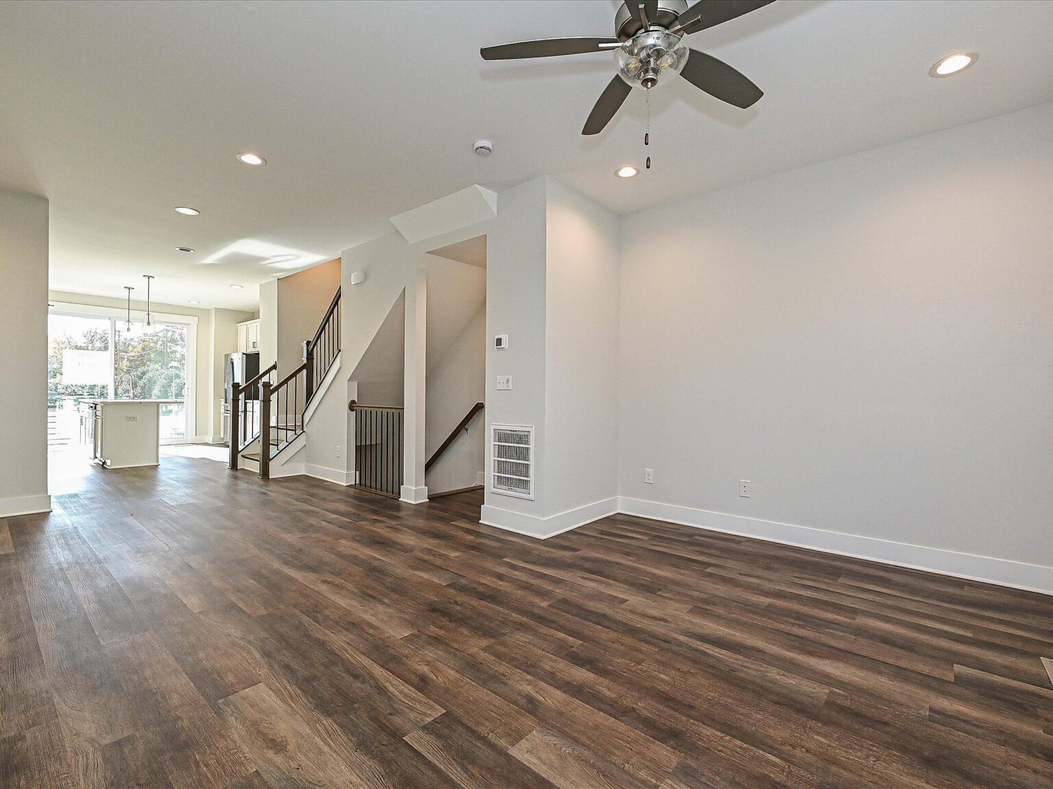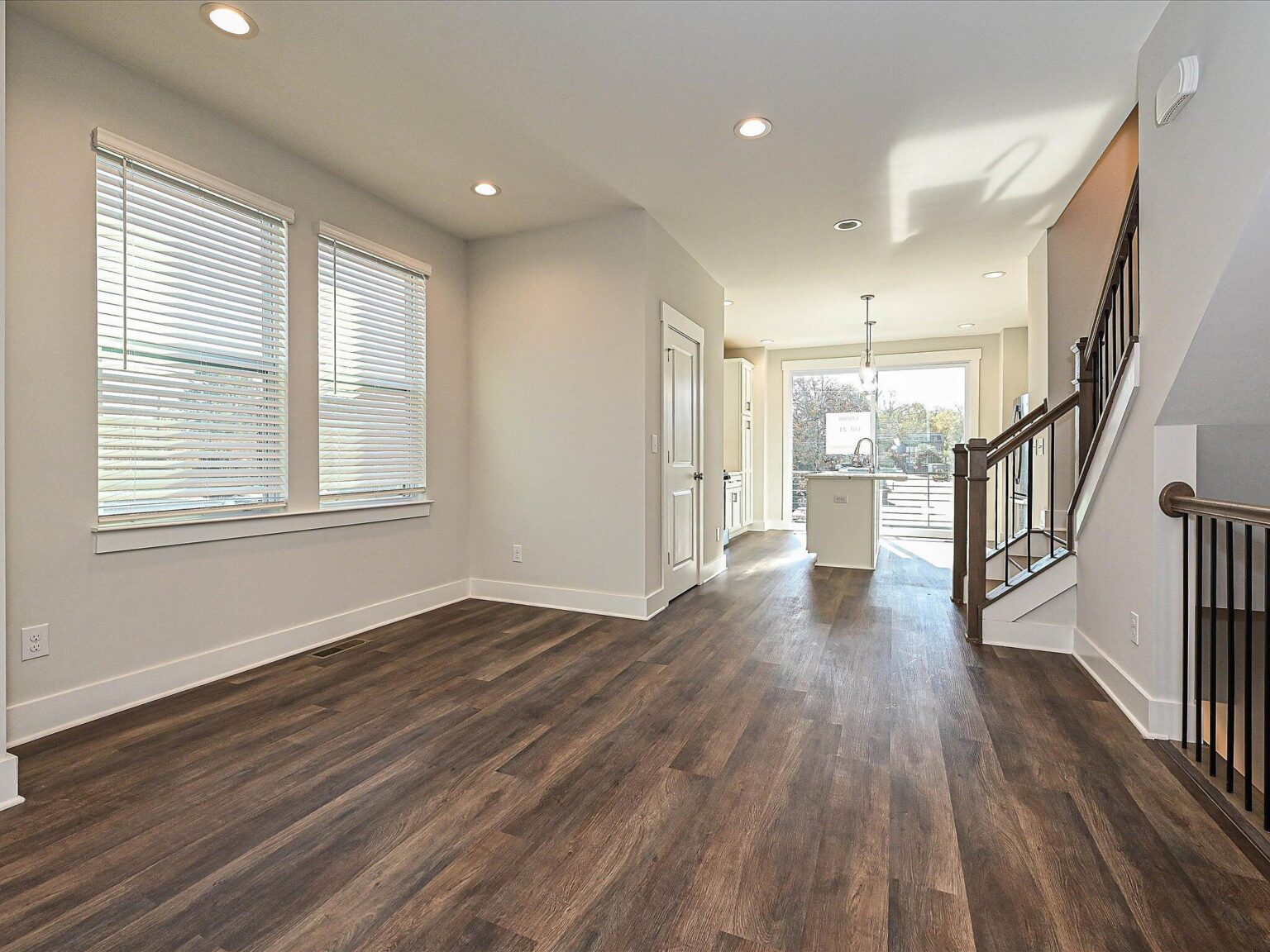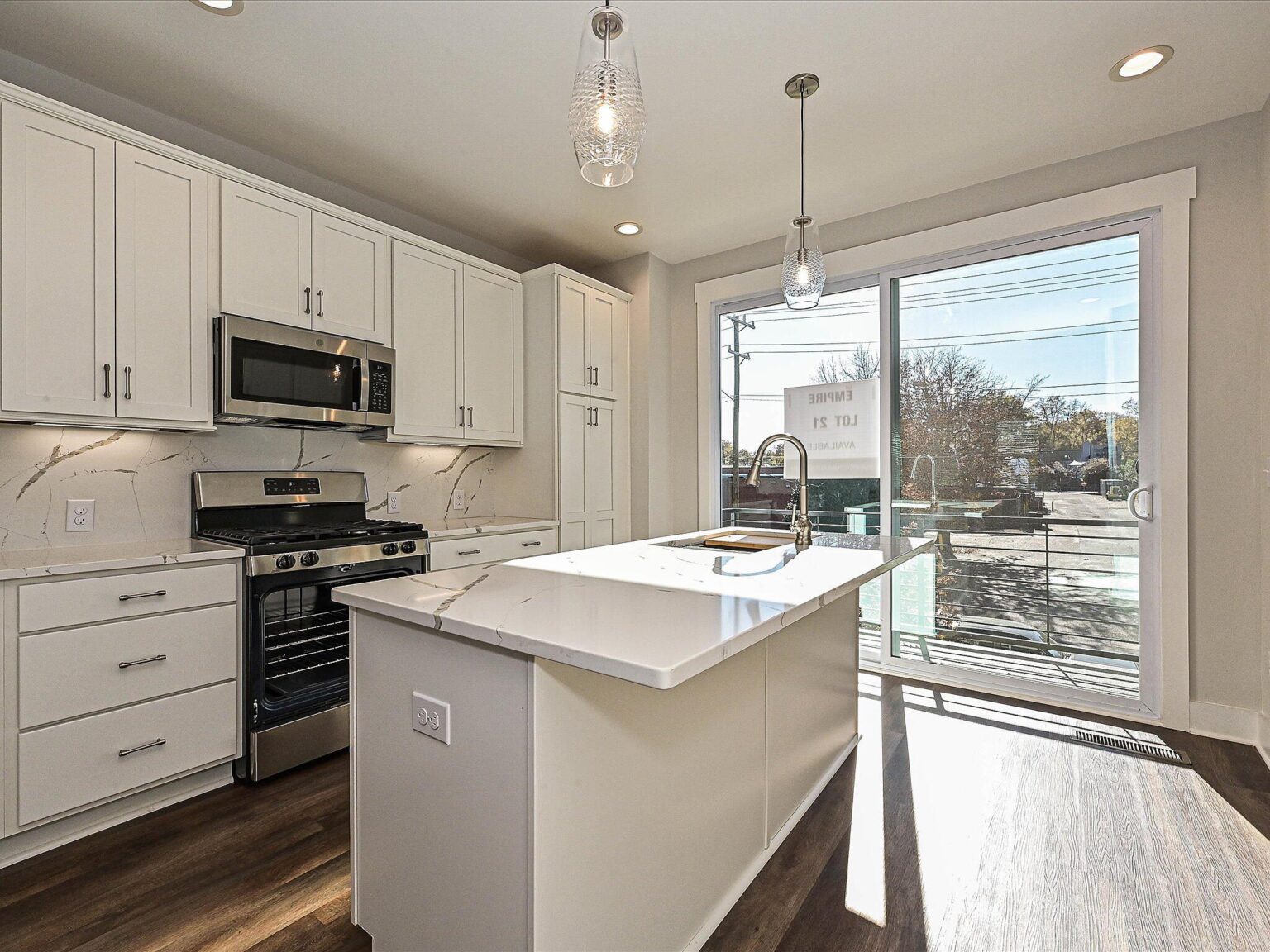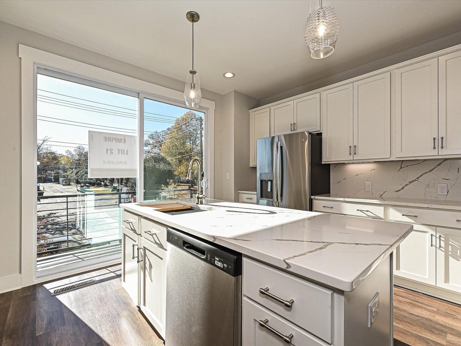 NoDa end-unit townhome maximizes natural light and outdoor living, with an expansive rooftop terrace spanning the entire top floor, plus a balcony off the Kitchen, which is ideal for an urban herb garden; both outdoor spaces include TREX decking. The rooftop terrace is large enough for multiple gathering spaces; imagine a lounge area, dining space, AND entertaining bar! Nice open layout on the 2nd floor makes entertaining a breeze. The kitchen features quartz counters, 42" white cabinets, LED under-cabinet lights, trash pullout, & GE stainless steel appliances with a gas range & French door fridge included, plus large stainless steel undermount sink. The nook by the staircase is large enough to have a desk for a home office area. The 3rd floor has 2 bedrooms plus laundry with a GE stacked washer/dryer included. The Premier bath includes a large tiled shower w/ semi-frameless glass, a raised-height vanity w/ quartz counters & white painted cabinets, plus tiled floors. The secondary bath has white cabinets, quartz counter, and tiled floor. Enjoy features such as 9' ceilings throughout, 2 ceiling fans, 2" blinds, and modern lighting. LVP floors are throughout the 1st and 2nd floor plus 3rd floor hall & laundry, with oak treads on stairs. 2-car tandem garage plus private driveway for extra parking. Easy access to N. Davidson St. and Plaza Midwood, and minutes from Uptown Charlotte and the LYNX light rail. Restaurants and shops are within walking distance as well.