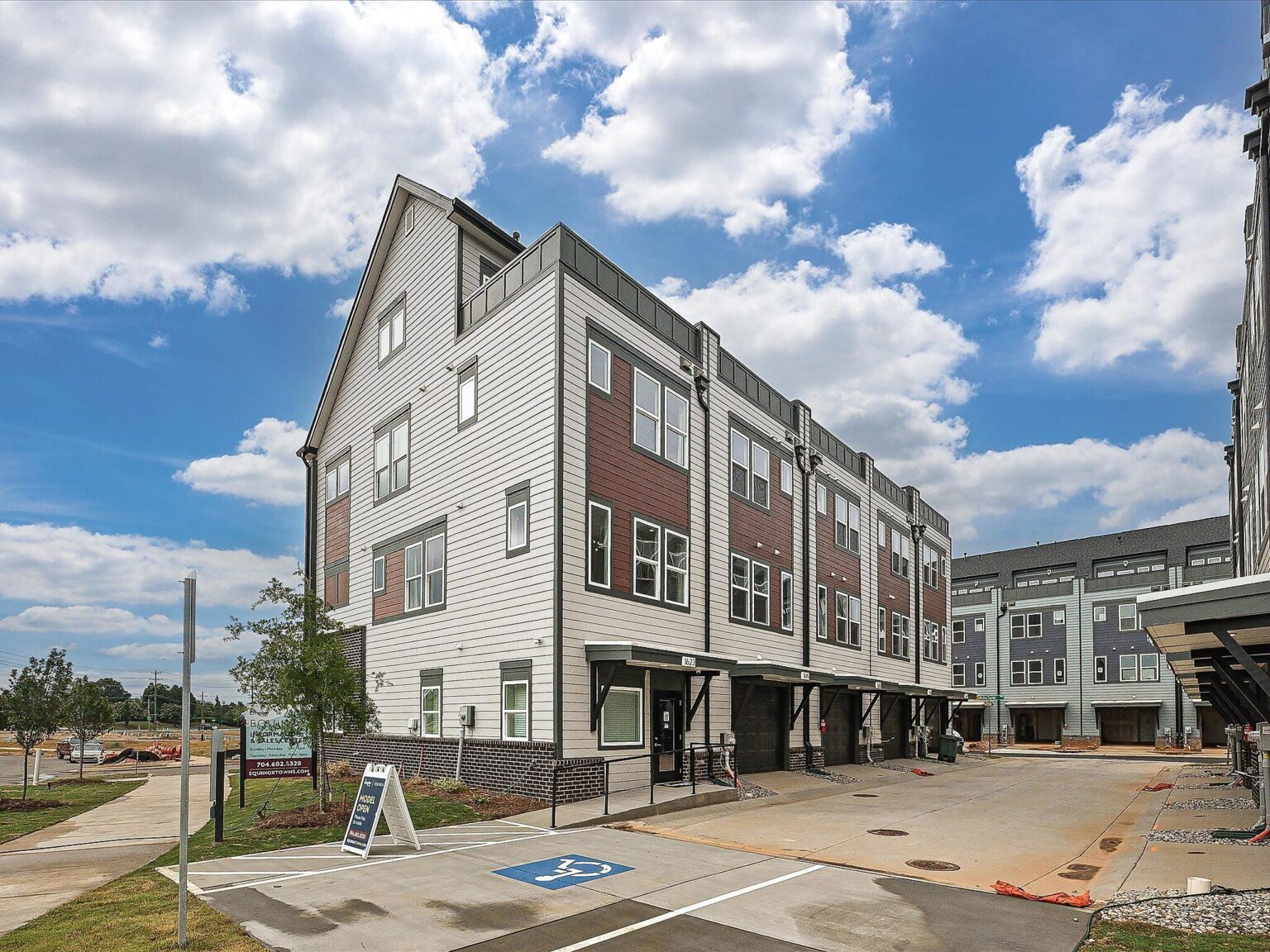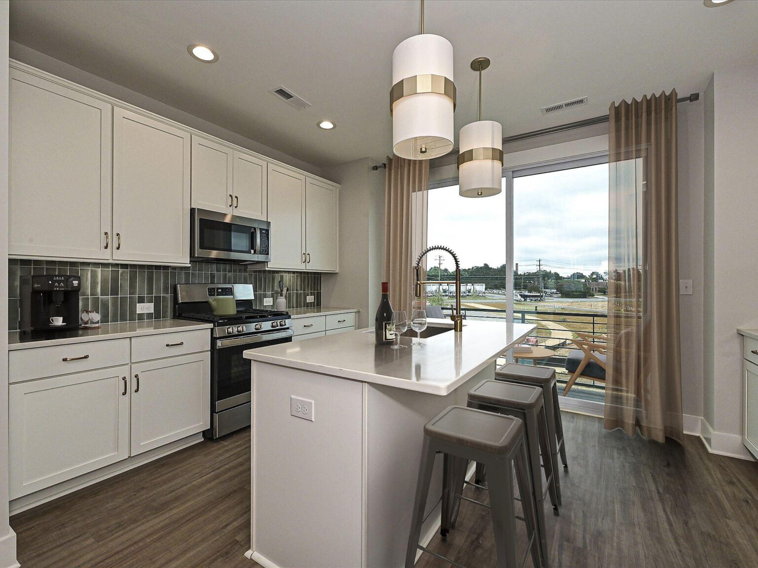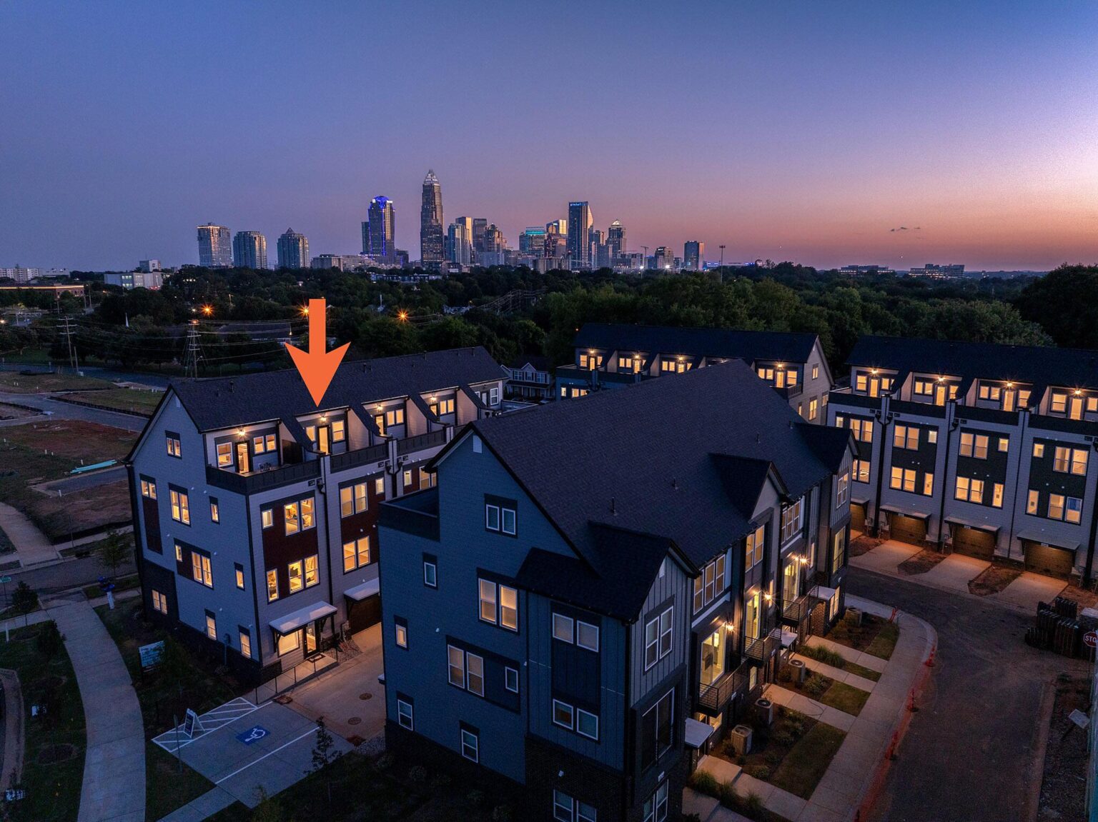 Versatile 4-story townhome, featuring a top floor bonus bedroom and rooftop terrace, plus first floor Flex room with powder! The open layout of the second floor makes gatherings a breeze, and Camp North End is just across the street for an easy night out. The Kitchen features 42" white painted cabinets with brushed gold hardware, quartz counters, backsplash, under-cabinet lights, trash pullout, pantry cabinet, and GE stainless steel appliances with a gas range. Full baths include white cabinets, matte black hardware, quartz counters, and tiled floors, with a large tiled shower in the Premier Bath with semi-frameless glass. 3rd floor bedrooms and laundry closet with tiled floor. LVP floors are throughout the first and second floors, plus third floor hallway, with tile in full baths and laundry closet. Oak treads are on the stairs. 52" ceiling fans are in the flex, 4th floor bonus bedroom, living and Premier bedroom. 2 bedrooms, 2 full baths, 2 half baths. 9' ceilings throughout; 1-car garage plus on-street parking is available. Enjoy close proximity to Uptown Charlotte.