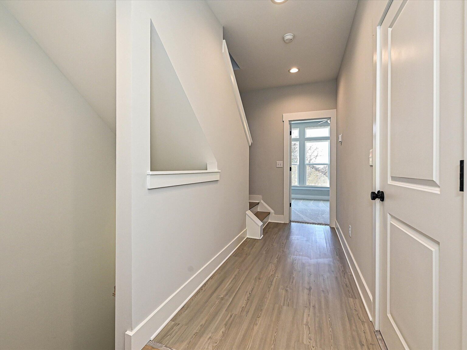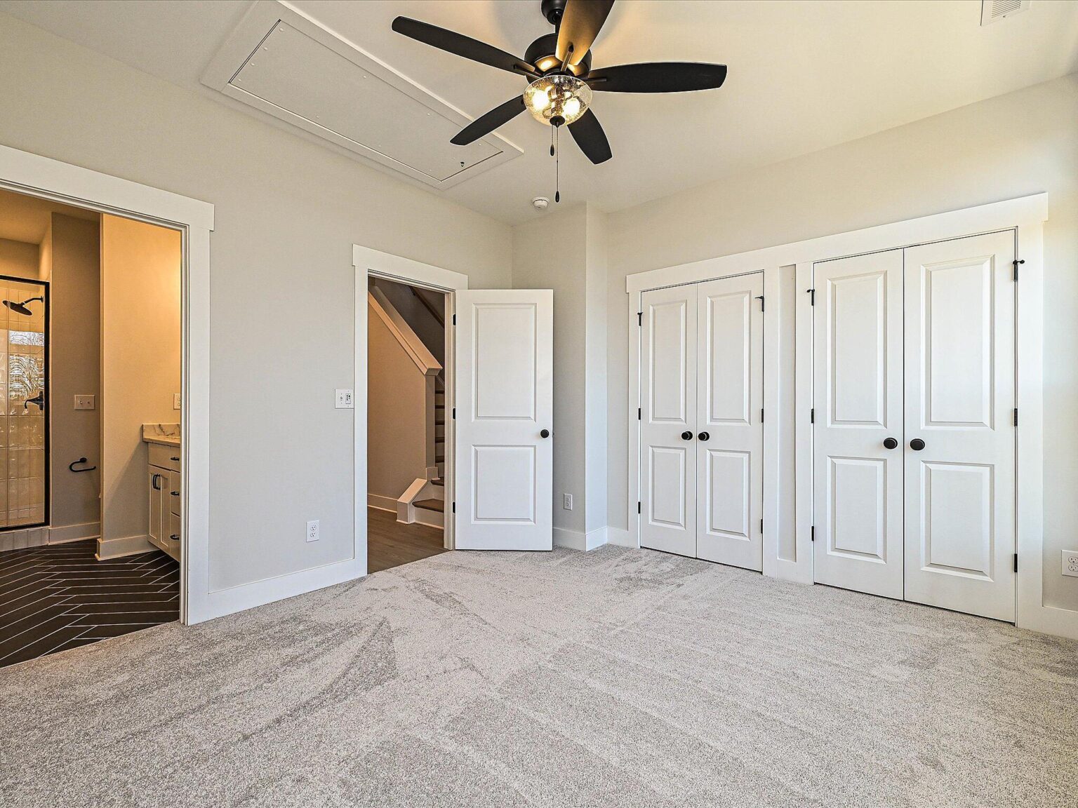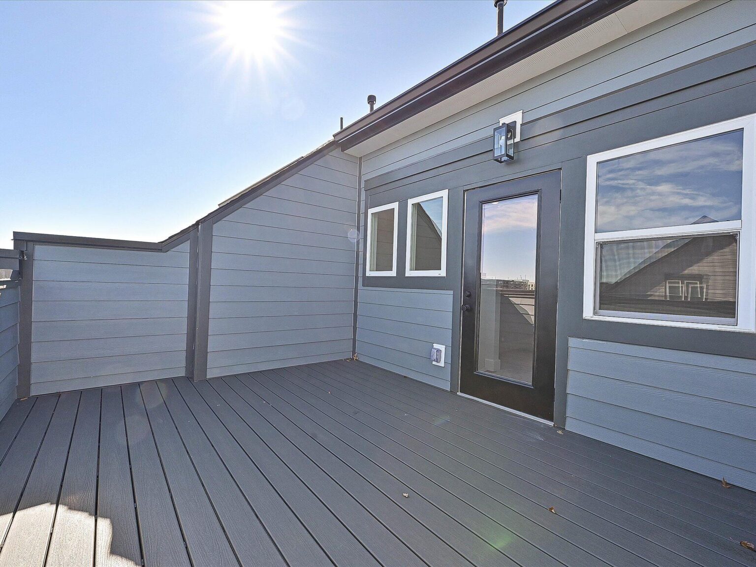4-story townhome with a fantastic location with seasonal views of Uptown Charlotte; walk to Camp North End, and minutes to the heart of Uptown! Highlights include 9' ceilings throughout, a 1-car attached garage plus driveway, on-trend lighting and design features, and a 1st floor flex room with half bath with tiled floor. Easily entertain guests on the 4th floor with your bonus bedroom & spacious rooftop terrace with TREX decking. Great open layout on the second floor, with the main living space flowing together. Kitchen features soothing creamy grey painted 42" cabinets with matte black hardware, a pantry cabinet, trash pullout, LED under-cabinet lights, quartz counters, large stainless undermount sink, and GE stainless steel appliances with a gas range. There is a small deck off the kitchen with TREX decking. The third floor hosts 2 bedrooms, the laundry closet with tiled floor, and a full hall bath. Full baths include white cabinets, quartz counters, tiled floors. Premier Suite has a tiled shower with semi-frameless enclosure, shampoo niche & matte black hardware. LVP flooring is throughout the first and second floors, plus third floor hall. Oak treads are on all stairs. 4 52" ceiling fans are included. 3 bedrooms, 2 full baths, and 2 half baths.