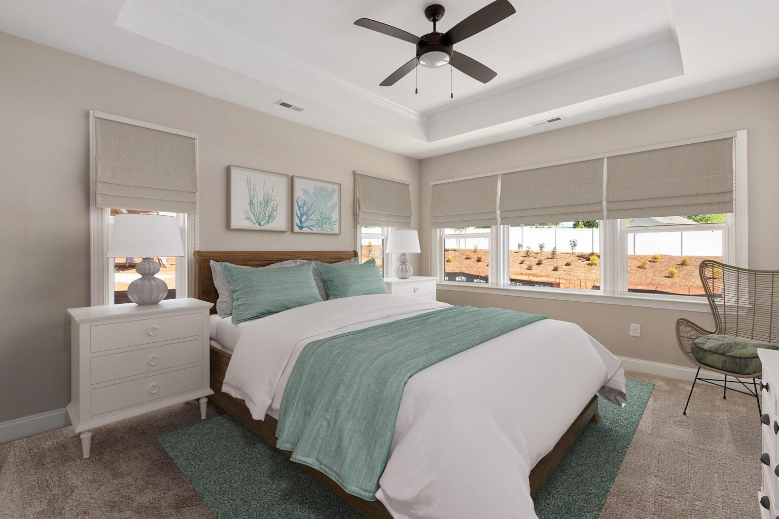 Everything you need on one floor in this functional Ranch plan, with 9' and 10' ceilings throughout. The Roanoke offers a large laundry/mudroom off the garage with space for a drop zone, plus linen and coat storage. Two secondary bedrooms and a full bath are off the foyer, and the Premier Suite is on the opposite side of the home. You may add a tray ceiling to the bedroom; the suite includes a large walk-in closet and 4-piece bath with shower, double sink vanity, water closet and linen closet. The Kitchen includes an island and pantry and overlooks the Breakfast and Family rooms. The Breakfast room can have a tray ceiling added; sliding doors lead to the rear covered porch to enjoy our fabulous Carolina weather!