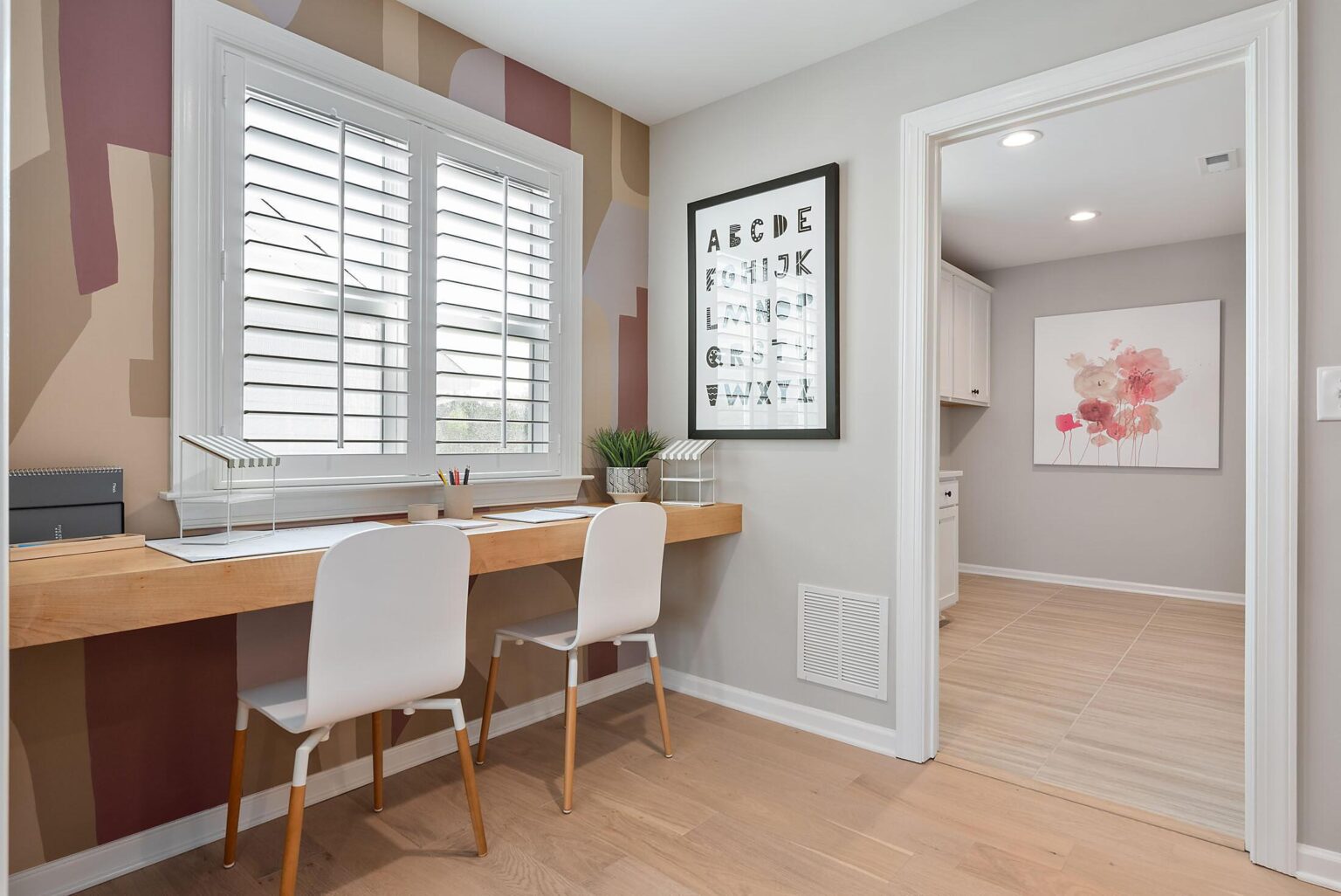 Discover conveniences in this plan just where you need them, from the first-floor guest bedroom, a versatile Flex room, and a walk-in pantry and mudroom just off the kitchen. Warm up with a gas fireplace, or enjoy the weather on your optional covered porch. Upstairs is a large Rec room, 2 bedrooms with a Jack & Jill bath, and a large Premier suite. It has a very large walk-in closet with 2 access doors, and the bathroom can lead straight into the laundry room, making laundry day a little bit easier. There's even a nook to add a built-in desk on the upstairs landing. Stop by Camber Woods to tour our Weston model.