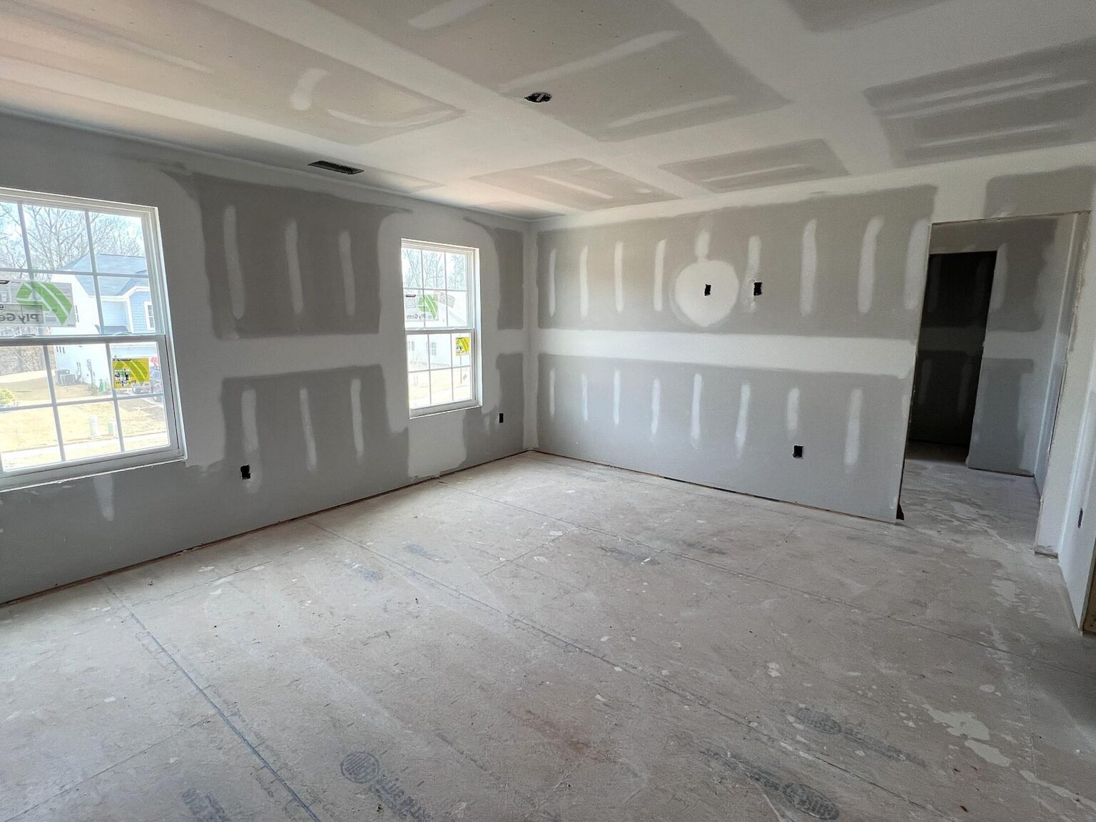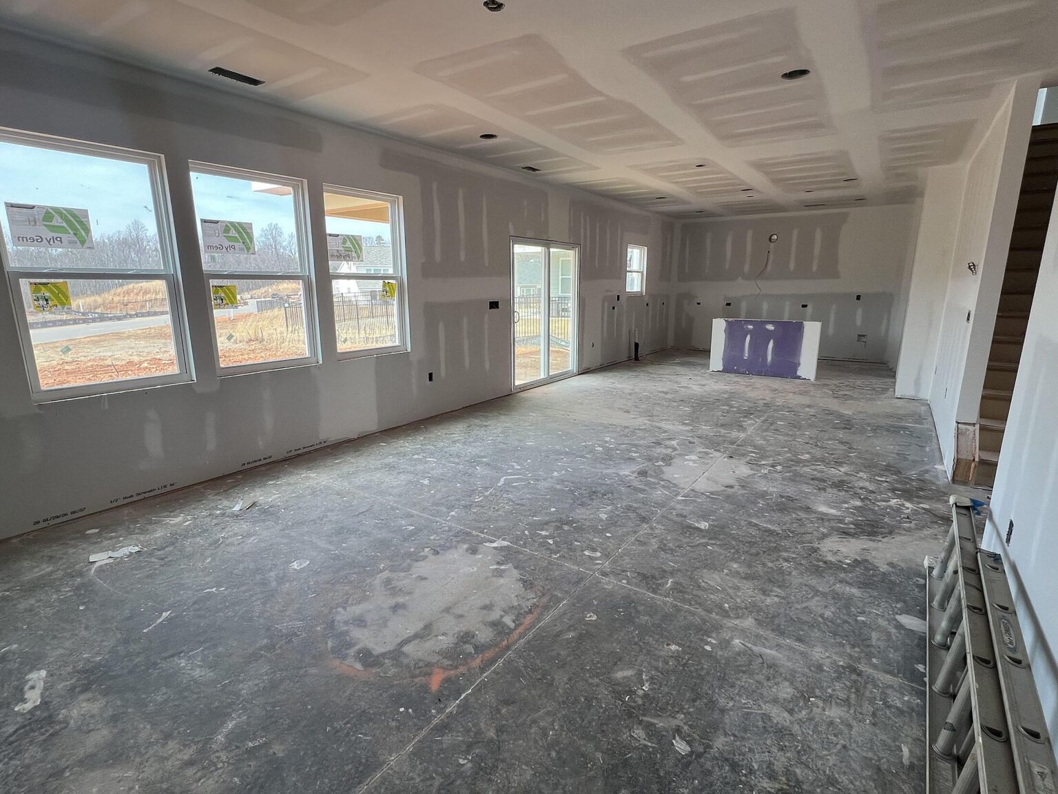 Move in before summer with this new home in Gastonia, minutes from the local YMCA and easy side-road access to the Charlotte International Airport. This home features Hardie® cement siding with stone accents and a rear covered porch, situated on a .22 acre homesite. The first-floor features a guest bedroom and full bath, and open-concept living with the family room, dining and kitchen flowing together. The L-shaped kitchen features granite counters, ivory painted perimeter cabinets with nutmeg-stained cabinets at the island, soft-close doors and drawers, tile backsplash, and GE stainless steel appliances with a gas range. Tucked just off the kitchen is a mudroom and walk-in pantry. Upstairs, you'll find a spacious Loft and the Primary Suite, complete with two walk-in closets and a 5-piece bath with a large tiled shower with semi-frameless glass, charcoal-stained cabinets, granite counters, and 12" x 24" tiled floors. Secondary baths include quartz counters, white cabinets, and tiled floors. Low-maintenance LVP floors are throughout most of the first floor plus upstairs hall and laundry room, with oak treads on the stairs. Energy-saving features include a tankless hot water heater in the garage, plus radiant barrier sheathing. This community includes a pool and tot lot, and is located near several greenways.