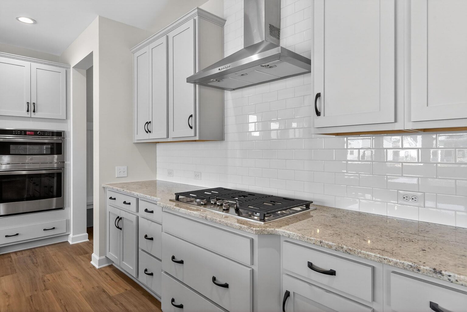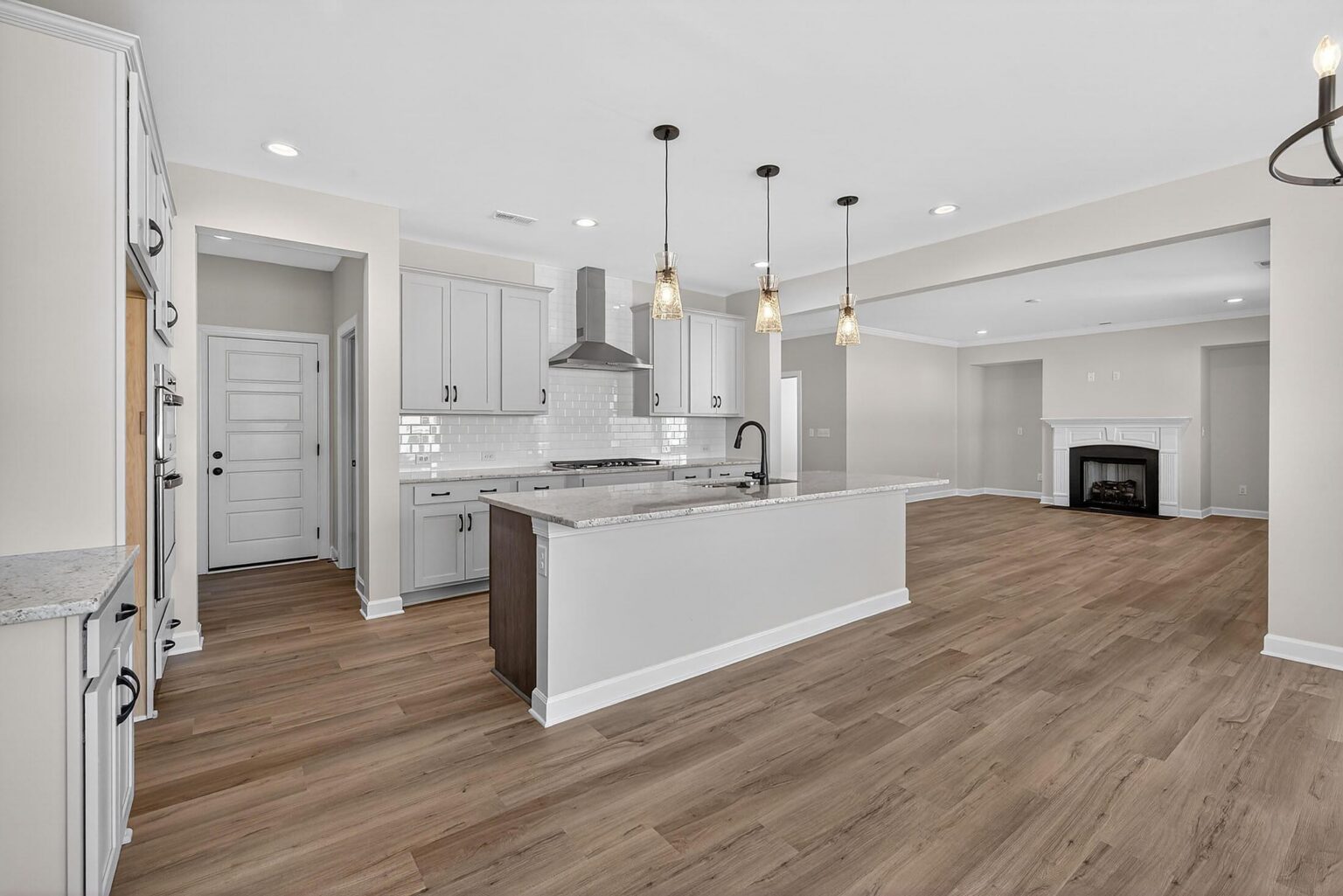 New Craftsman-style home in Harrisburg, featuring a .25-acre flat homesite in an amenity-rich community by Stallings Road Park. Enjoy the open-concept layout and abundant windows, first-floor guest bedroom and bathroom with walk-in tiled shower, Flex room with office, and luxuriously spacious upstairs Premier Suite. The Family room features a gas fireplace flanked by 2 niches for your personal touch, and a large Kitchen with split cooking. There are 42" creamy-grey cabinets with soft-close doors & drawers, double trash pullout, GE stainless steel appliances with a Profile 36" gas cooktop, wall oven, and microwave, plus chimney extraction hood vented outside, and a large walk-in pantry. Tucked off the kitchen is a mudroom with built-in drop zone. Enjoy the outdoors from the large rear covered patio. Upstairs is a spacious Rec room and laundry with tiled floor. Get away from it all in the Premier Suite, with a tray ceiling and huge walk-in closet. The spacious bathroom has a large tiled shower, quartz counters, and tiled floor. Two bedrooms share a Jack & Jill bath. Secondary baths have quartz counters and tiled floors. Medium-toned natural wood color LVP flooring is throughout most of the first floor plus upstairs hall, with oak treads on the stairs. The exterior features Hardie® siding, a carriage-style garage door, and a service side door in the garage. Energy-saving features include a tankless hot water heater and radiant barrier sheathing. Community includes a pool, clubhouse, tot lot, and walking trails.