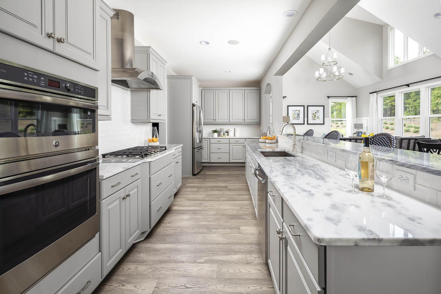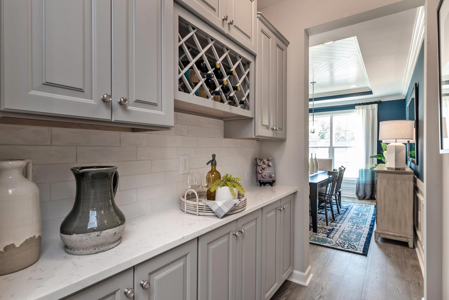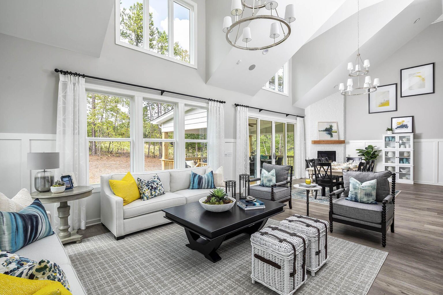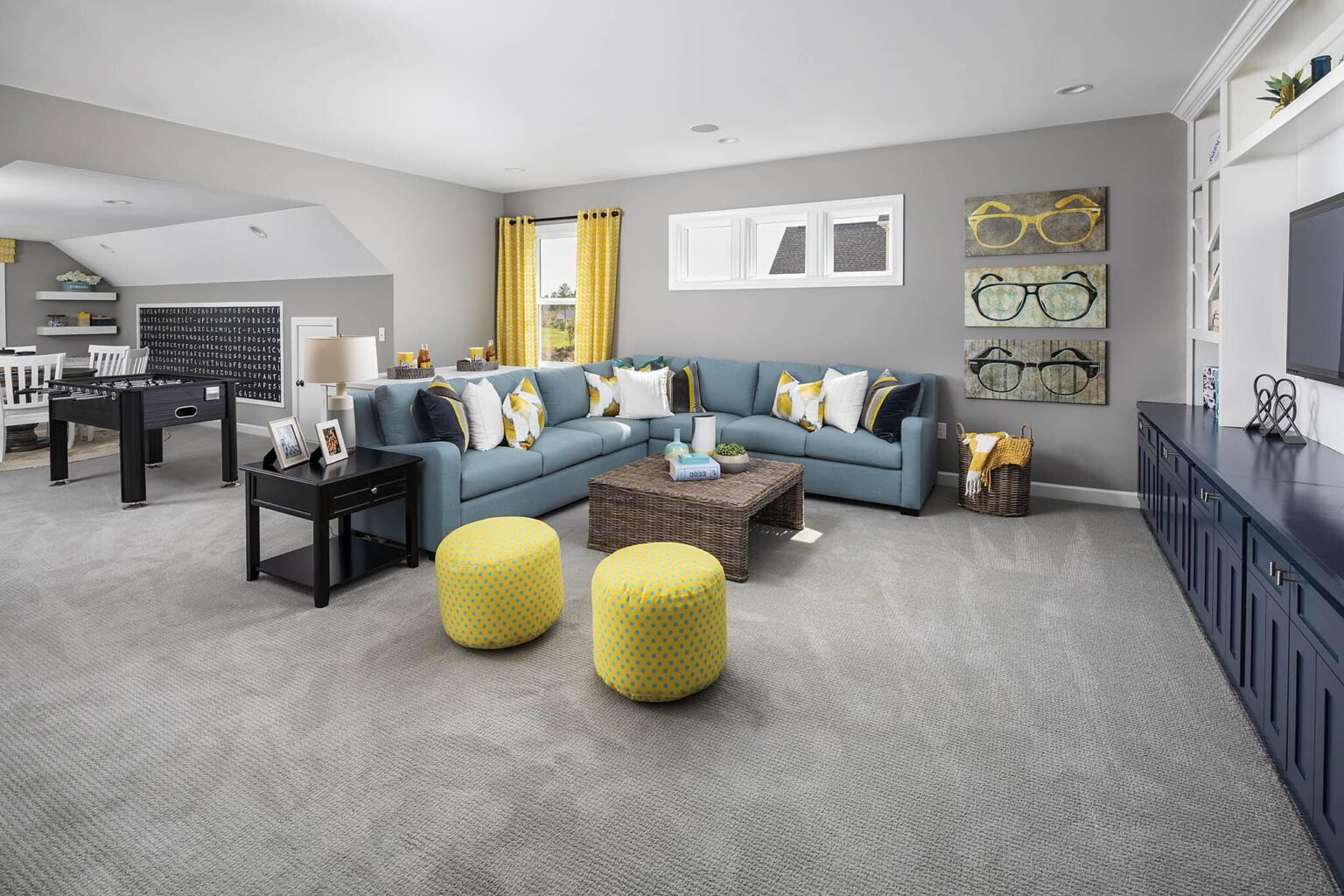 Elegant details and large gathering spaces make the Alpine a great home for family and friends. Archways lead from the foyer, past the Dining room, Study, and staircase, and on to the expansive Family/Morning room. This beautiful room features a vaulted ceiling, fireplace in the Family room, and the option to add one in the Morning room. The abundance of windows creates an open, airy feel, full of natural light. The open kitchen includes a built-in bar and overlooks this space, which is a fabulous area for gatherings, large and small. A convenient Butler’s Pantry connects the Dining room to the Kitchen. Take entertaining outdoors by adding a large covered porch off the Morning room. The first floor features a Premier Suite with two walk-in closets, two vanities, soaking tub and shower. Off the garage entry is a generous Hobby/Laundry room. Upstairs, 2 bedrooms share a Jack & Jill bath, and another secondary bedroom has an adjoining full bath. The Teen room overlooks the Morning room and can have a built-in workstation with desks. The Bonus room includes unfinished storage; you may extend the Bonus room or add a large Guest suite. Basement options are available. Tour our Alpine model home at River Reserve in Greer, SC.