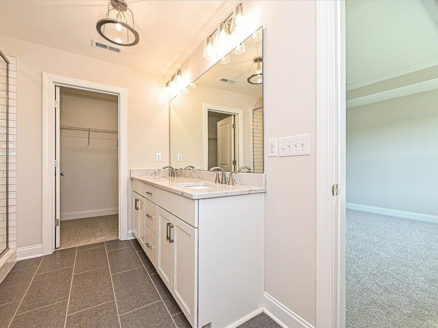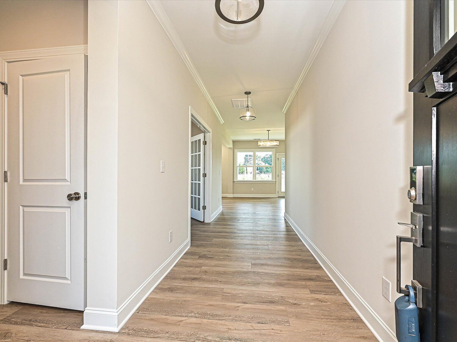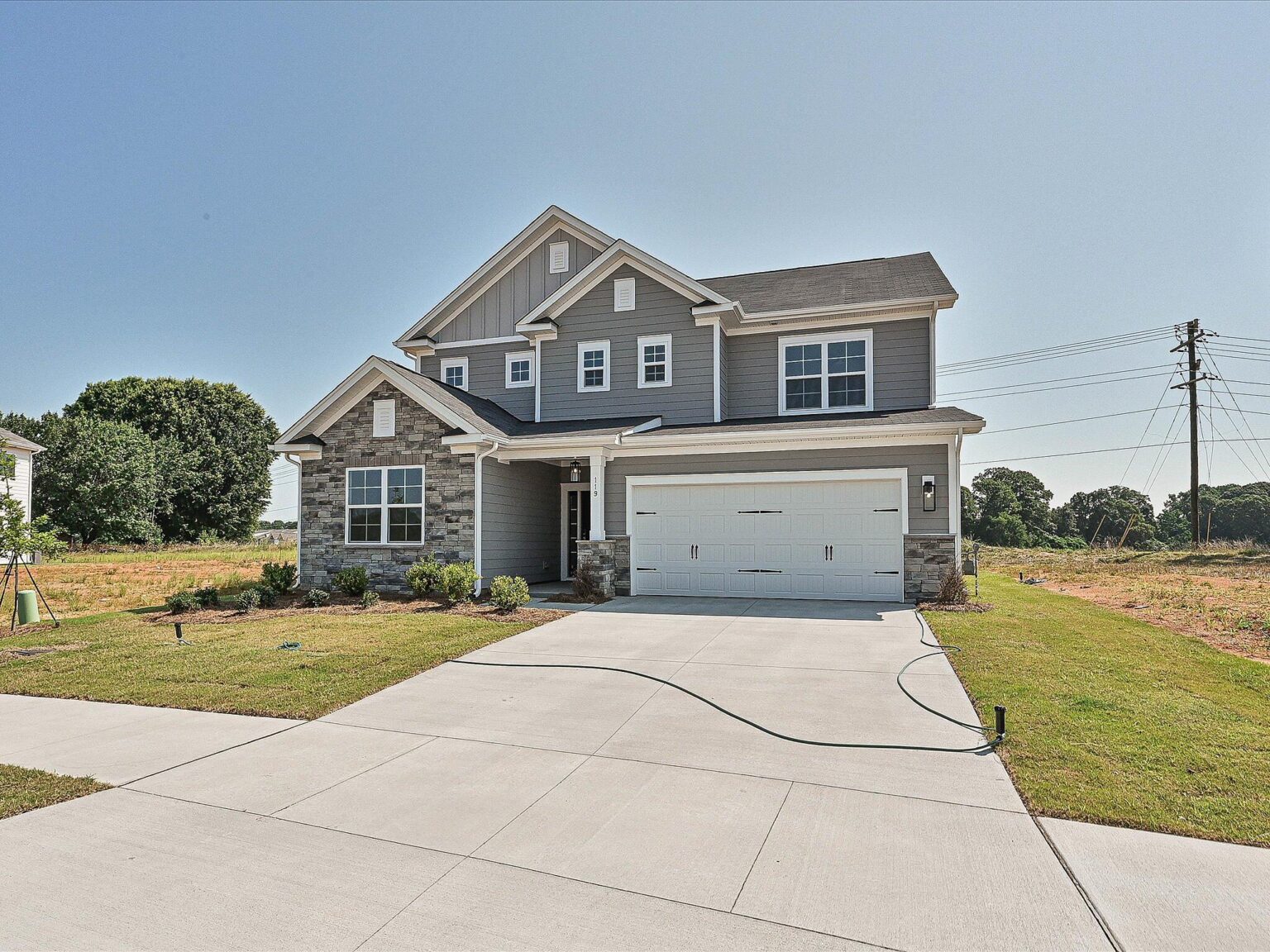 Enjoy well-thought-out space in this home, from the first-floor guest bedroom with vaulted ceiling and Flex room with French doors, to the extended storage closet under the stairs (because who has enough storage space?) The L-shaped Kitchen offers a pantry, white painted 42" perimeter cabinets with stained cabinets at the island, double-trash pullout, and GE Profile stainless steel cooking appliances with a 36" gas cooktop and vent hood extracted outside, plus quartz counters and a large undermount sink. The Breakfast area flows to the rear covered porch and Family room. Uptstairs is an open Loft, and spacious Premier Suite with tray ceiling and two walk-in closets. The bathroom includes a large tiled shower with semi-frameless glass, white cabinets, quartz counter, and tiled floors. Other thoughtful touches include a walk-in shower in the first-floor guest bath, and all baths have raised-height vanities and tiled floors. The first floor features LVP flooring throughout, plus in the upstairs hall and Loft, with oak treads on stairs. A mudroom drop zone offers convenience as well. This home is near the planned pool, clubhouse, and tot lot, plus there will be a dog park. Energy-saving features include a tankless gas hot water heater, attic tent for pull-down stairs, and radiant barrier sheathing.
