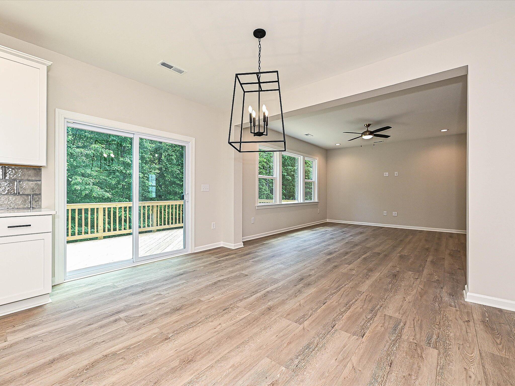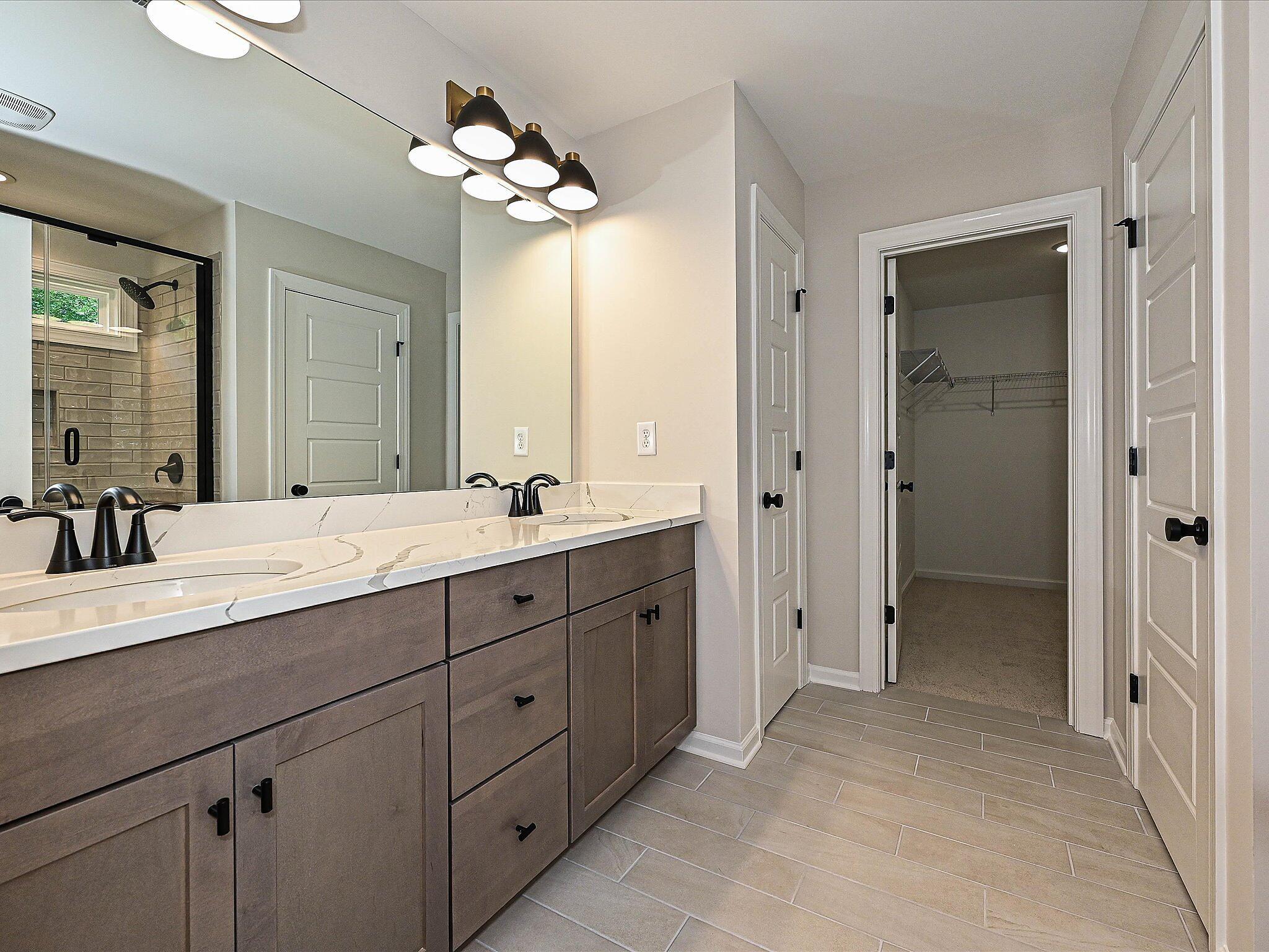 Enjoy the wooded private view from your large deck in this charming home in Gastonia, offering easy access to the Charlotte airport and I-85. The first floor includes a Flex room with French doors, large storage closet, and mudroom with built-in drop zone. The main living space flows together, with a large pantry off the L-shaped Kitchen, offering quartz counters, tile backsplash, 42″ white cabinets, GE Cafe appliances with a gas range, double trash pullout, and island. Upstairs is a Bonus room and two bedrooms with walk-in closets. The Premier Suite has a tray ceiling and walk-in closet, plus bathroom with a large tiled shower with semi-frameless glass, quartz counter with matching backsplash, tiled floors, and stained cabinets. Full baths include tiled floors, with LVP throughout the main floor, second floor hall & laundry, with oak treads on the stairs. Guest bath offers a raised-height vanity with white cabinets and quartz counter and matching backsplash. 3 bedrooms, 2.5 baths. Save on energy costs with the tankless hot water heater and radiant barrier sheathing. Community pool is open, with a tot lot opening this year.