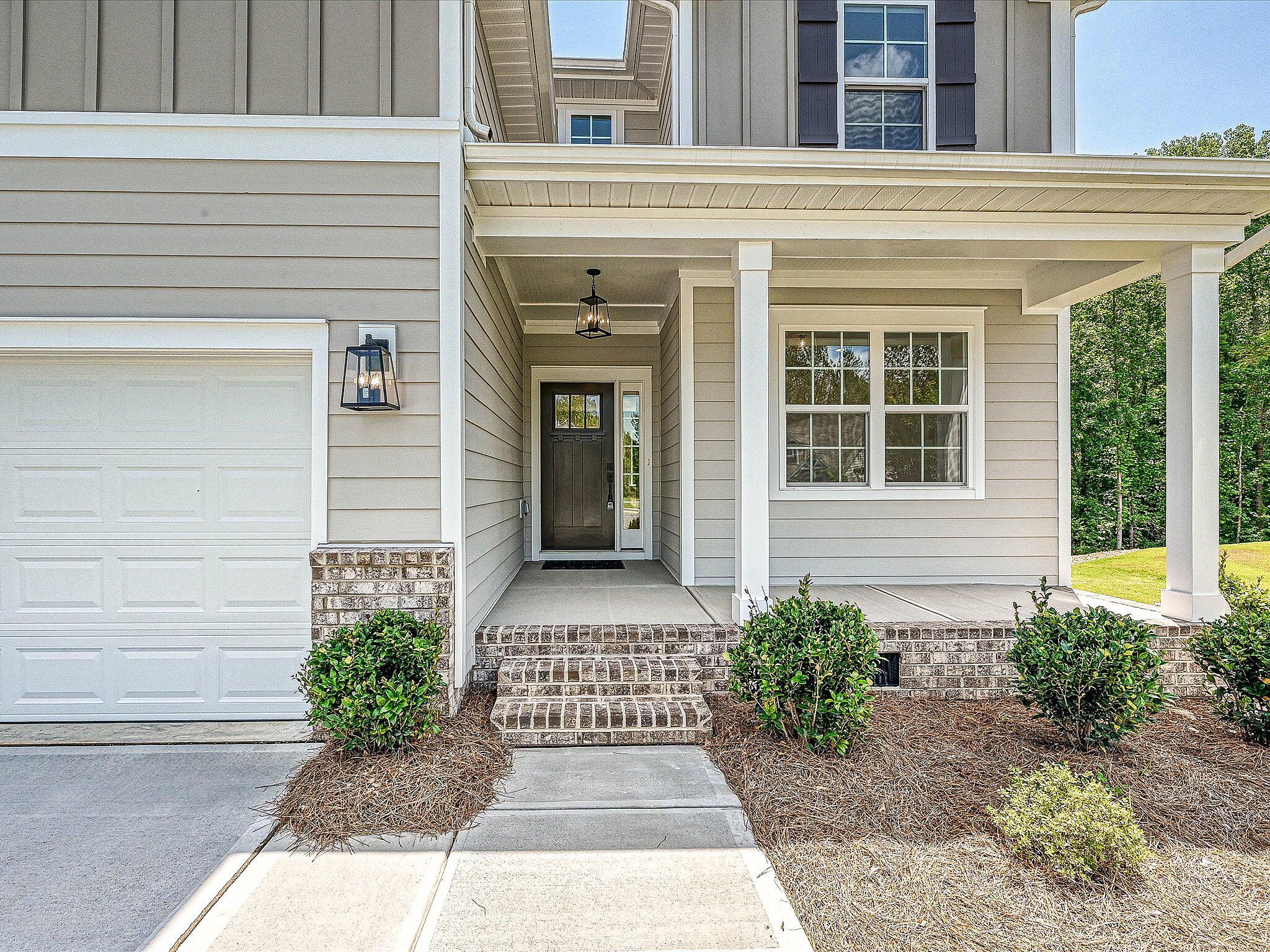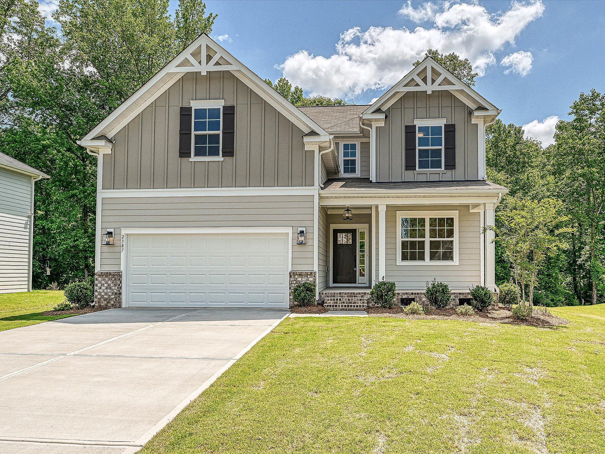 Enjoy the wooded private view from your large deck in this charming home in Gastonia, offering easy access to the Charlotte airport and I-85. With 3 bedrooms and 2.5 baths, this home is ideal for someone who wants to enjoy the natural view without a lot of yard work! It is located on a cul-de-sac, and includes composite painted siding with brick accents, a covered front porch, and crawl space foundation. The first floor includes a Flex room with French doors, large storage closet, and mudroom with built-in drop zone. The main living space flows together, with a large pantry off the L-shaped Kitchen, offering quartz counters, tile backsplash, 42″ white cabinets, GE Cafe stainless steel appliances with a gas range, double trash pullout, and island. Upstairs is a Bonus room and two bedrooms with walk-in closets. The spacious Premier Suite has a tray ceiling and walk-in closet, plus bathroom with a large tiled shower with semi-frameless glass, quartz counter with matching backsplash, tiled floors, and stained cabinets. with LVP throughout the main floor, second floor hall & laundry, with oak treads on the stairs. Guest bath offers a raised-height vanity with white cabinets, quartz counter and matching backsplash, plus tiled floor. Save on energy costs with the tankless hot water heater and radiant barrier sheathing. Community pool and tot lot amenities.