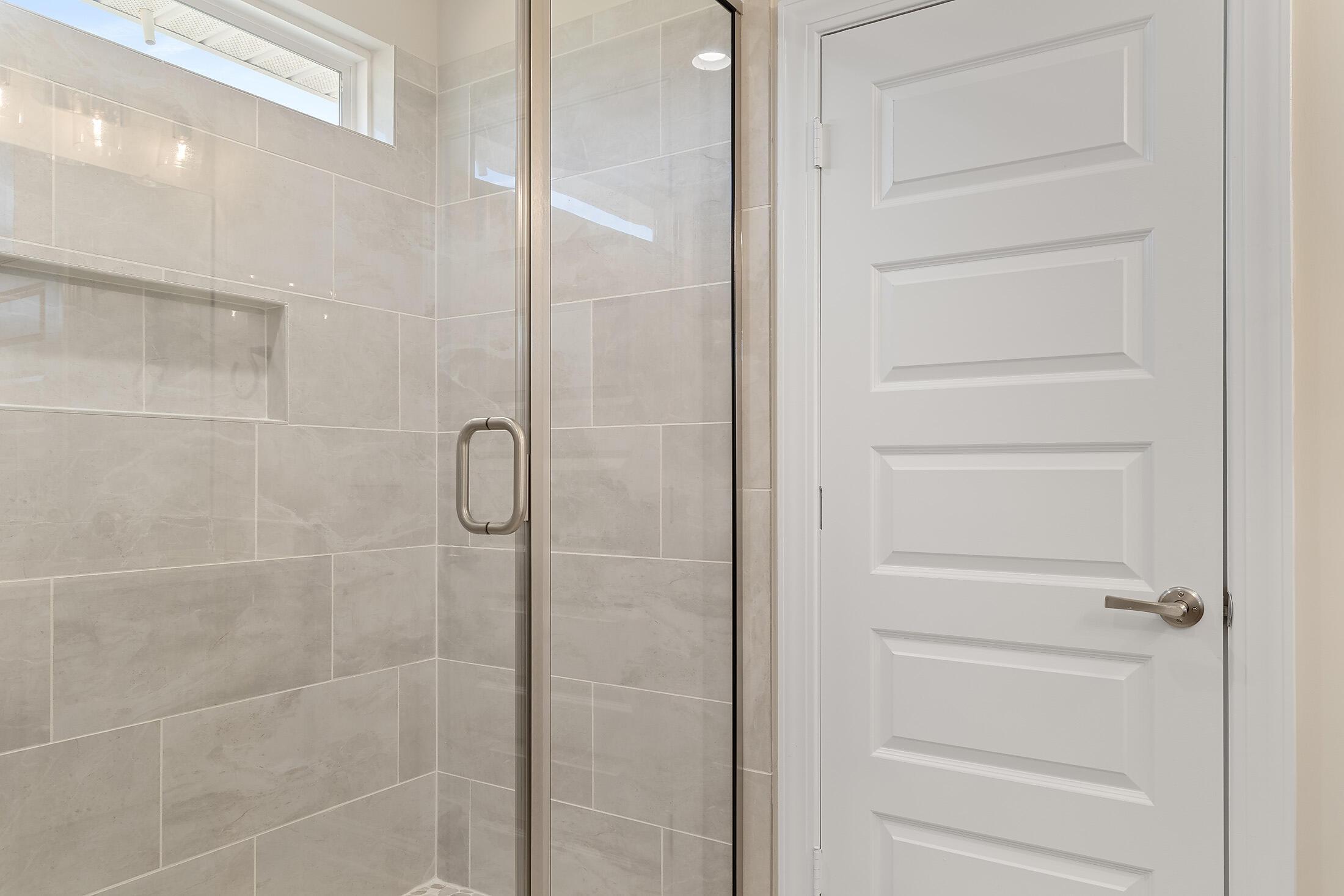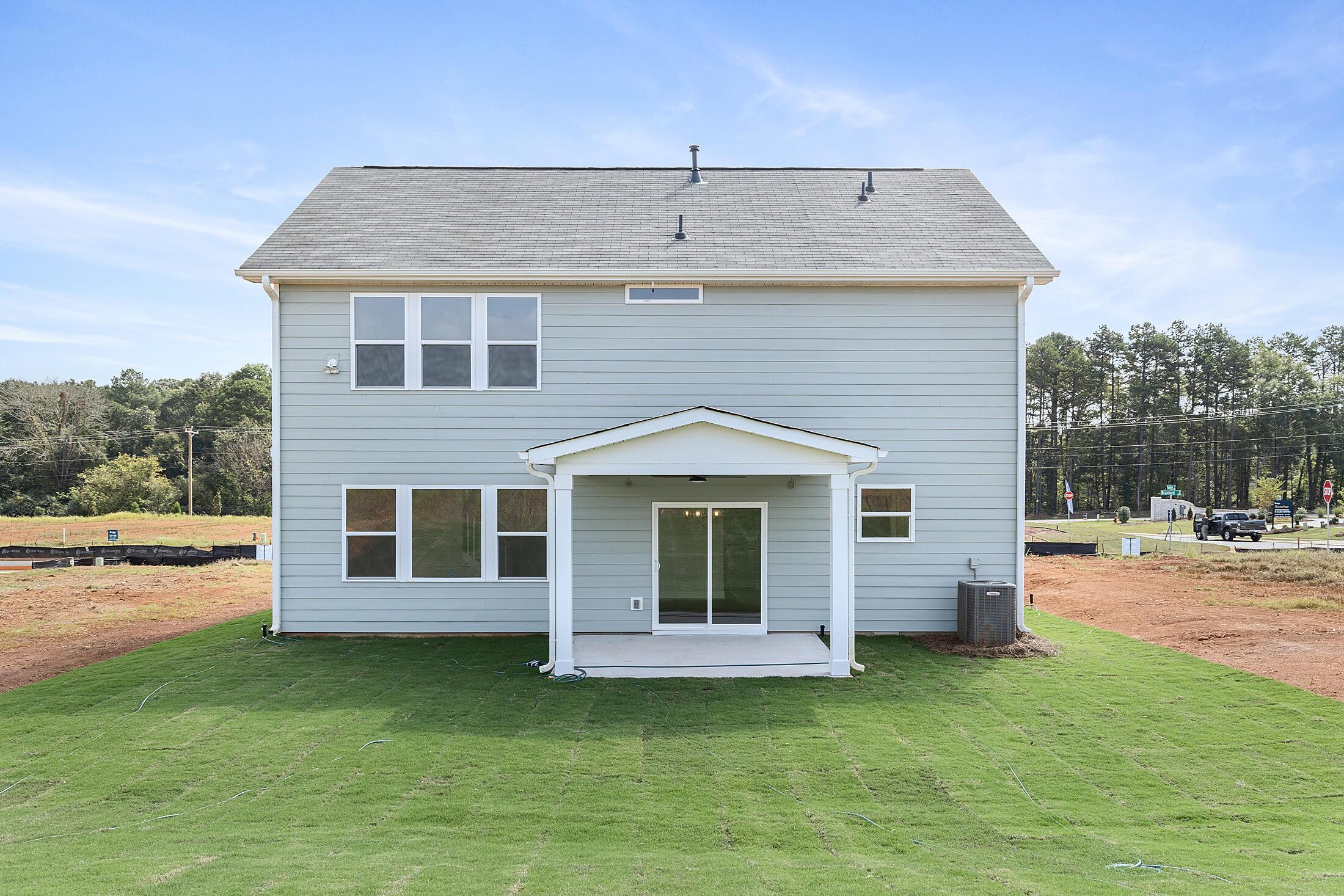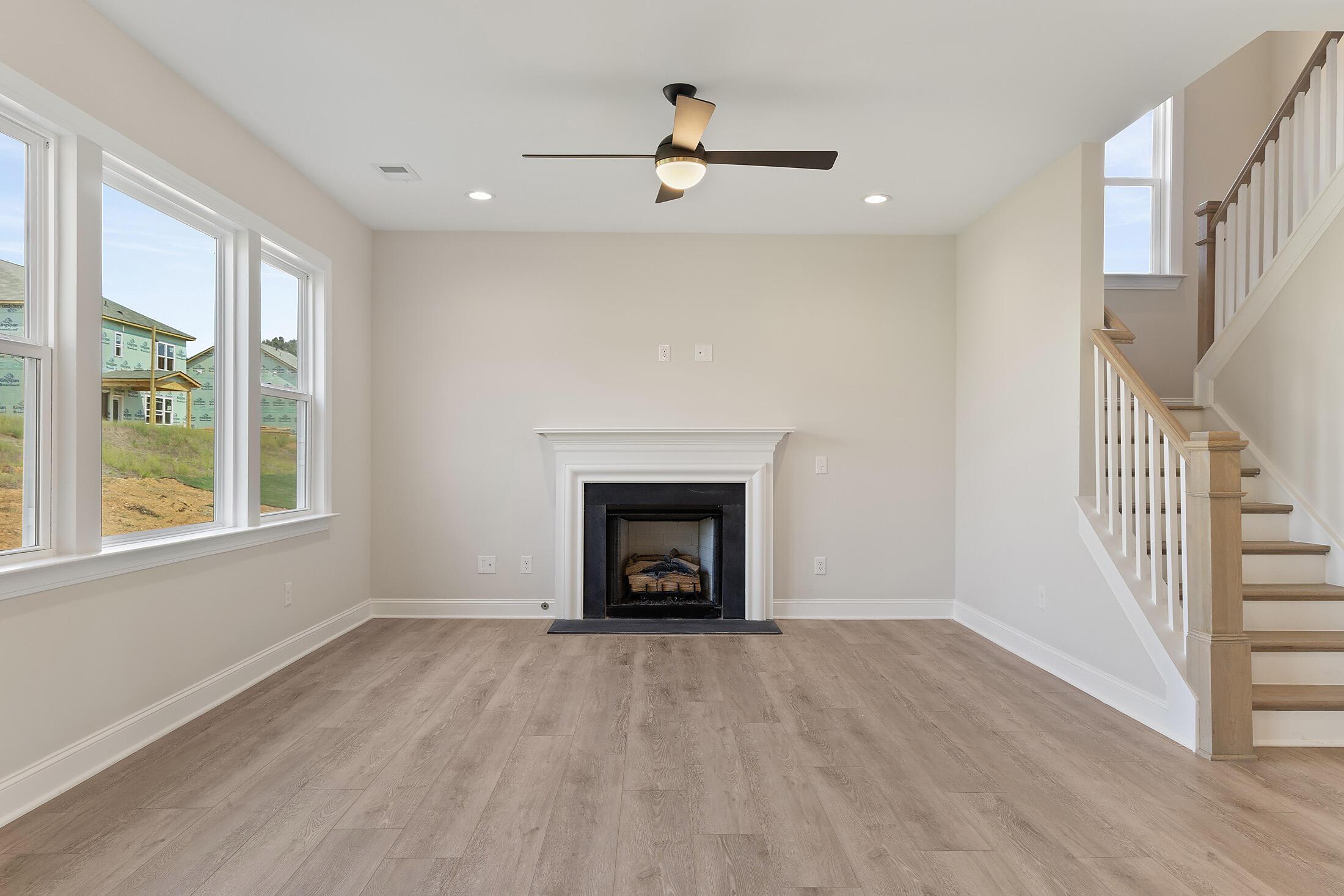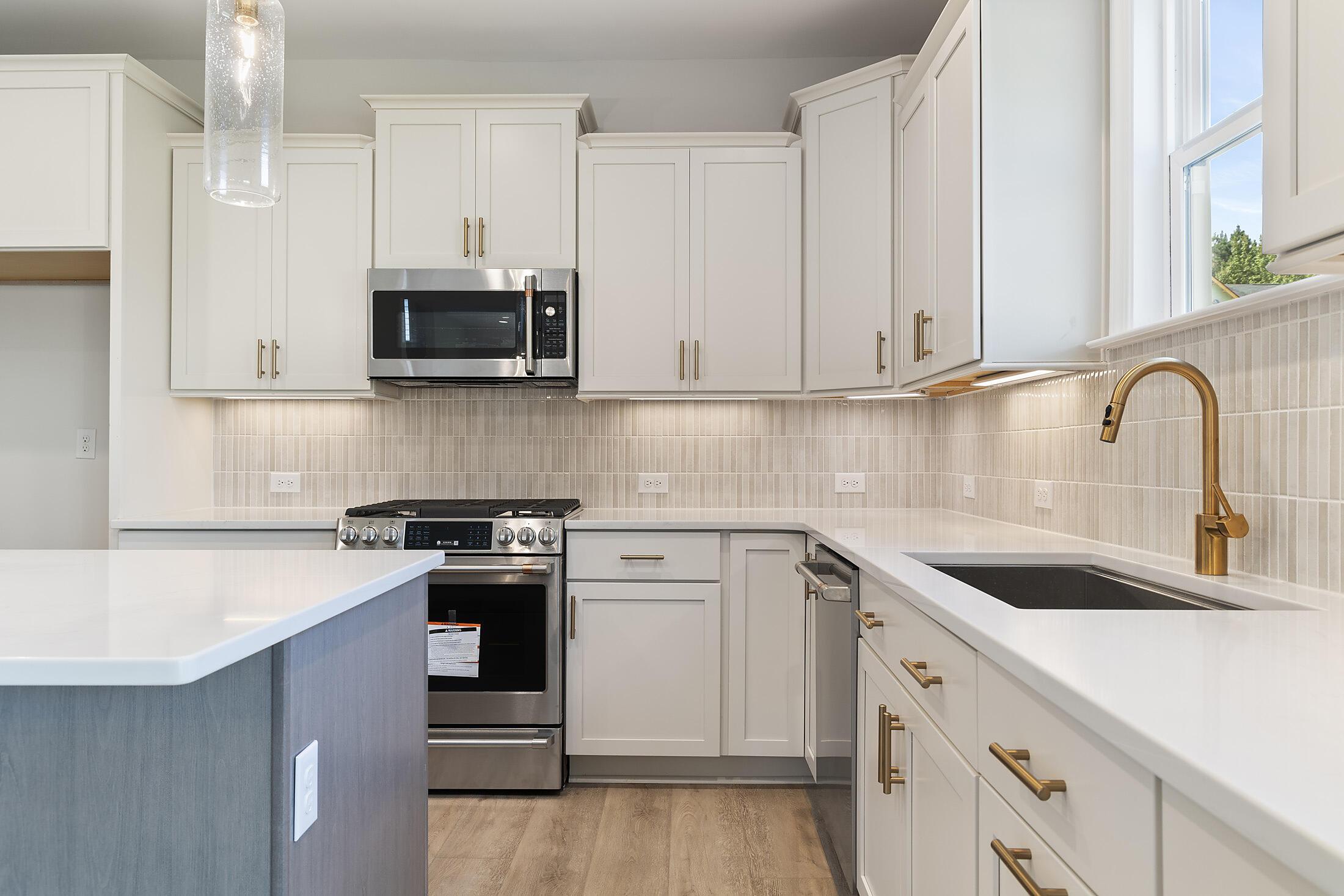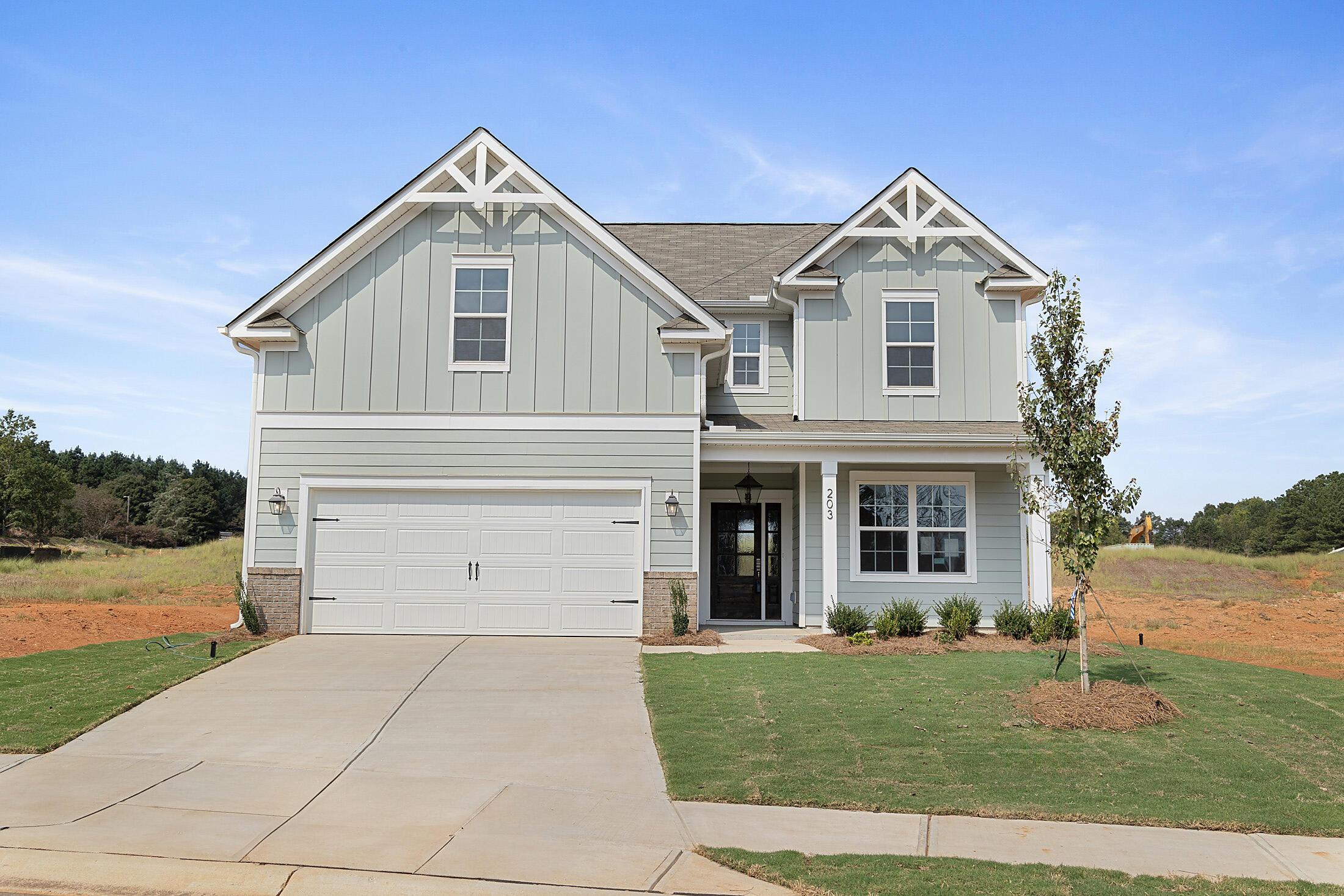 Welcome to convenience! This lovely home offers 3 bedrooms, 2.5 baths, Bonus Room, and a covered front porch and Craftsman exterior with painted Hardie® siding with board & batten and brick accents, plus a Knotty Alder wood front door. A Flex room with French doors makes for a great home office or play room, and the extended storage closet under the stairs gives you more storage options. Cozy up to the gas fireplace in the Family Room, or head back out to enjoy the warm weather under the rear covered porch. The L-shaped Kitchen includes quartz counters, mosaic tile backsplash, LED under-cabinet lights, soft-close doors and drawers, double trash pullout cabinet, lazy susan, drawer stacks, and GE Cafe appliances with a gas range, plus a large stainless undermount sink with Moen brushed gold faucet. Tucked off the kitchen is a walk-in pantry, mudroom with drop zone, and a powder room. Upstairs, you’ll find a Bonus Room and two secondary bedrooms with walk-in closets. The Premier Suite has a walk-in closet and bathroom with a large tiled shower with semi-frameless glass and built-in shampoo niche, brushed nickel plumbing, hardware, and lighting, plus quartz counter and tiled floor. The secondary bath has a raised height vanity with quartz counter and white painted cabinet, and tub/shower with tiled surround, and tiled floor. LVP floors are throughout the first floor plus upstairs hall, with oak treads on the stairs. 5″ baseboards are throughout the home as well. This home is walking distance to the planned pool amenity, which is under construction. Energy-saving features include 25-year shingles, a tankless gas hot water heater, attic tent for pull-down stairs, and radiant barrier sheathing.