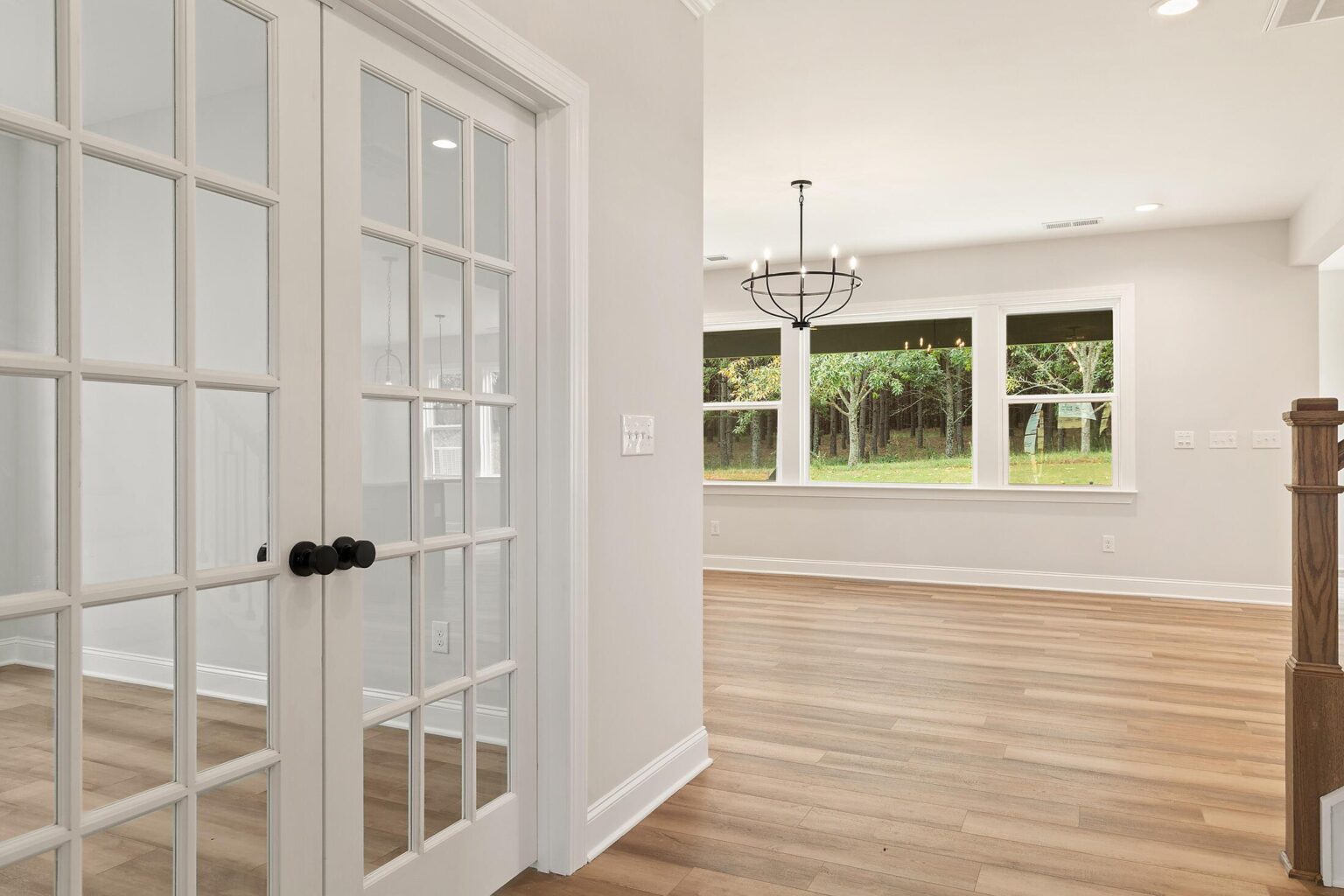 This is a lovely, spacious home located walking distance from the pool amenity, which is under construction. Enjoy the view of the lush, wooded community perimeter from the large rear covered porch! The first floor offers a guest bedroom and full bath with walk-in shower, plus a Flex room with French doors. Enjoy an open plan at the back of the home, with the Family Room, Breakfast area and Kitchen flowing together. The Family Room has a gas fireplace flanked by cabinets. The Breakfast room is wrapped in windows. The highlight of the space is the kitchen, with a large island with grey painted cabinets, 42" white perimeter cabinets, quartz counters, tile backsplash, double trash pullout, a handy drawer stack at the cooktop, and GE Profile split cooking appliances with a 36" gas cooktop and an extraction hood vented outside. Behind the kitchen is a mudroom with built-in drop zone plus a walk-in pantry. Upstairs, you'll find a large Rec Room and Laundry room with sink and tiled floor. Two bedrooms share a Jack & Jill bath. A spacious Premier Suite boasts an oversized walk-in closet and bathroom with soaking tub and separate tiled shower with quartz counters and tiled floor. Secondary baths all have quartz counters and tiled floors. Low-maintenance LVP floors throughout the main living spaces on the first floor plus the second floor hallway, with oak treads on the stairs. Enjoy modern touches throughout, such as matte black plumbing, hardware and lighting, and iron balusters on the stairs. Planned pool and walking trail amenities! Energy-saving features include 25-year shingles, tankless gas hot water heater, attic tent for pull-down stairs, and radiant barrier sheathing. 2 miles from Pendleton High.