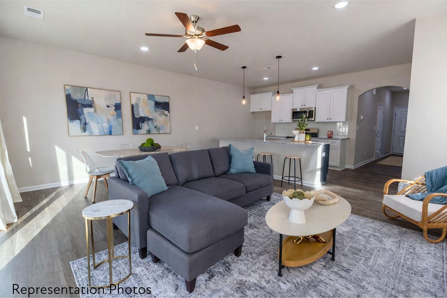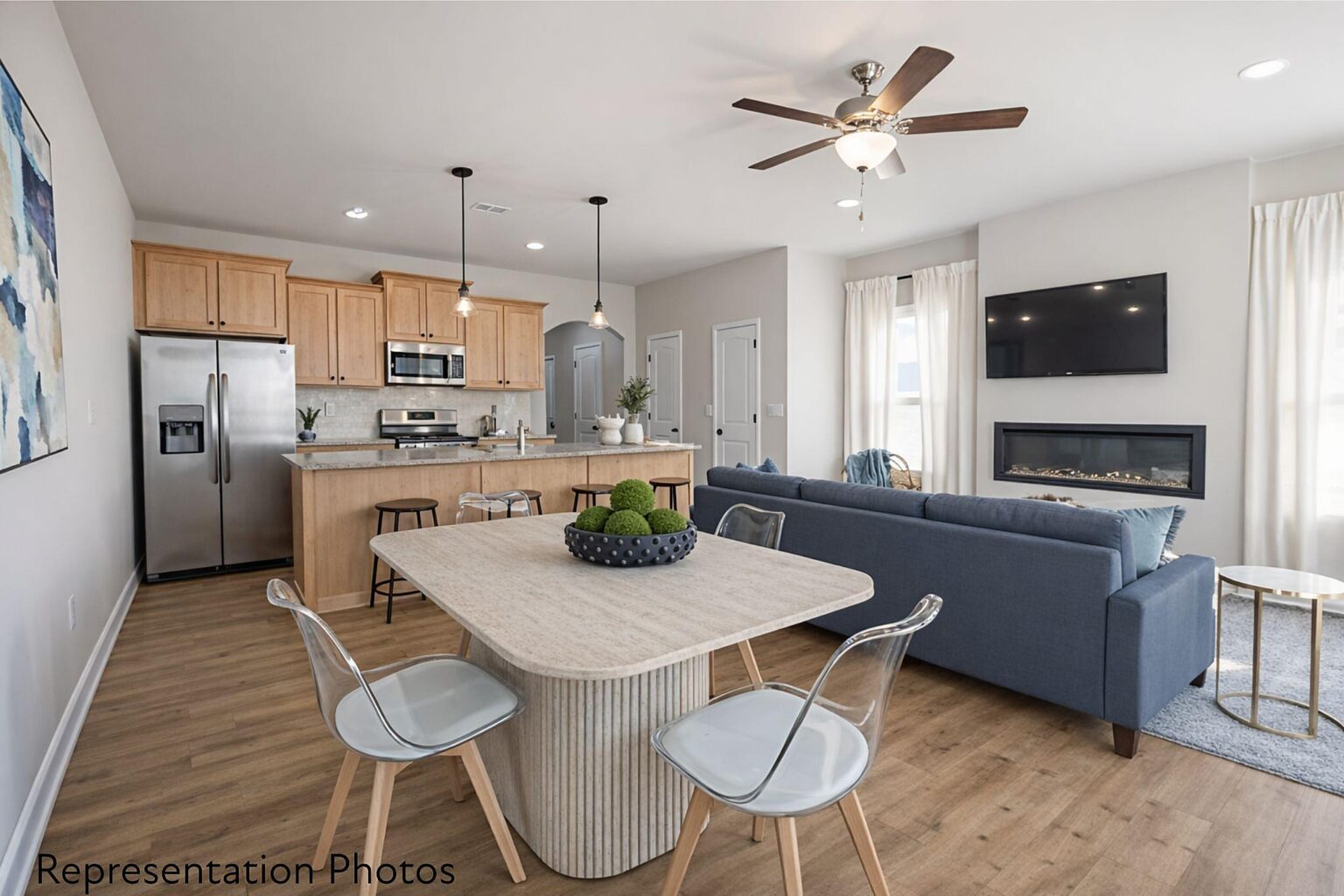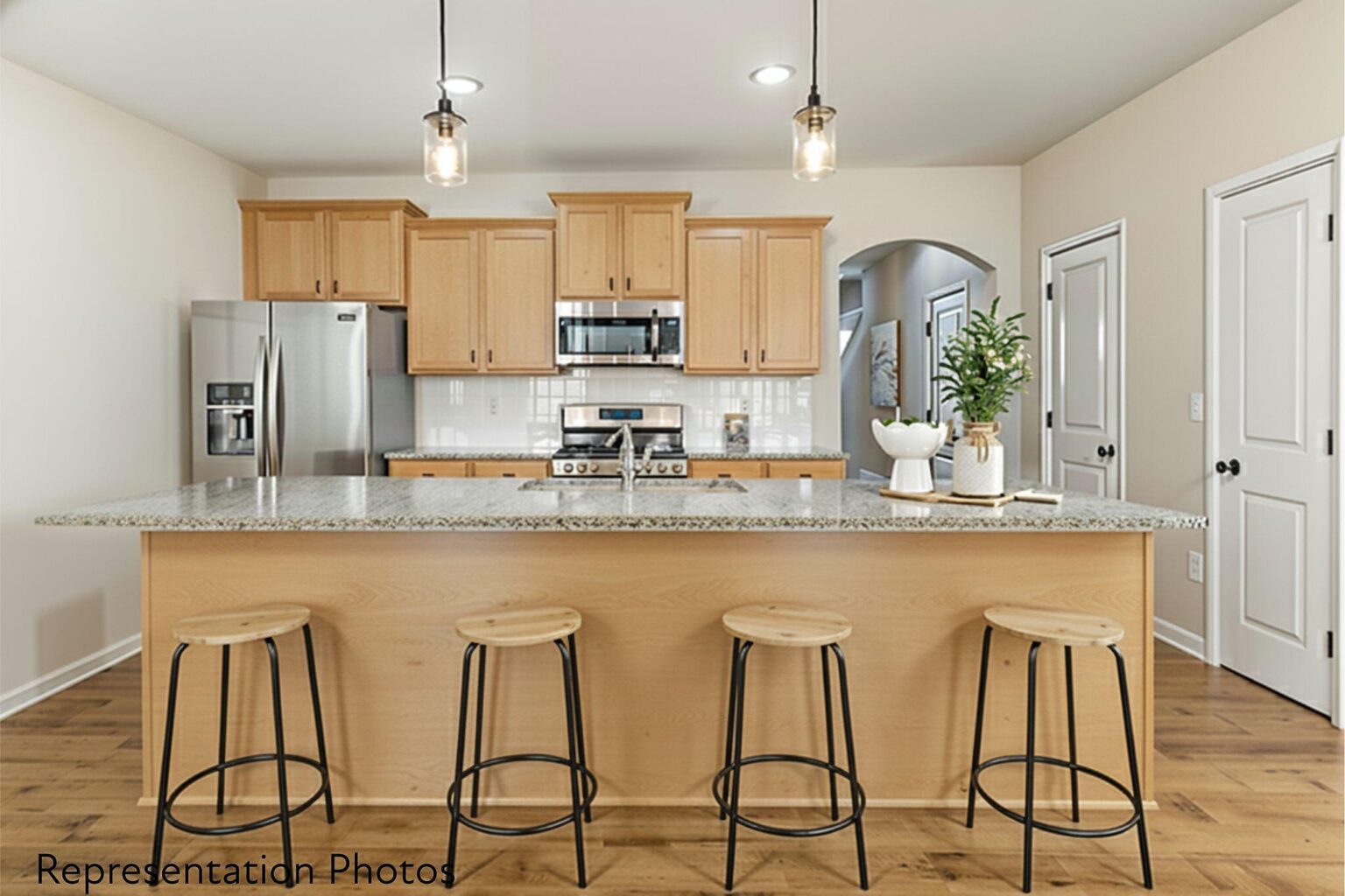 The Whitley floor plan is a thoughtfully designed townhome that blends comfort, function, and modern style. The main level features a welcoming open layout with a well-appointed kitchen centered around a spacious island—perfect for casual meals, entertaining, or everyday living.