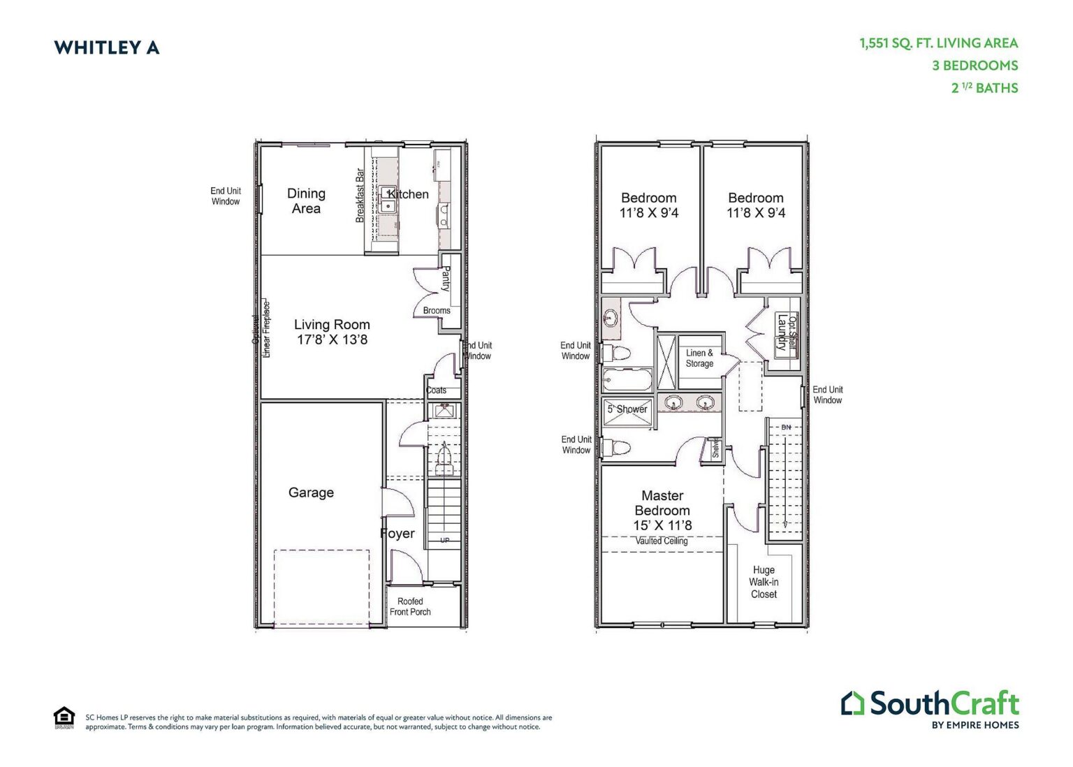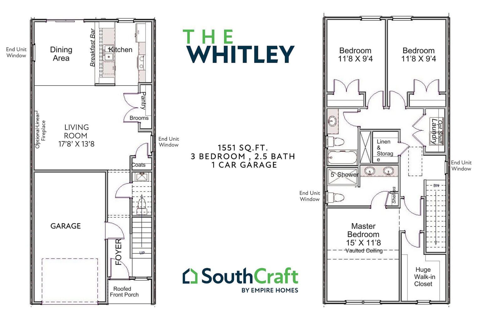With a one-car garage and smart use of space throughout, the Whitley delivers low-maintenance townhome living without sacrificing comfort or style.