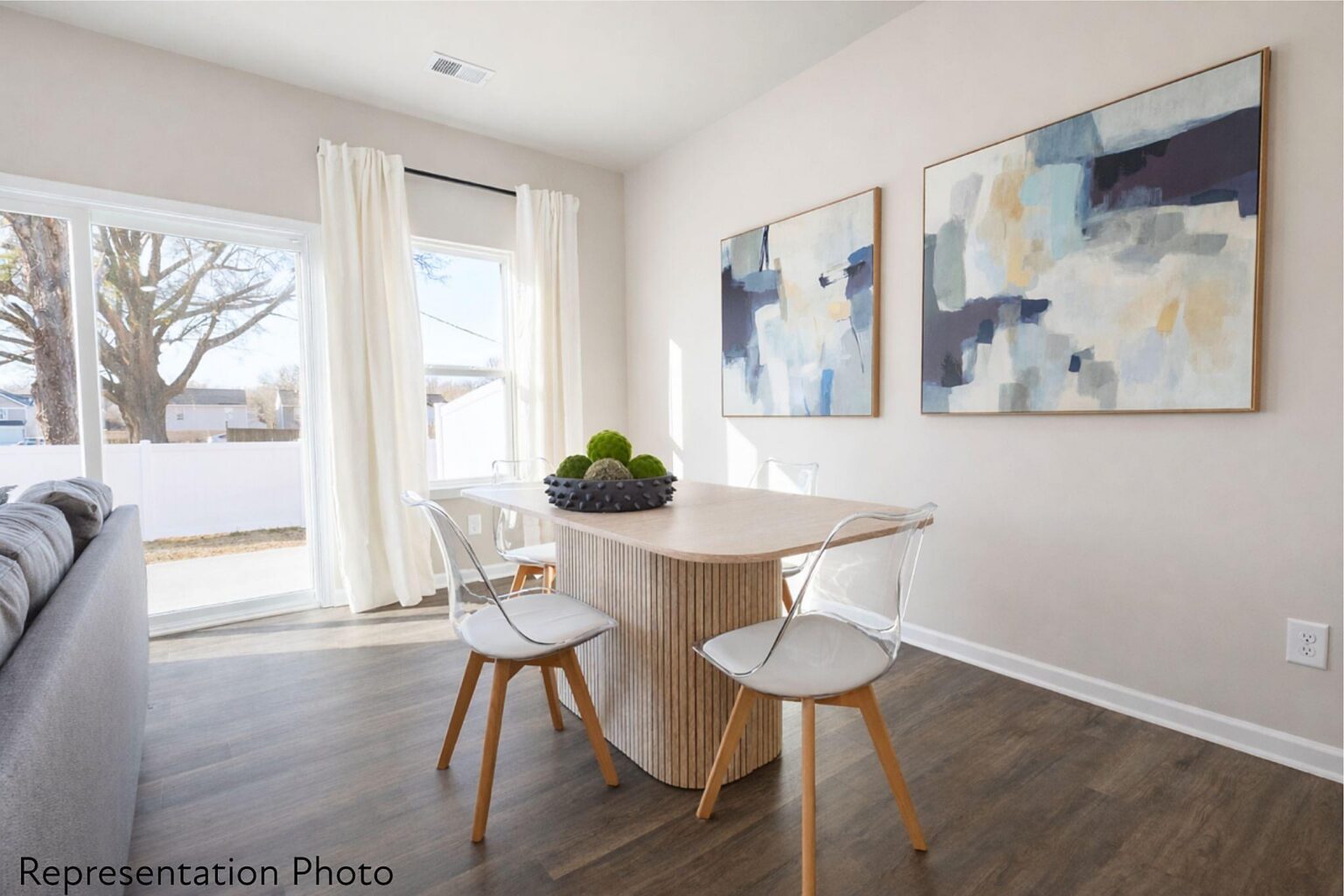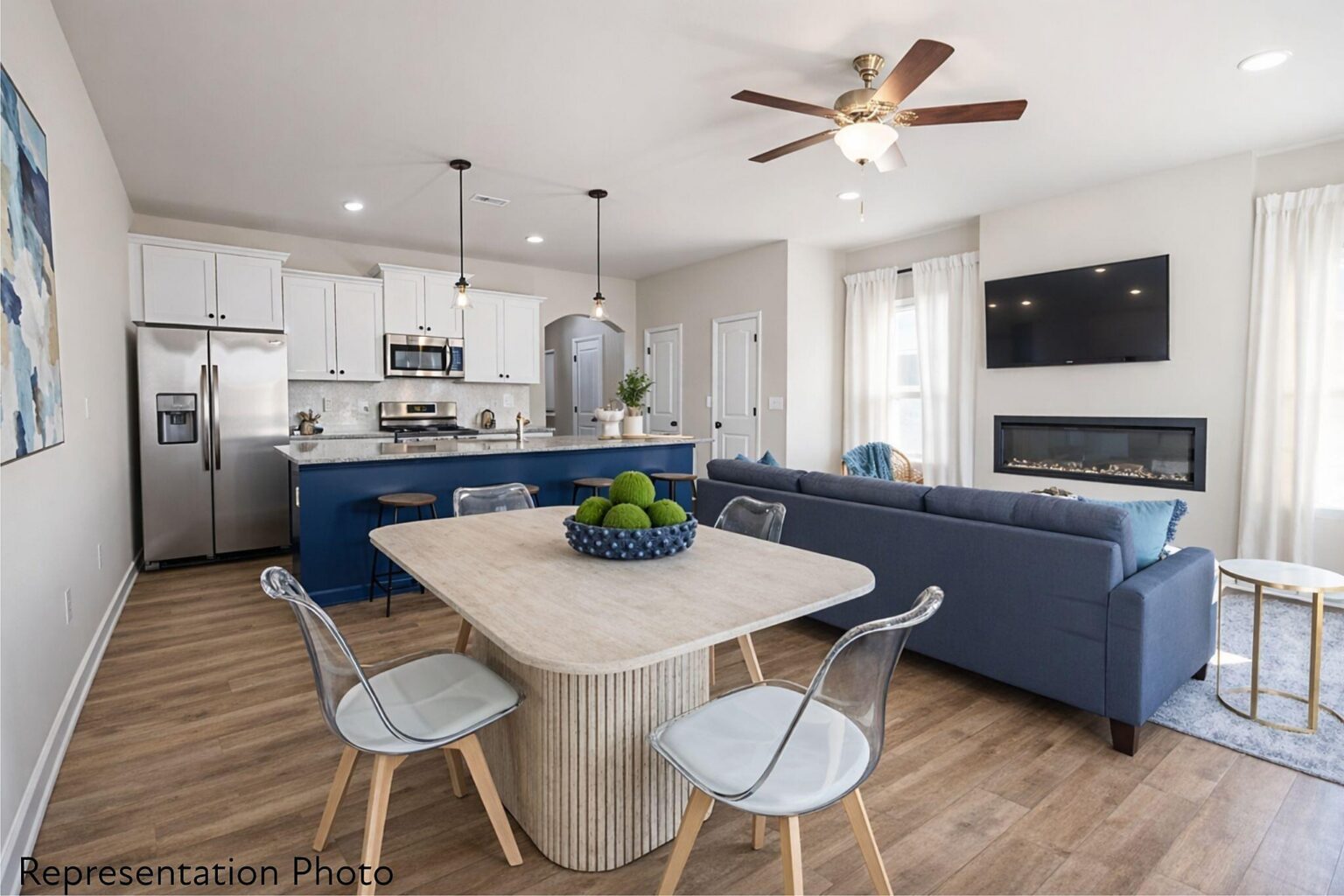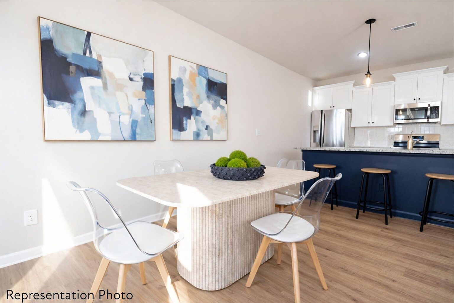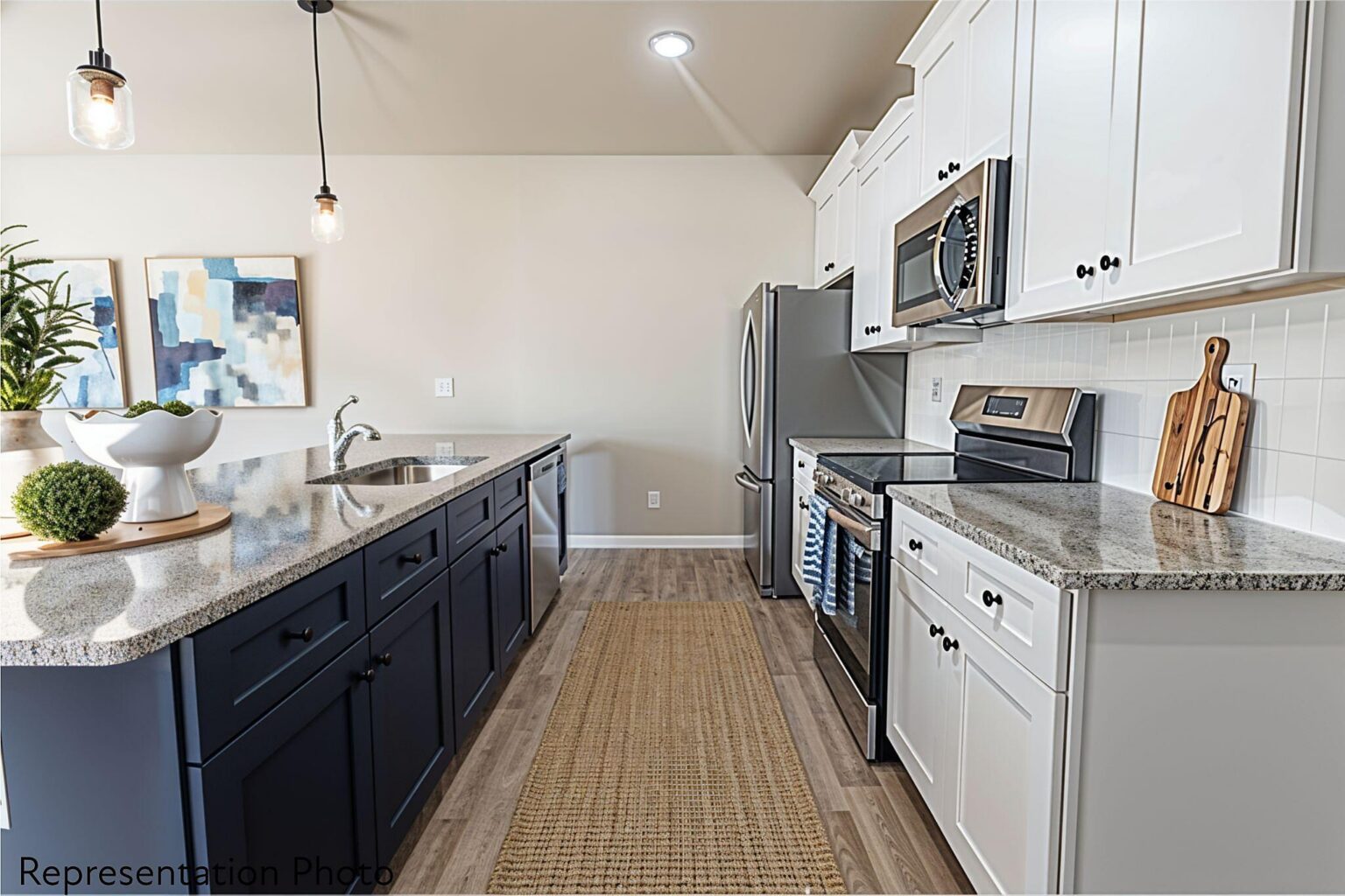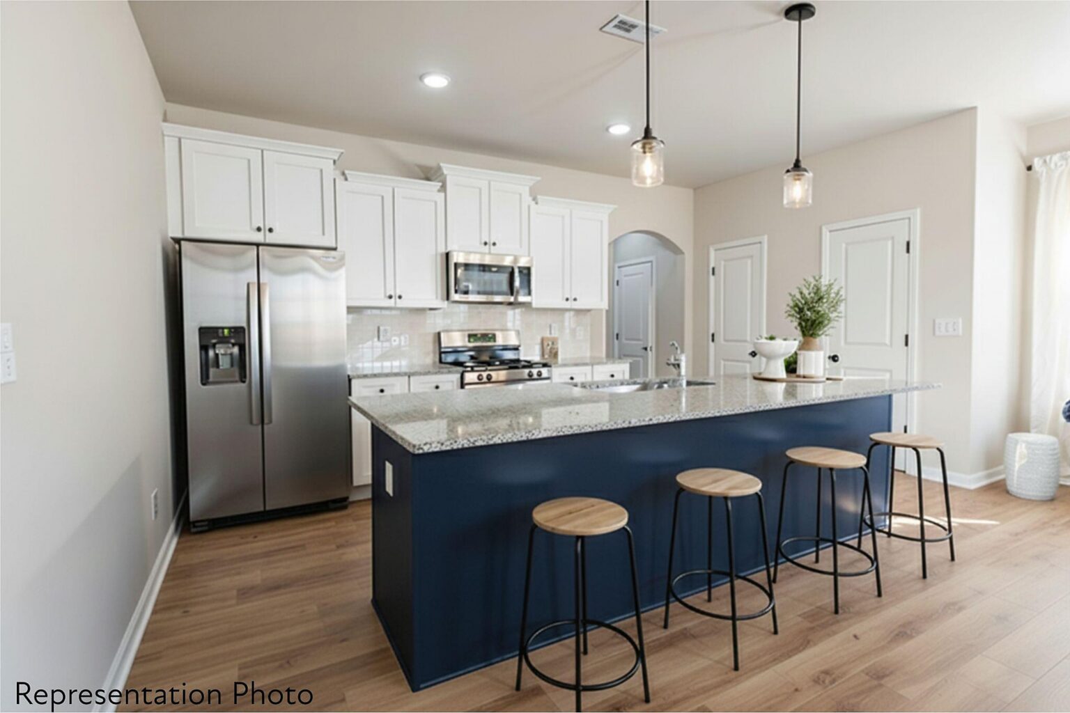This home will be complete at the end of SUMMER! Make your own interior selections! These community feature beautifully designed 3-bedroom townhomes with thoughtful layouts and upscale finishes included in the price. Buyers can choose from two open and spacious floor plans, each offering generous bedroom sizes and functional living spaces. The popular Whitley plan features a large kitchen island that overlooks the main living, dining, and flexible space—perfect for entertaining and everyday living. Multiple designer interior color packages are available, all included in the list price, so there are no surprise upgrade costs after contract. Homes feature timeless selections with soft grays, crisp whites, and natural wood tones throughout. Luxury vinyl plank flooring runs through the main living areas, all full bathrooms, and the laundry room for both style and durability. Upstairs, you’ll find spacious secondary bedrooms and a conveniently located laundry room, making daily routines effortless. All of the homes are representation photos. Some of the photos have been AI generated and may not be completely accurate. Each townhome includes a 16-foot privacy fence separating units, with potential HOA approval to extend fencing after purchase—allowing homeowners to create an even more private outdoor space. A perfect blend of modern design, transparency in pricing, and low-maintenance living—Abershire offers style, comfort, and value in a brand-new community.