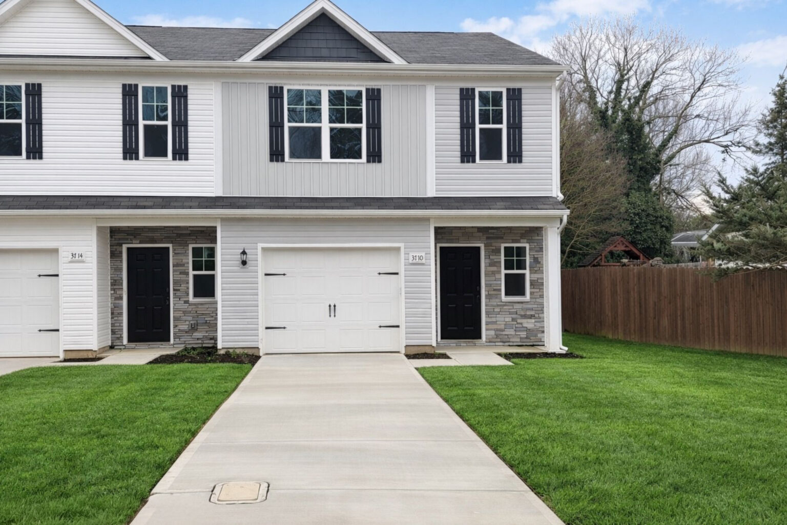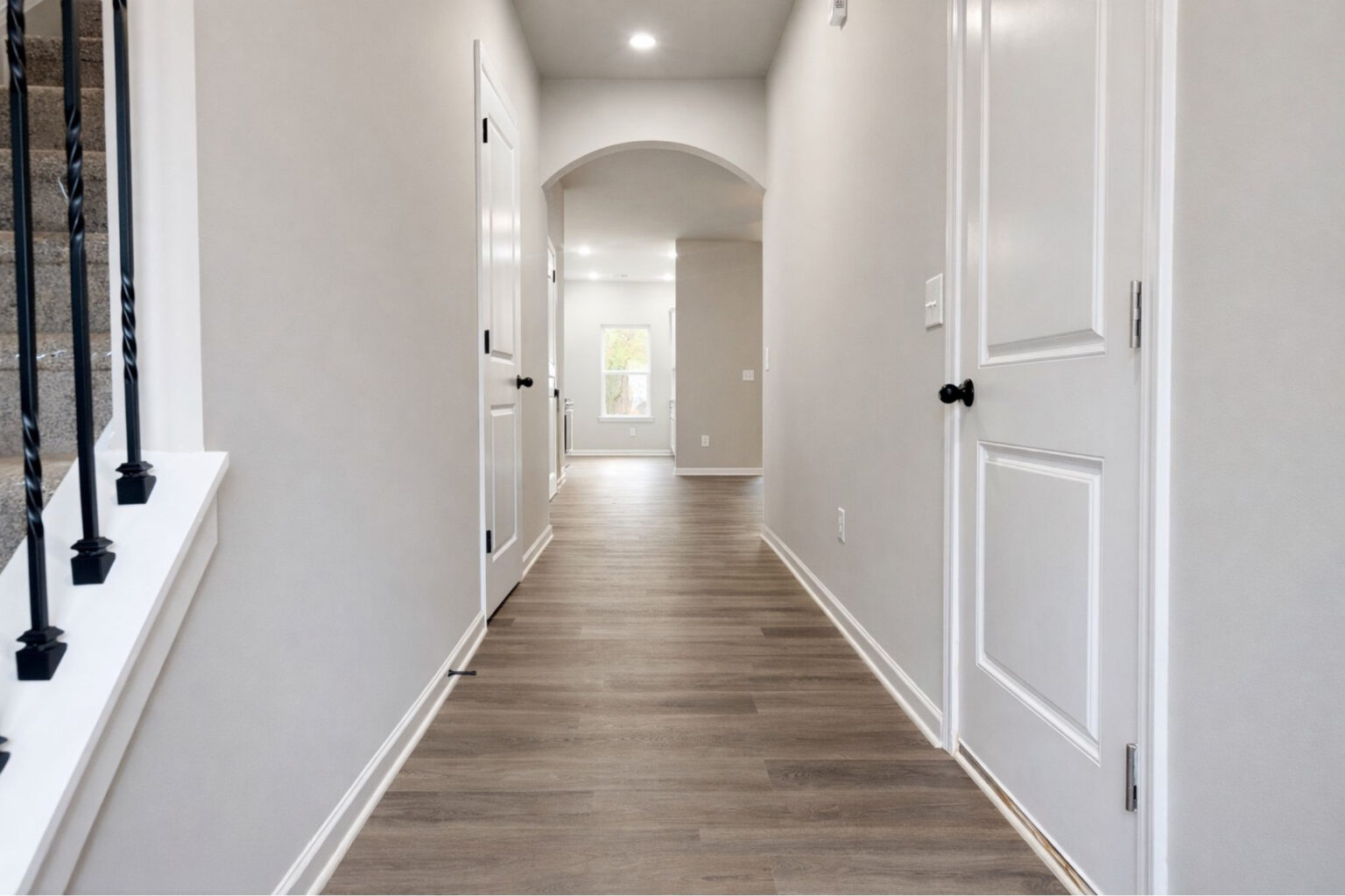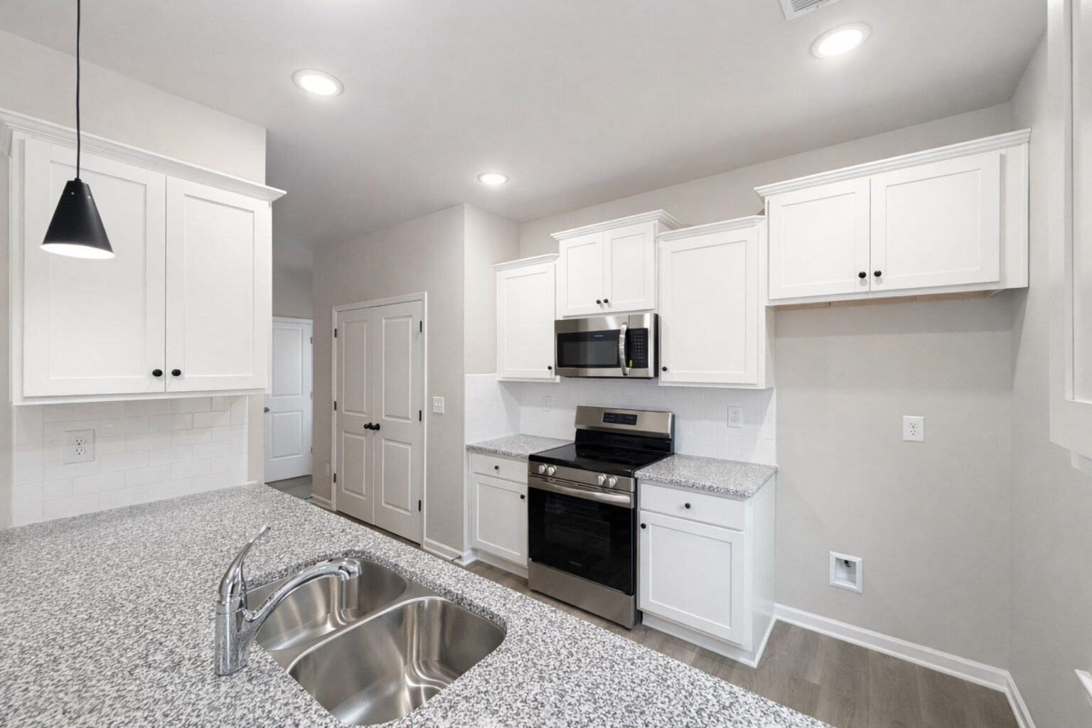 Upstairs, three well-sized bedrooms provide adaptable space for work, rest, and everyday living. Thoughtful interior finishes include luxury vinyl plank flooring on the main level, durable luxury vinyl tile in bathrooms and laundry areas, and a bright, modern palette of whites and soft grays for a clean, timeless look.