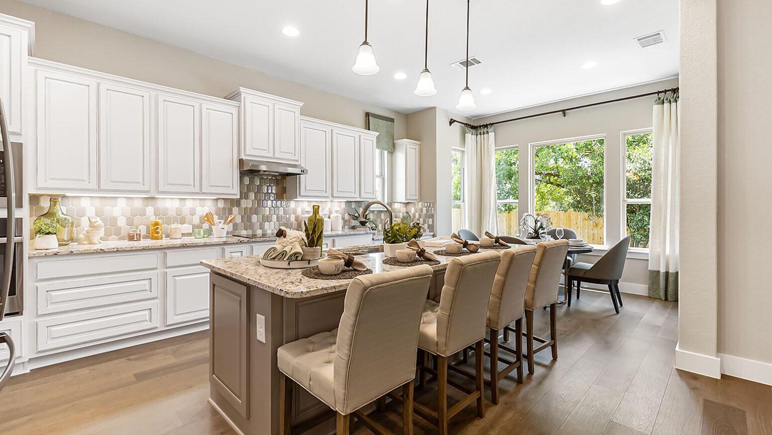 Brackenridge features 4 bedrooms, each equipped with its own walk-in closets. This two-story home offers an office, media area, and game room for all members of the family to work and play. The open-concept kitchen opens up to the family and breakfast room, allowing you to entertain easily. The breakfast room flows seamlessly into the covered patio, allowing you to enjoy the fresh air around you.