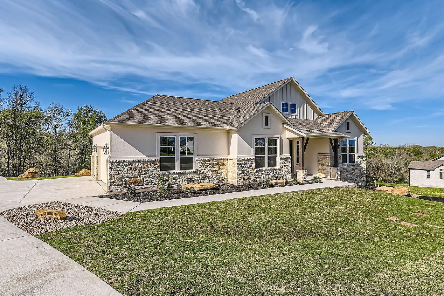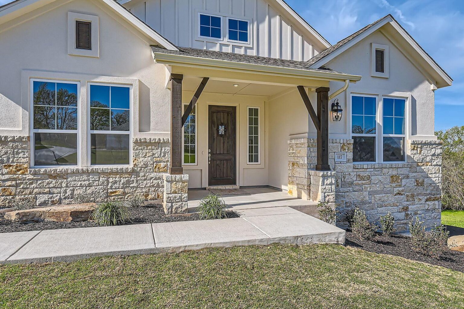 Discover the epitome of Tudor-style elegance at 20-60 Nueces. This exquisite floorplan invites you through a charming porch into a grand foyer, setting the tone for the entire residence. Step into the heart of the home – an expansive open-plan kitchen, dining, and living area bathed in natural light, seamlessly connecting to a covered patio through sliding doors. The main suite, a haven of luxury, boasts an ensuite bathroom with a separate toilet and a spacious walk-in closet, conveniently located near the living room and patio. Two additional bedrooms, each with built-in closets, share a well-appointed bathroom. The front of the house features a versatile room perfect for a study or office, complemented by a convenient laundry area. With a three-car garage and a kitchen adorned with a walk-in pantry, this residence at 20-60 Nueces is a timeless blend of style and functionality. Experience the allure of modern living in this meticulously designed Tudor gem.