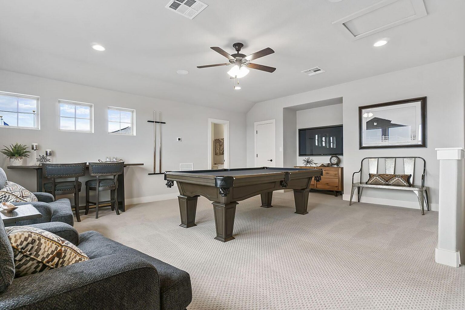 This beautiful Model home is 2677 sq.ft. It's our most popular floor plan in Siena. This amazing 3 bedroom, 3 bath, has a study, flex room, upstairs bonus room, fireplace with stone surround up to the ceiling, a bay window in the master suite, sliding barn door at the master bath, extended covered patio, and a 2.5 car garage. The interior colors are grey and white, so it's light and bright. White kitchen cabinets are accented with a grey glaze. The large kitchen features a corner walk-in pantry, 2 sets of pot drawers, a recycle center, an under-mount stainless steel sink, black stainless appliances, under-cabinet lighting, and pretty white and grey Silestone countertops. Other special features include an upgraded stone elevation with metal roof accents, a front door with an iron grille, upgraded door and trim package, upgraded lighting and plumbing fixtures, granite in the master bath, upgraded carpet and bath tile, wired for stereo, conduit and a 110 outlet to hang TV over fireplace, and a security system. This home has beautiful wood floors throughout the downstairs, except for bedrooms, utility room and bathrooms. All baths have upgraded wall and floor tile as well. Large corner lot with pretty landscaping in front and back, and of course full irrigation. Come see it! It's gorgeous!!