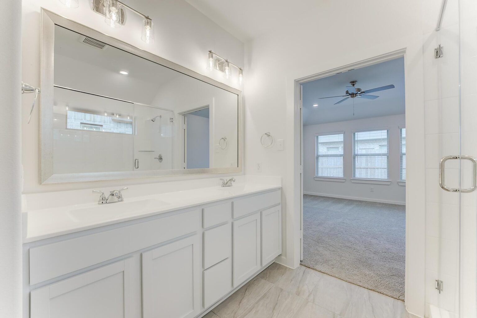 The Kendall is a well-designed one-story home with 3 bedrooms, 2 full bathrooms, and 1,527 square feet of living space. The foyer leads to an open-concept kitchen, casual dining area, and living room, perfect for gatherings. A covered patio extends from the living room, offering an ideal spot for outdoor relaxation. The primary bedroom, located at the back of the home, features a walk-in closet and an en-suite bathroom with dual vanities. Two additional bedrooms are situated near the front, sharing a full bathroom.
