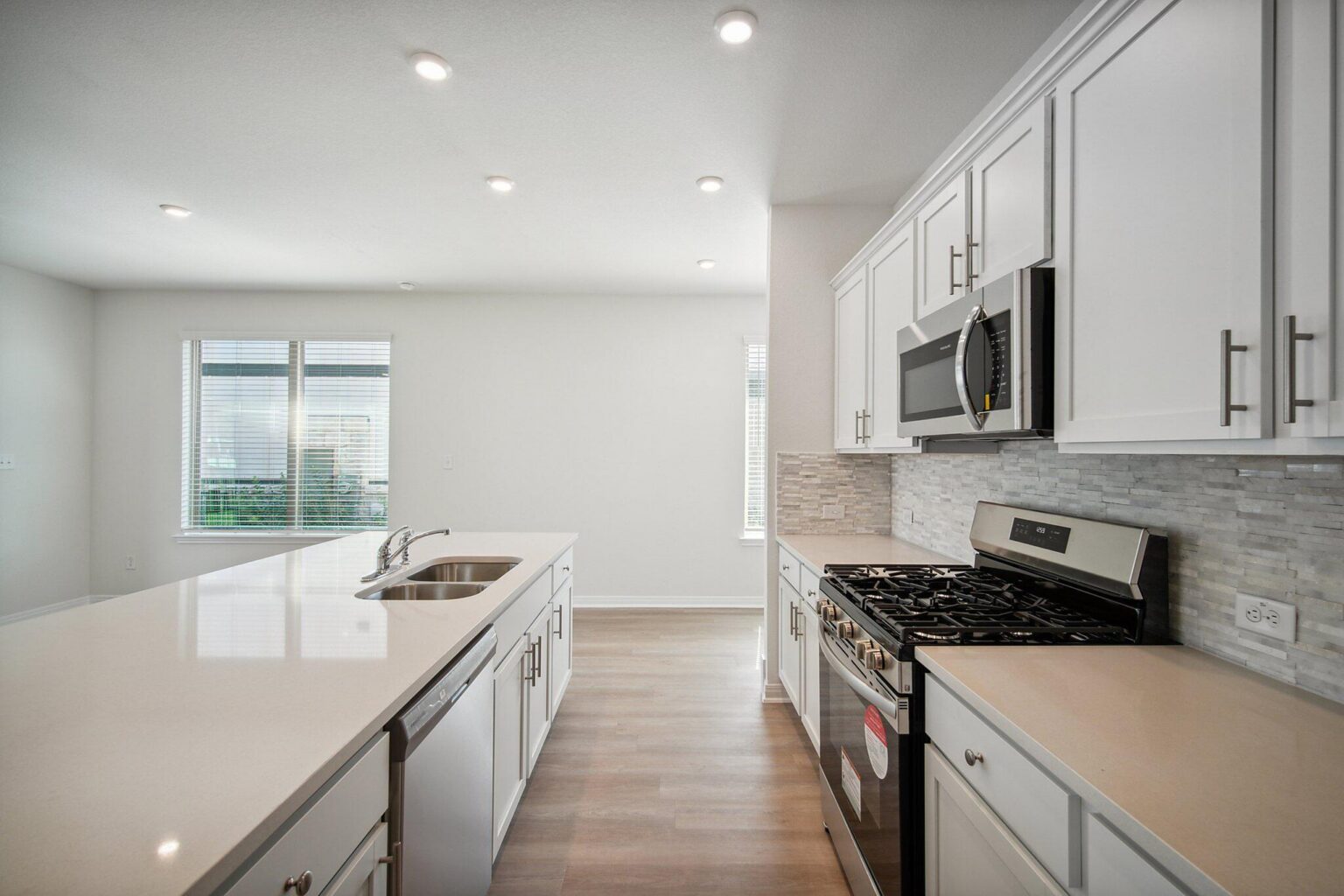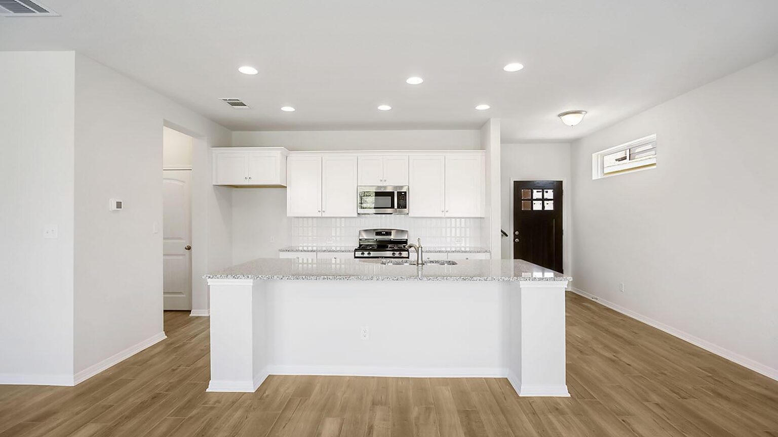 This spacious, 2-story, lock-n-leave, townhome features an open concept floor plan that is great for entertaining. The kitchen boasts of upgraded backsplash, quartz countertops and a large island. LVP floors in downstairs common areas and upgraded tile floors in all bathrooms. Large primary suite with walk-in closet. This home has ample storage, including under-stair storage, covered patio, water softener loop and garage door opener.