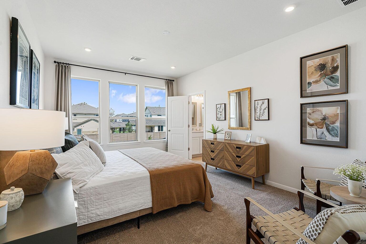 Open Houses: Thursday-Saturday from 11am-5pm and Sunday 1am-5pm. This 3-bedroom, 2.5-bathroom Abbey floor plan makes most of its square footage, allowing you to design the home you’ve always wanted. The main level features a spacious living room which flows directly onto the covered patio — perfect for entertaining guests or simply enjoying a meal outdoors. The second level is where the primary bedroom can be found, equipped with a luxurious ensuite and walk-in closet. You’ll also find a washer and dryer on this level, making laundry easily accessible. The Abbey Carport model features a 1-car garage and 1-car carport