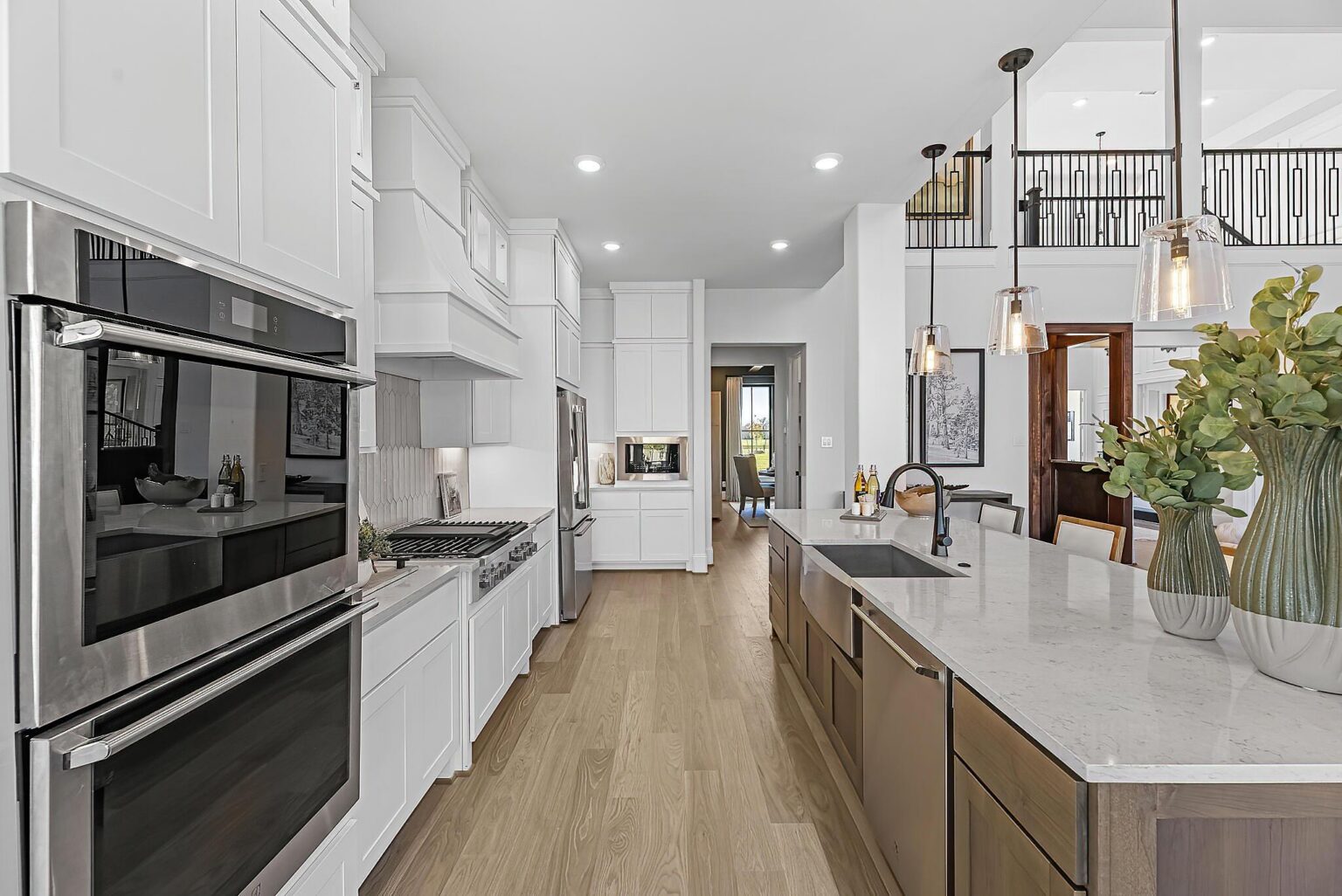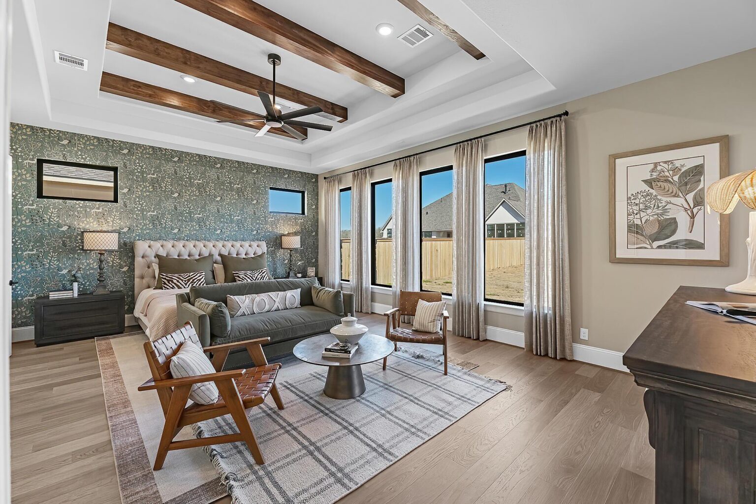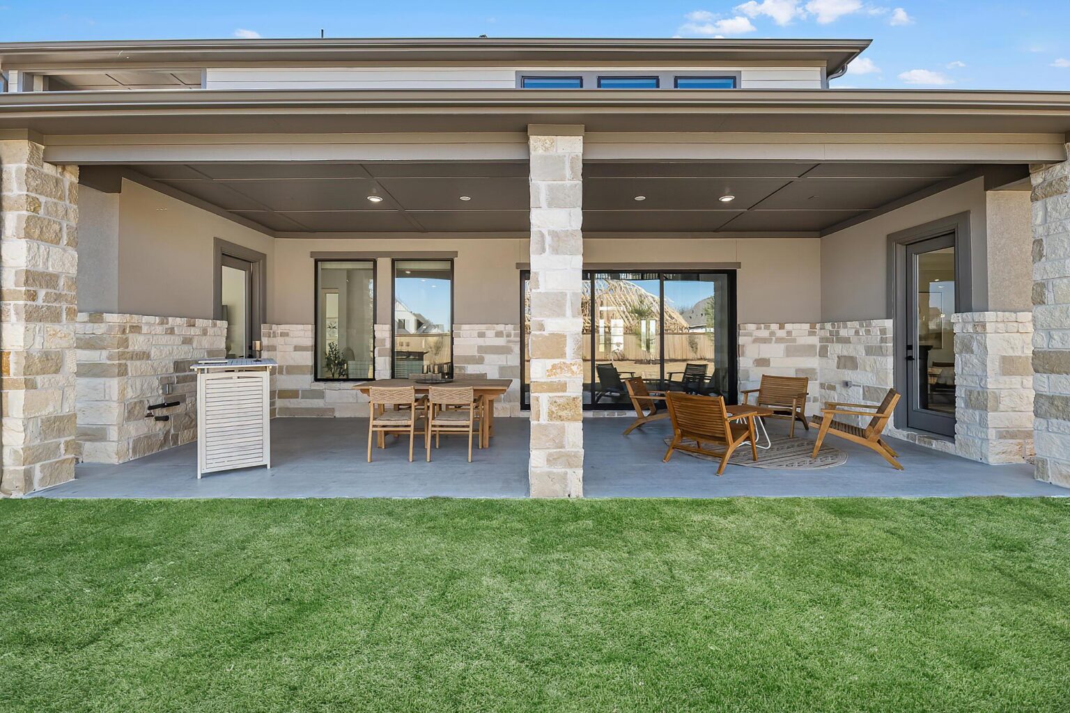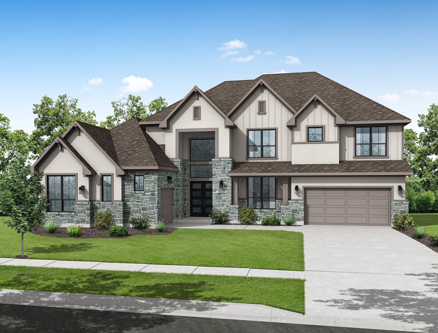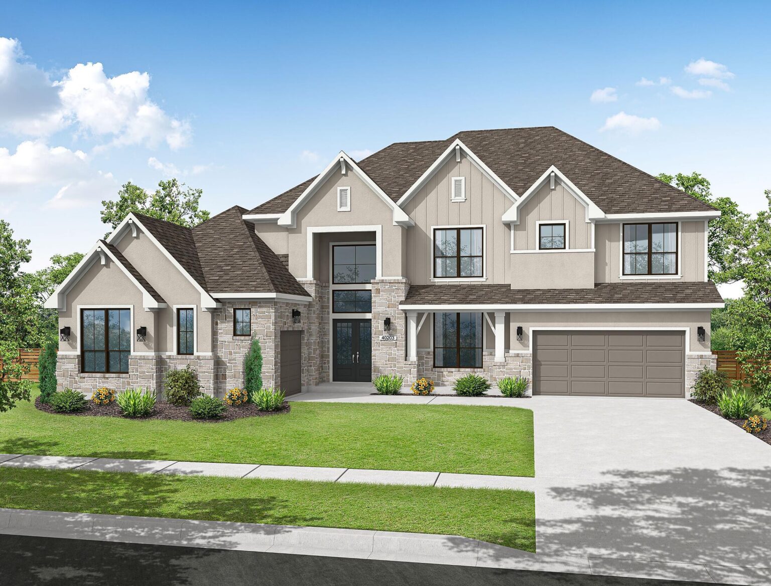 The Amherst delivers elegance, and flexibility across 4,741 sq. ft. of gorgeously planned living space. A sweeping curved staircase greets you in the grand foyer, flanked by a private study and formal dining room. The heart of the home opens to a bright and expansive kitchen, complete with quartz countertops, a wine grotto, and chef-grade Electrolux® appliances, all flowing into the casual living area and Texas-sized covered patio. The main floor primary suite is your personal escape—featuring a spa-inspired bath with freestanding tub, dual Delta® showerheads, and a walk-through designer closet connecting to the laundry room. A secondary bedroom with full bath sits quietly in its own wing, perfect for guests or extended family. Upstairs, three more bedrooms join a game room, media room, and a covered balcony that makes a statement of its own. Prewired surround sound, Energy Star® certification, and thoughtful tech-ready finishes make this home as smart as it is stunning. The Amherst is luxury that actually lives well.