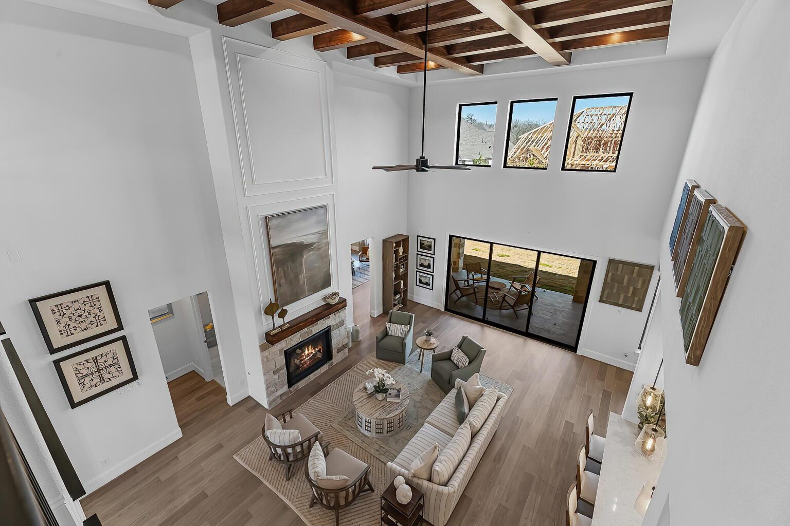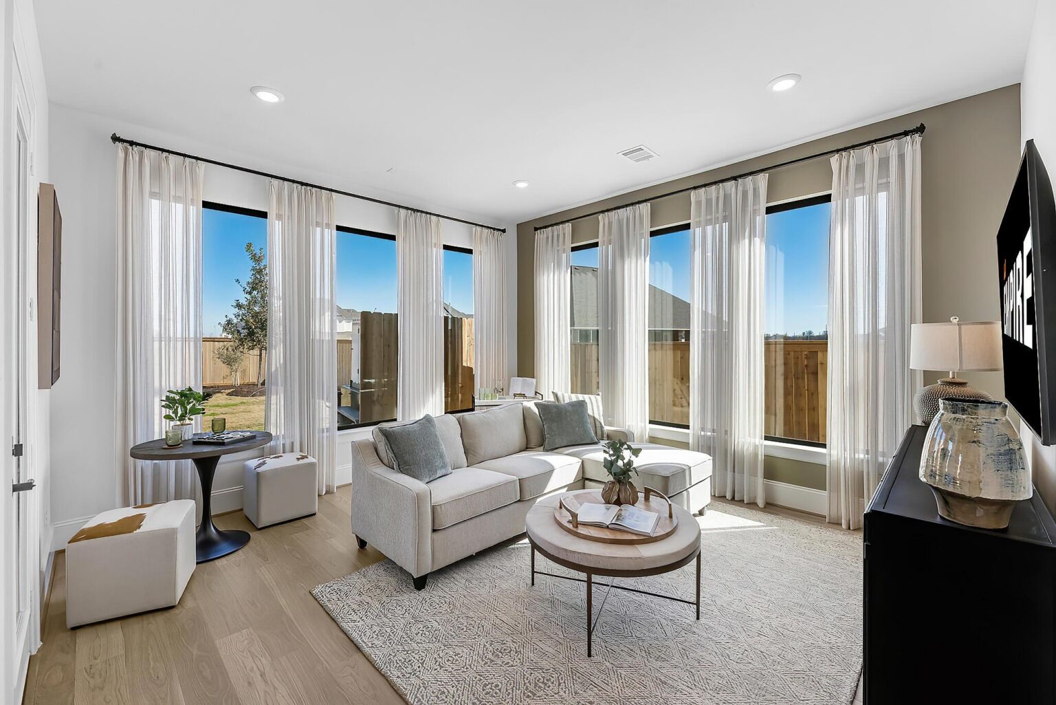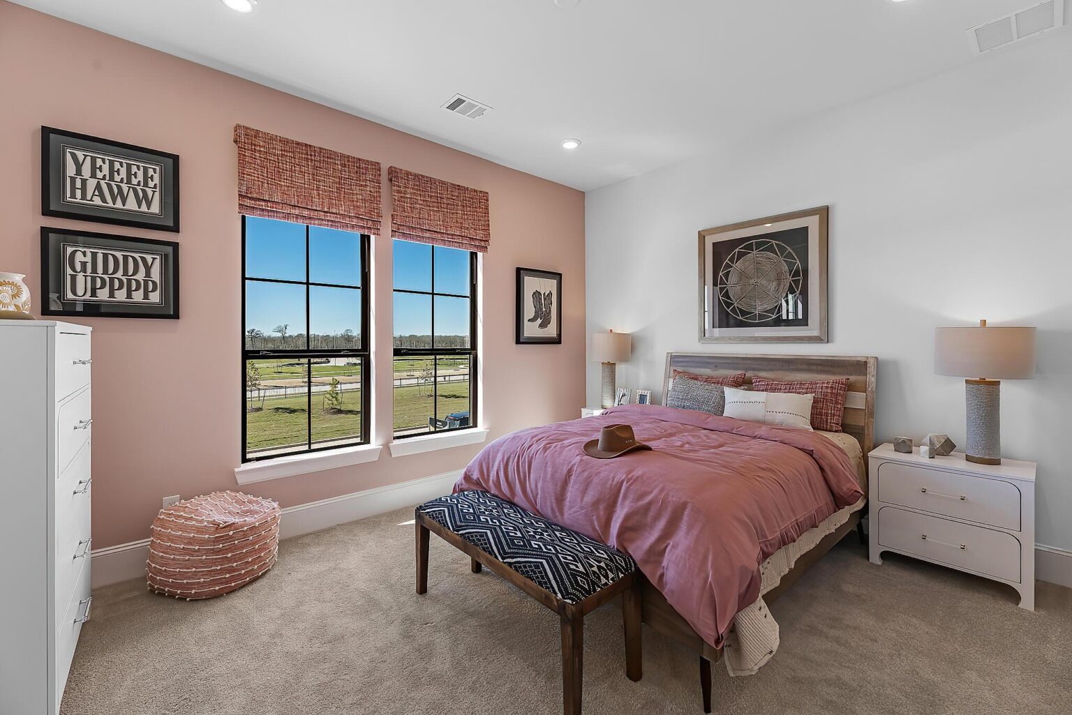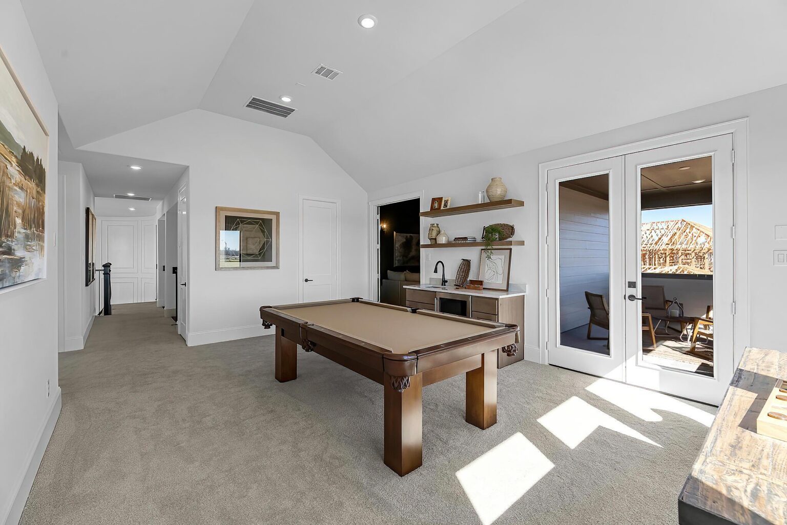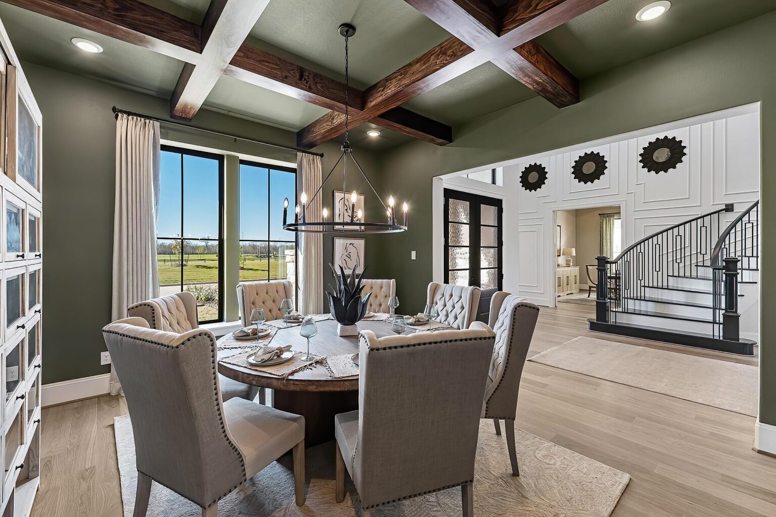 The Amherst delivers elegance, and flexibility across 4,741 sq. ft. of gorgeously planned living space. A sweeping curved staircase greets you in the grand foyer, flanked by a private study and formal dining room. The heart of the home opens to a bright and expansive kitchen, complete with quartz countertops, a wine grotto, and chef-grade Electrolux® appliances, all flowing into the casual living area and Texas-sized covered patio. The main floor primary suite is your personal escape—featuring a spa-inspired bath with freestanding tub, dual Delta® showerheads, and a walk-through designer closet connecting to the laundry room. A secondary bedroom with full bath sits quietly in its own wing, perfect for guests or extended family. Upstairs, three more bedrooms join a game room, media room, and a covered balcony that makes a statement of its own. Prewired surround sound, Energy Star® certification, and thoughtful tech-ready finishes make this home as smart as it is stunning. The Amherst is luxury that actually lives well.