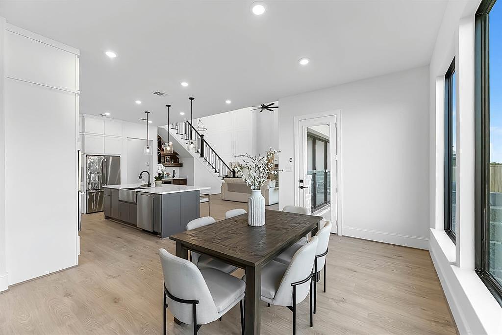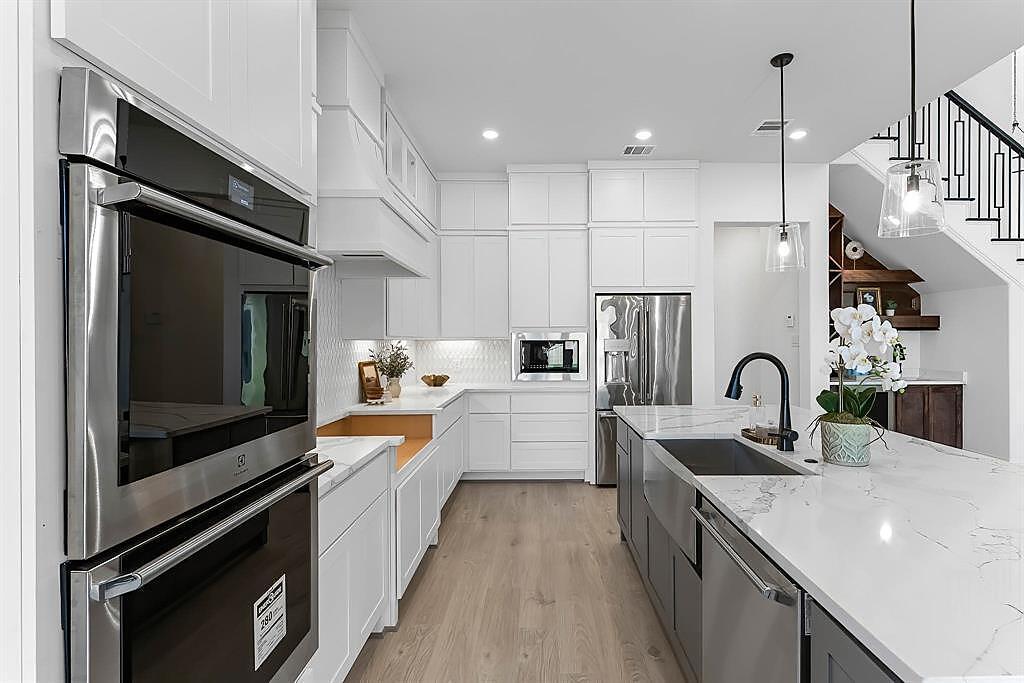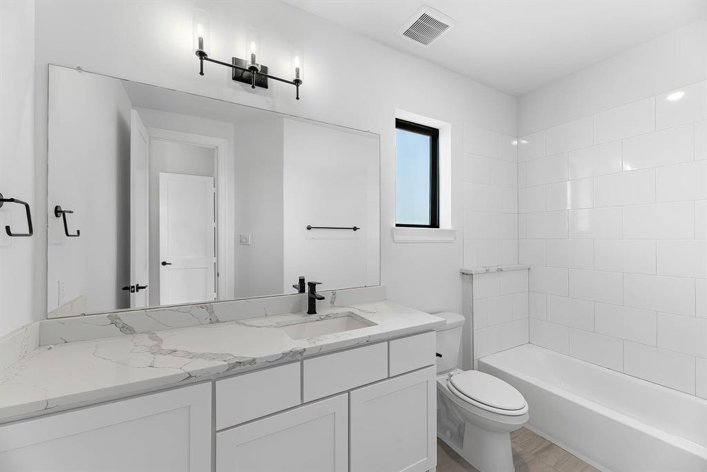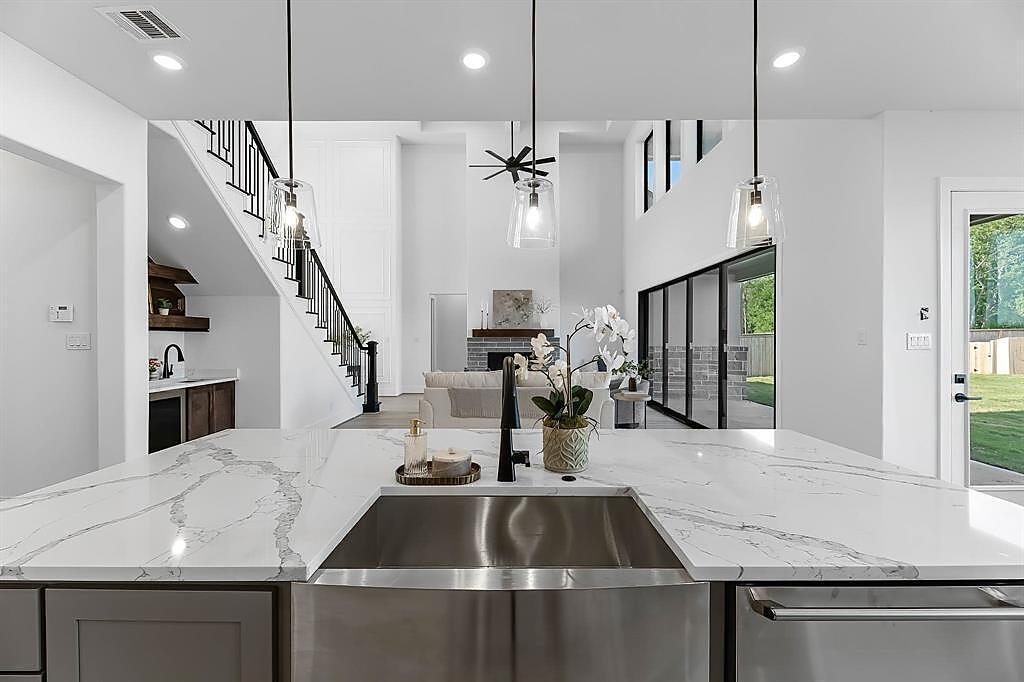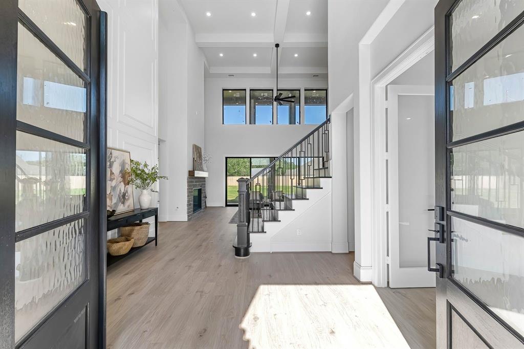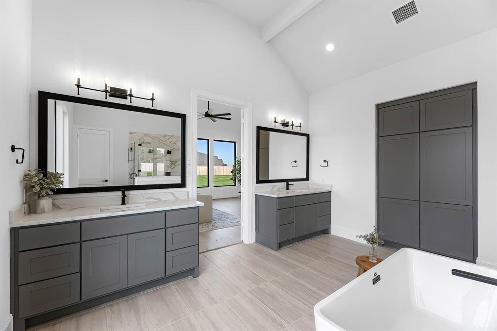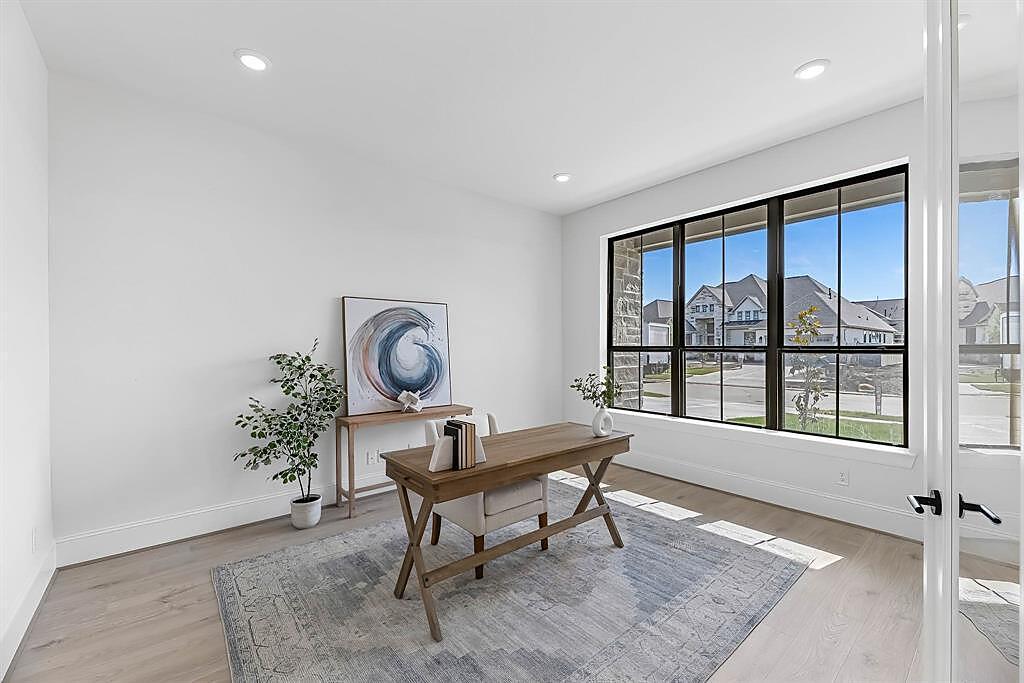 The Bridgeport floorplan delivers an impressive 4,475 sq. ft. of elevated design and everyday function across two beautifully crafted stories. The first level centers around an expansive open-concept living space, anchored by a gourmet kitchen with quartz countertops, Benedettini® cabinetry, and a 36" 6-burner cooktop. A casual dining area opens to the Texas-sized covered patio—ideal for indoor-outdoor entertaining—while a dramatic two-story study and wine grotto add charm and sophistication. The private first-floor primary suite features a spa-inspired bath with a freestanding tub, dual Delta® showerheads, and a walk-in closet that dreams are made of. Upstairs, the layout shines with three spacious bedrooms, two full baths, a game room with balcony access, and an open gallery overlooking the main living space below. With five total bedrooms, five bathrooms, and thoughtful additions like a morning bar, porte-cochère, and energy-saving tankless water heater, the Bridgeport perfectly blends bold architecture with livable luxury. Whether hosting guests or enjoying quiet moments, this home is designed to meet every need—stylishly.