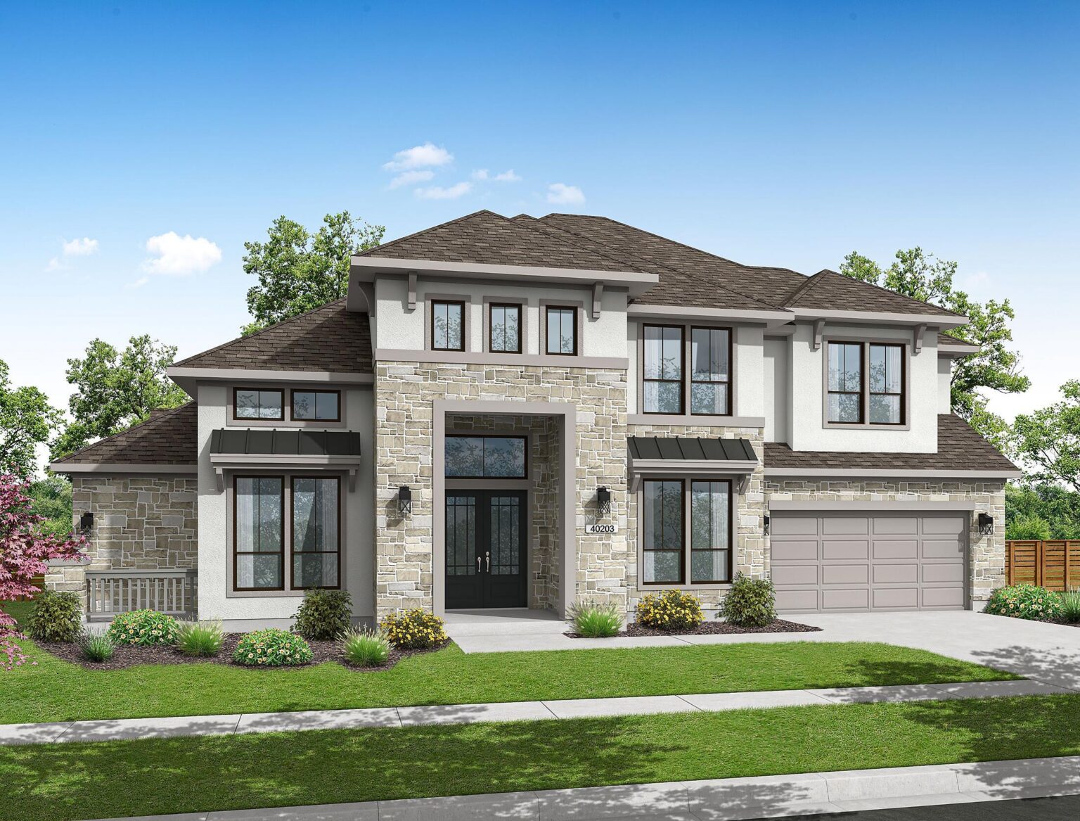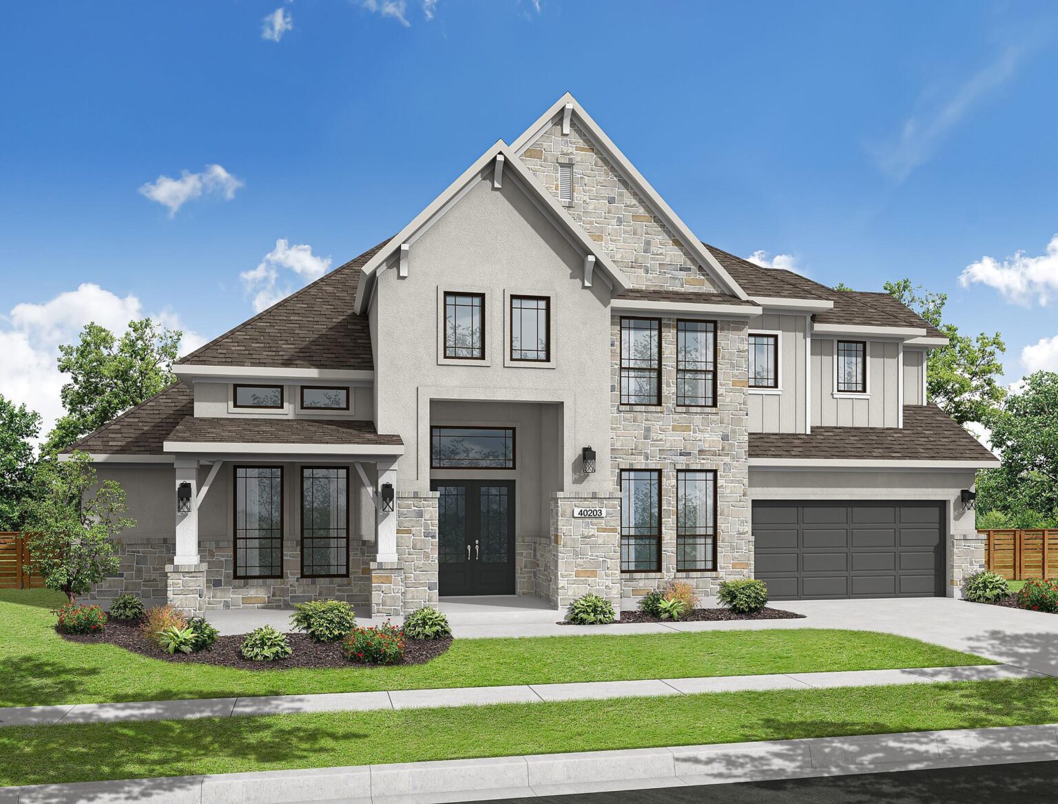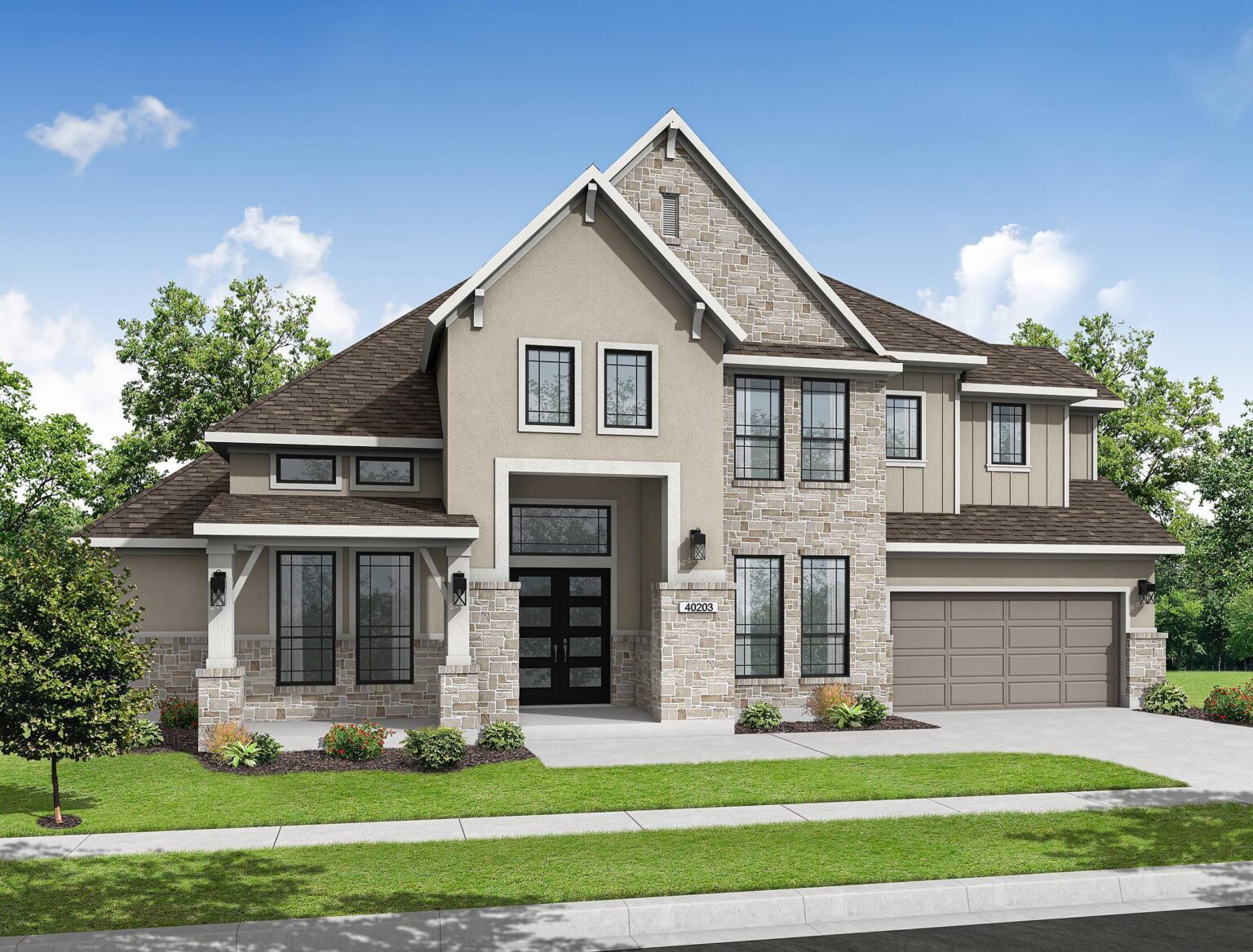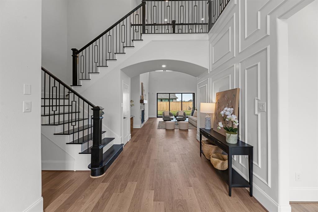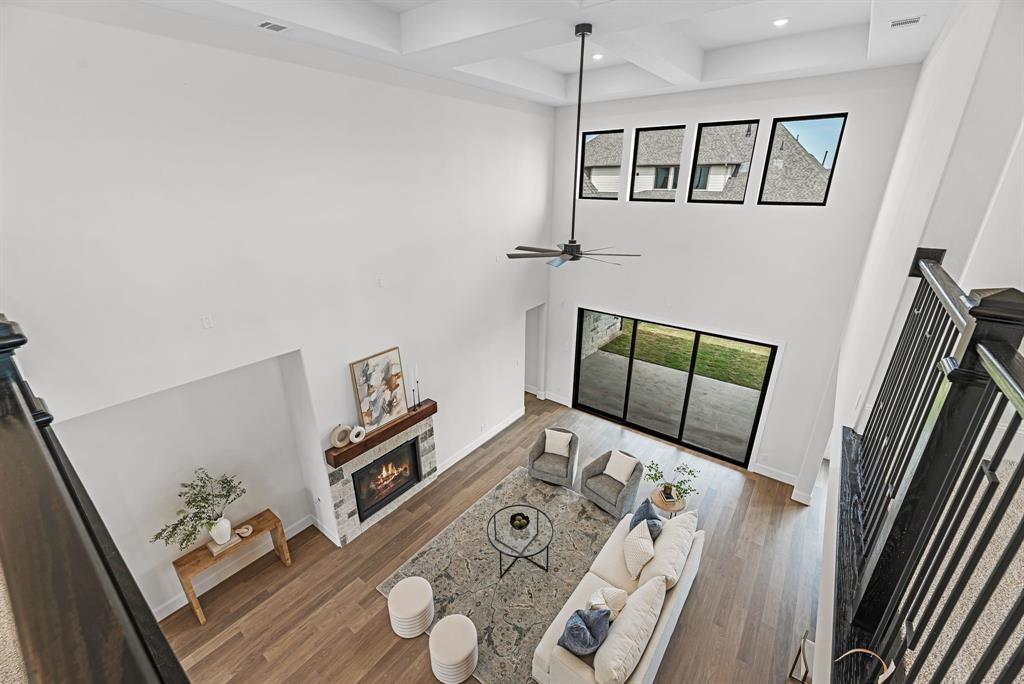 The Lexington plan blends timeless design with everyday function in a spacious 4,338 sq. ft. layout made for modern living. The main floor flows effortlessly from the chef-inspired kitchen and breakfast area into the open-concept living room and covered patio—perfect for casual family time or weekend entertaining. A tucked-away primary suite offers a private retreat with a spa-style bath, freestanding tub, and a massive designer walk-in closet. With a secondary bedroom and full bath also on the first floor, this plan is ideal for multi-generational living or hosting guests. Upstairs, the home opens to a generous game room, three more bedrooms, and two full baths, all connected by a gallery-style overlook to the living space below. Standout features include a timeless study, wine grotto, quartz countertops throughout, Electrolux® appliances, and pre-wired 5.1 surround sound. From the oversized pantry to the Energy Star® certified construction and tankless water heater, every inch is designed for comfort, convenience, and longevity. Lexington is where grand design meets true livability.