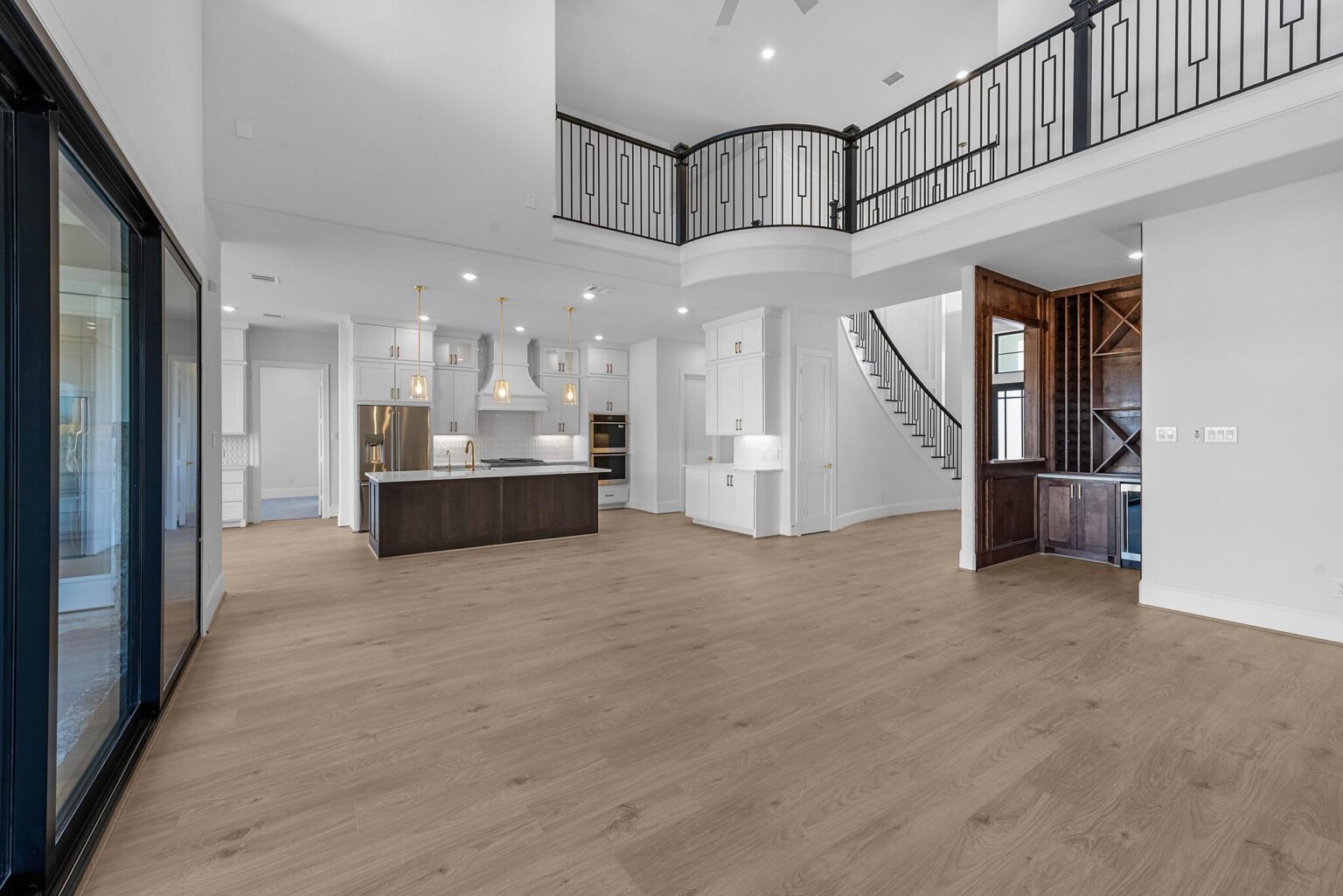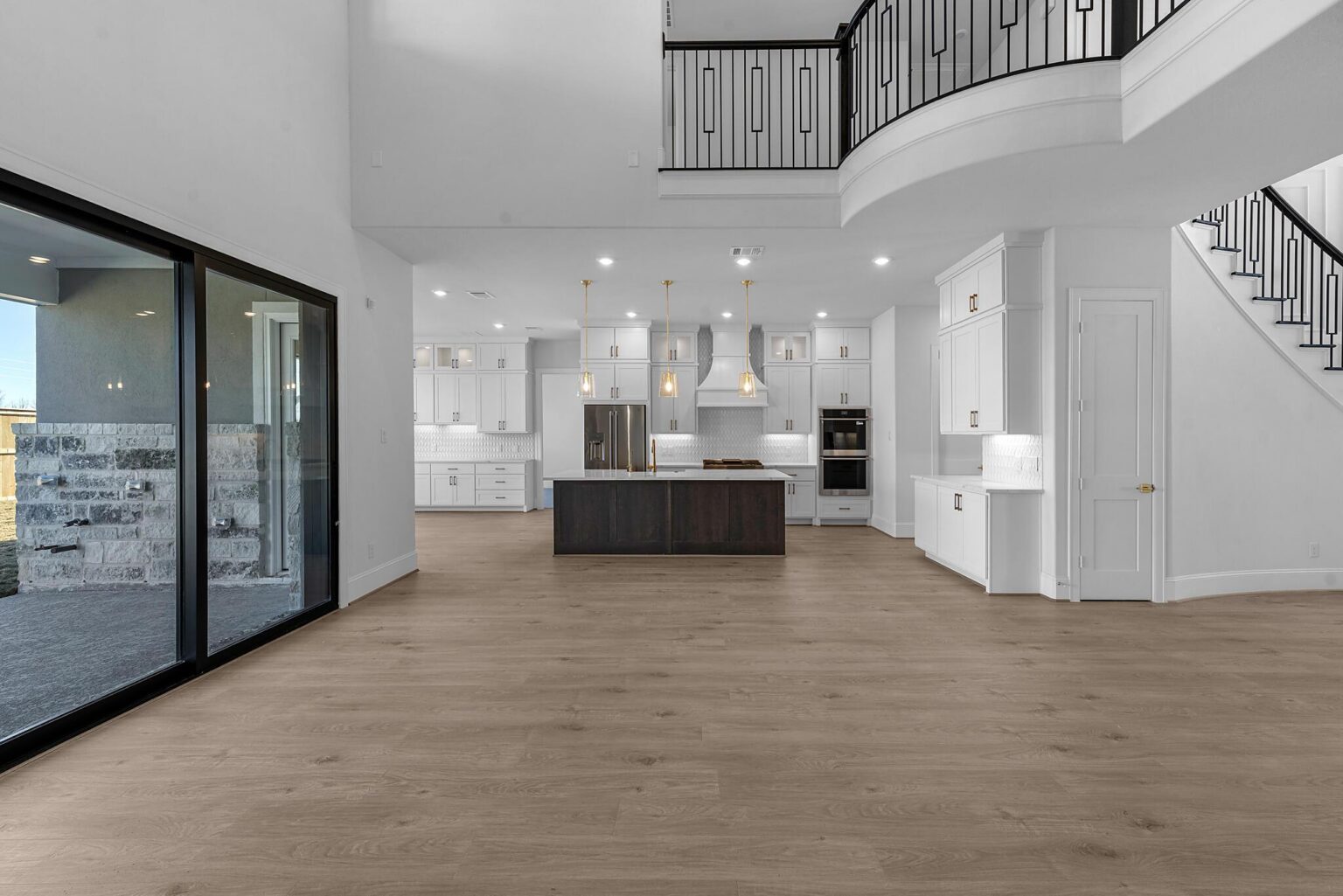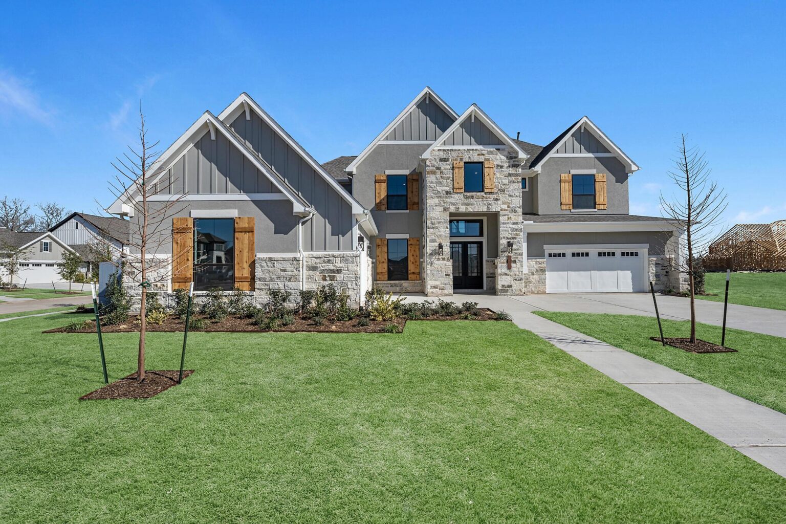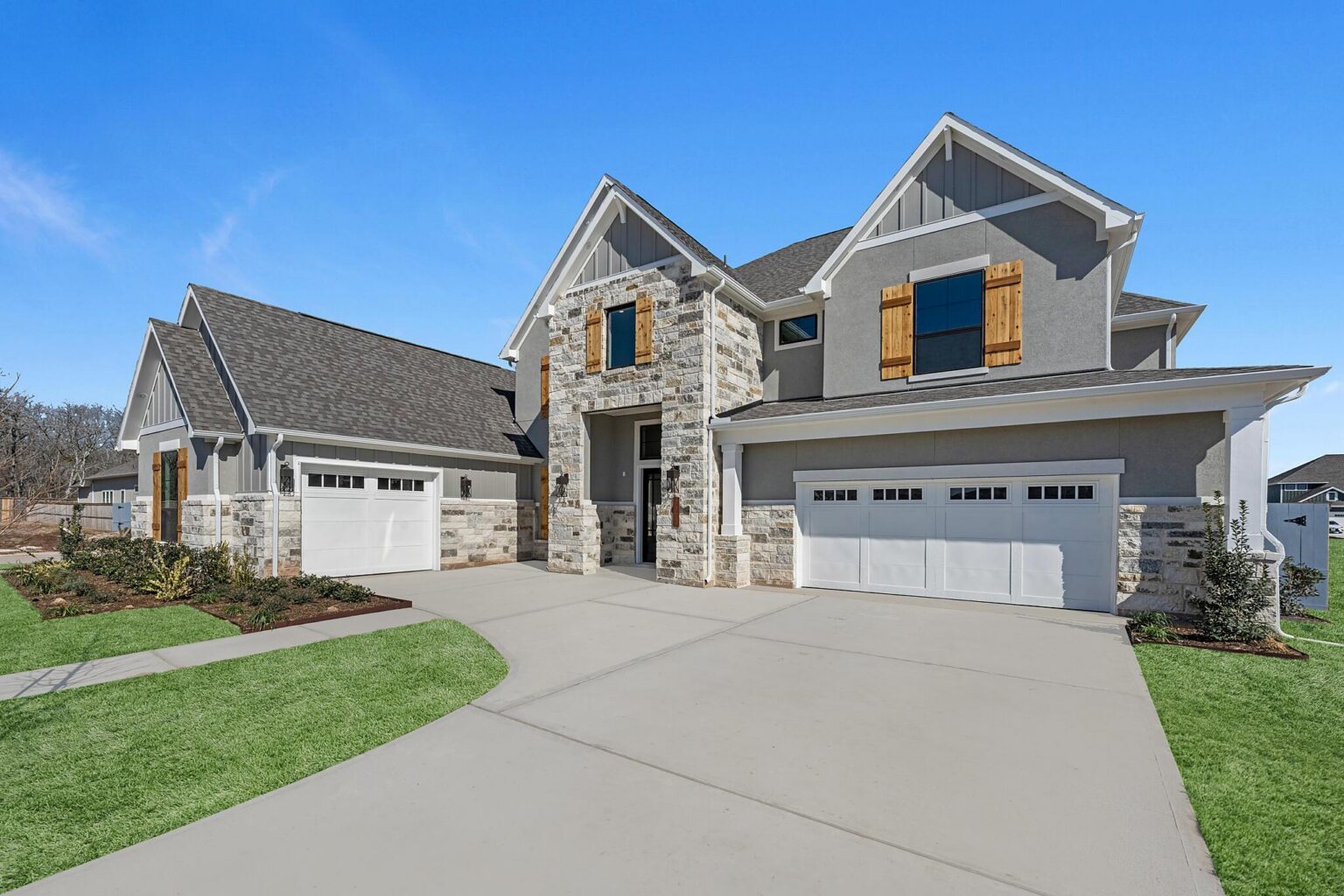The Belton is a stunning two-story home offering 5,272 sq. ft. of elegant living space designed for both comfort and entertaining. The main floor showcases an open-concept kitchen with Benedettini® cabinets, quartz countertops, and Electrolux® appliances, flowing seamlessly into the living and dining areas with soaring ceilings. A private primary suite features a spa-inspired bath with a freestanding tub, dual showerheads, and a designer walk-in closet. Upstairs, a spacious game room with a beverage center, media room, and multiple secondary bedrooms provide space for family and guests. Outdoor living is elevated with a Texas-sized covered patio, pre-plumbed for an outdoor kitchen, and a covered balcony off the game room. With luxury finishes and thoughtful design throughout, the Belton offers the perfect balance of sophistication and functionality.