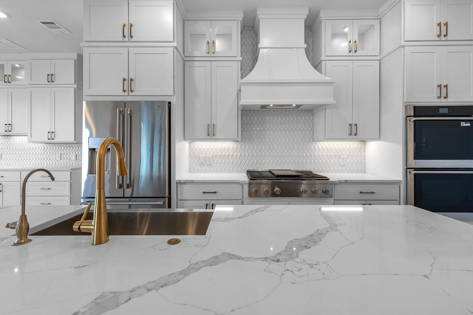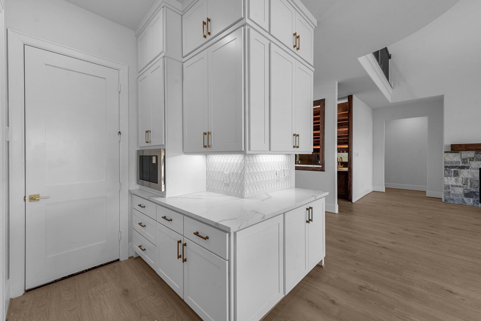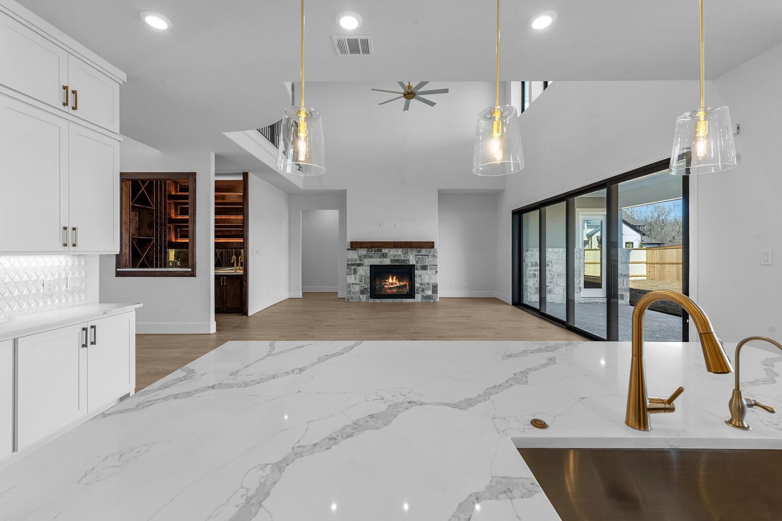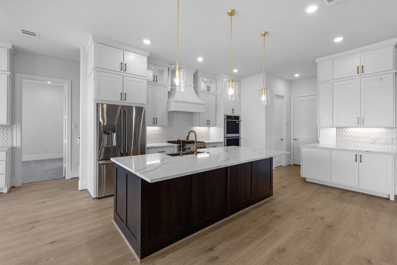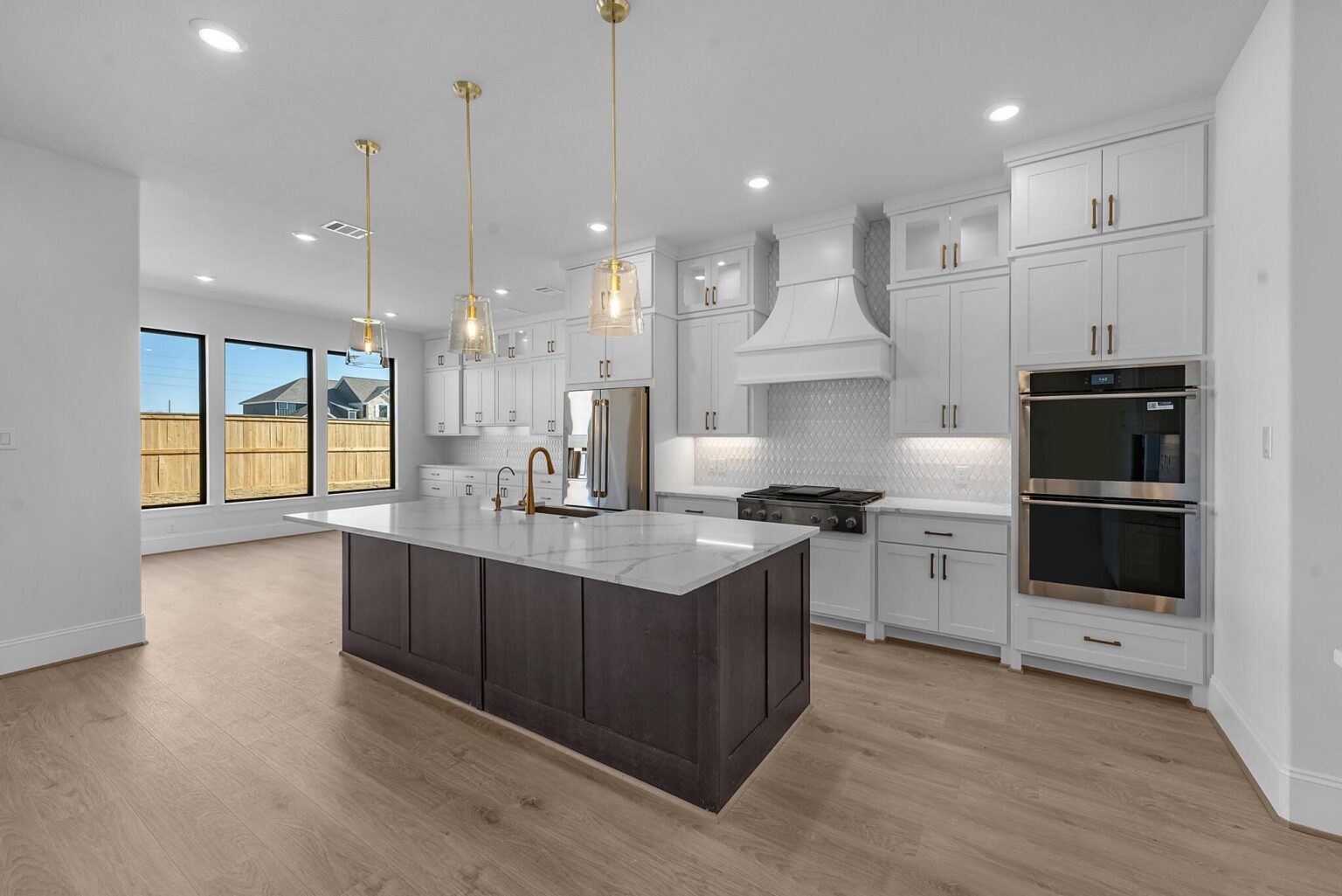 The Belton is a stunning two-story home offering 5,272 sq. ft. of elegant living space designed for both comfort and entertaining. The main floor showcases an open-concept kitchen with Benedettini® cabinets, quartz countertops, and Electrolux® appliances, flowing seamlessly into the living and dining areas with soaring ceilings. A private primary suite features a spa-inspired bath with a freestanding tub, dual showerheads, and a designer walk-in closet. Upstairs, a spacious game room with a beverage center, media room, and multiple secondary bedrooms provide space for family and guests. Outdoor living is elevated with a Texas-sized covered patio, pre-plumbed for an outdoor kitchen, and a covered balcony off the game room. With luxury finishes and thoughtful design throughout, the Belton offers the perfect balance of sophistication and functionality.
