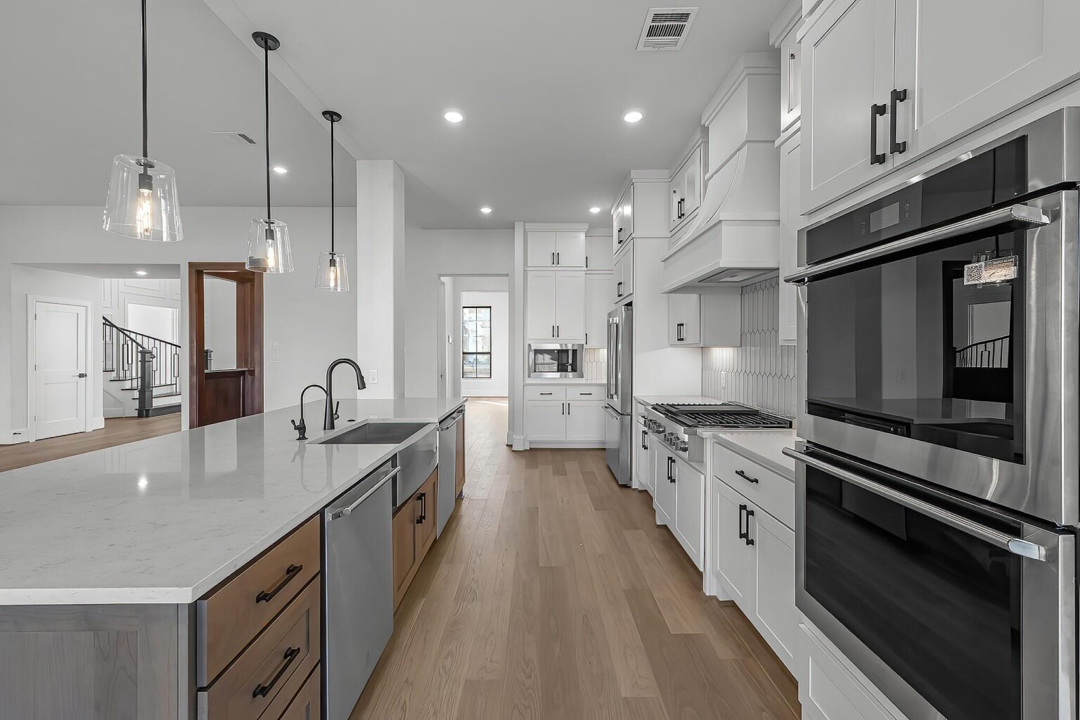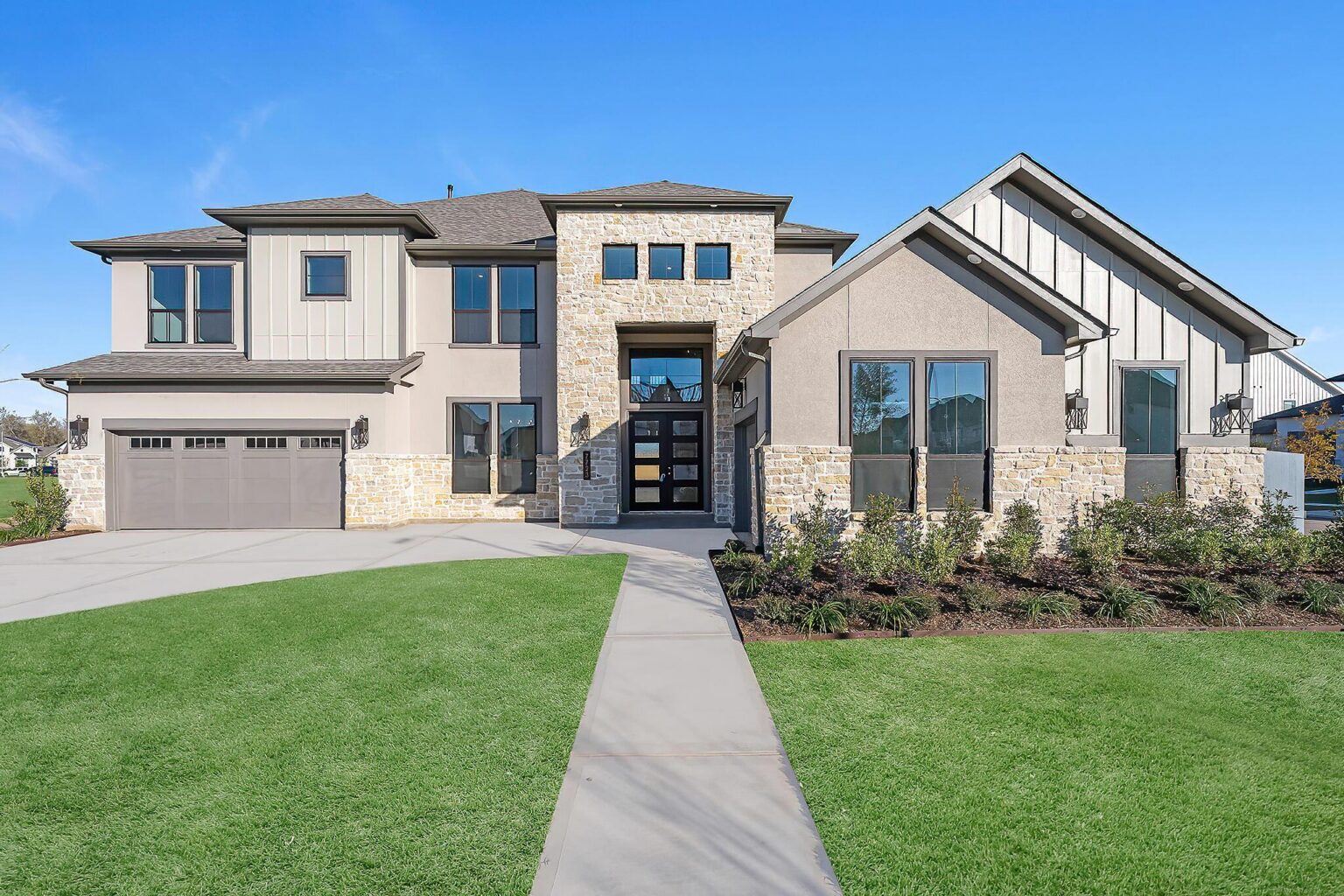 The Grapevine plan is a showstopping 5,462 sq. ft. floorplan that makes a bold first impression. The grand curved staircase sets the tone as you enter, leading into an open-concept living space anchored by a chef’s dream kitchen with Electrolux® appliances, quartz countertops, and a spacious walk-in pantry. A private primary suite offers the ultimate escape, complete with a spa-style bath, freestanding tub, and a walk-through designer closet that connects directly to the laundry room. With a guest bedroom and full bath also on the main floor, the layout supports both luxury and livability. Upstairs, five more bedrooms surround dual game rooms, a media room, and a stunning covered balcony—creating endless opportunities for entertaining, relaxing, or just living large. A wine grotto, two garages, Energy Star® efficiency, and tech-savvy upgrades like surround sound prewiring and CAT6 internet cabling seal the deal. Grapevine is more than a home—it’s a statement.