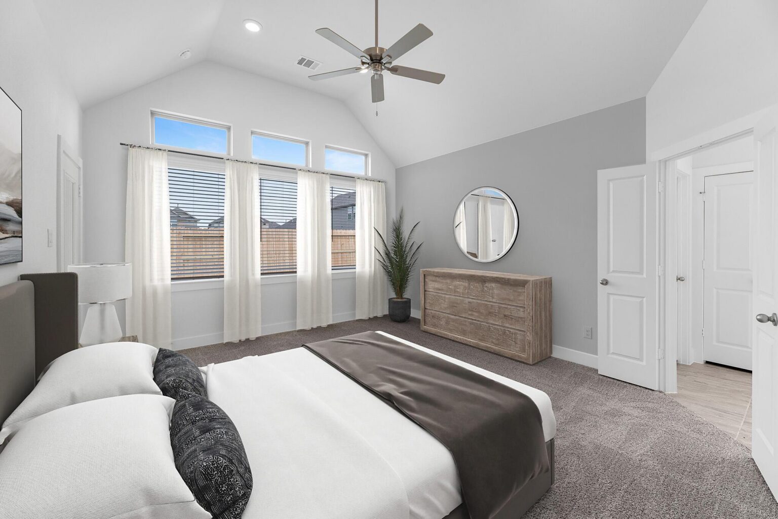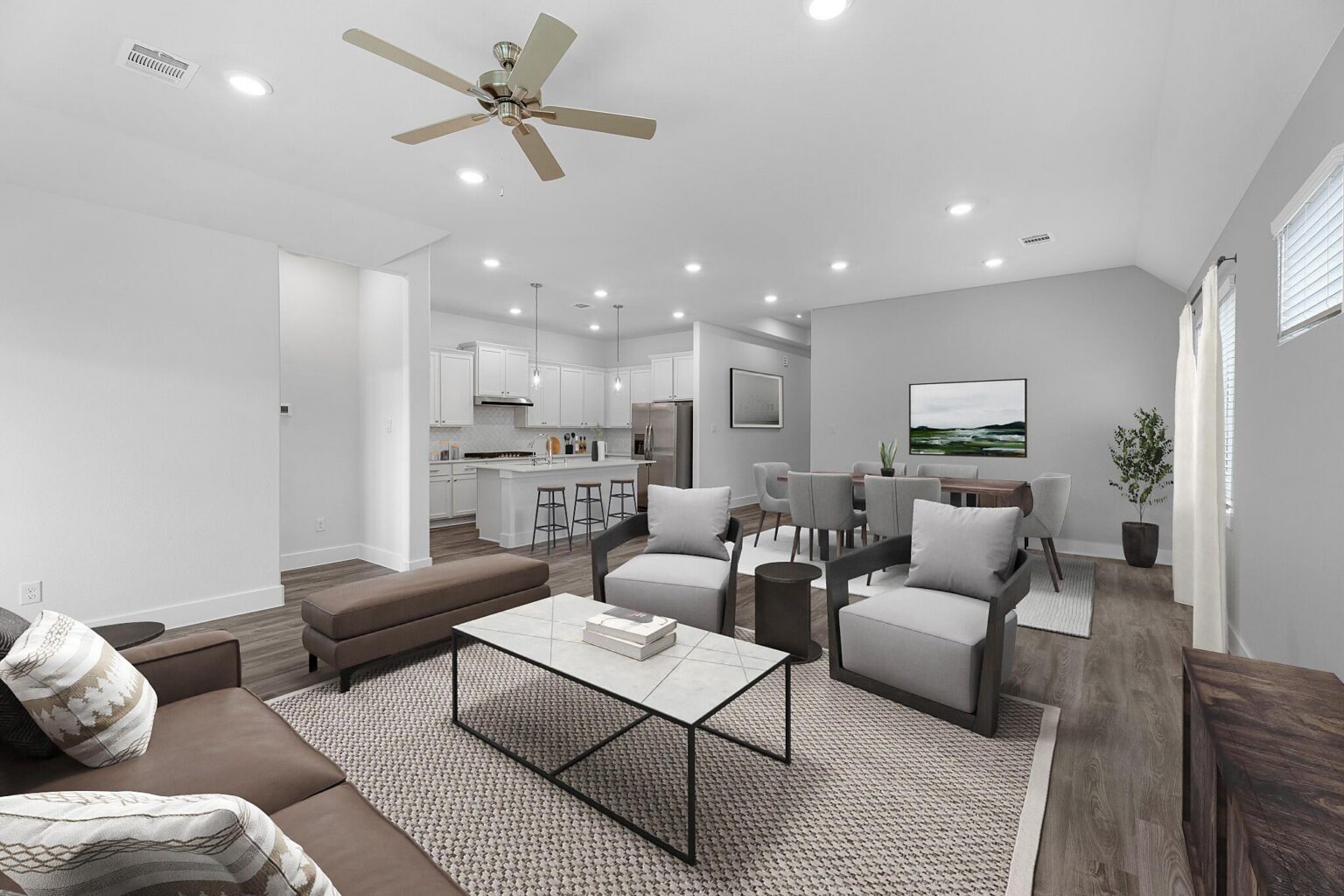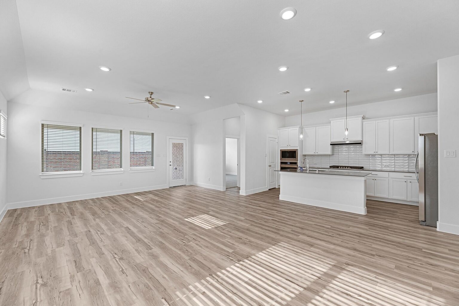 Discover the epitome of comfort and versatility in this stunning single-story residence boasting a captivating 4-bed, 3-bath Aspen floor plan. As you step into the welcoming foyer, a seamless transition unfolds, guiding you into the expansive open-concept living and dining area. The heart of the home, the primary retreat, awaits at the rear, ensuring a tranquil and private haven.