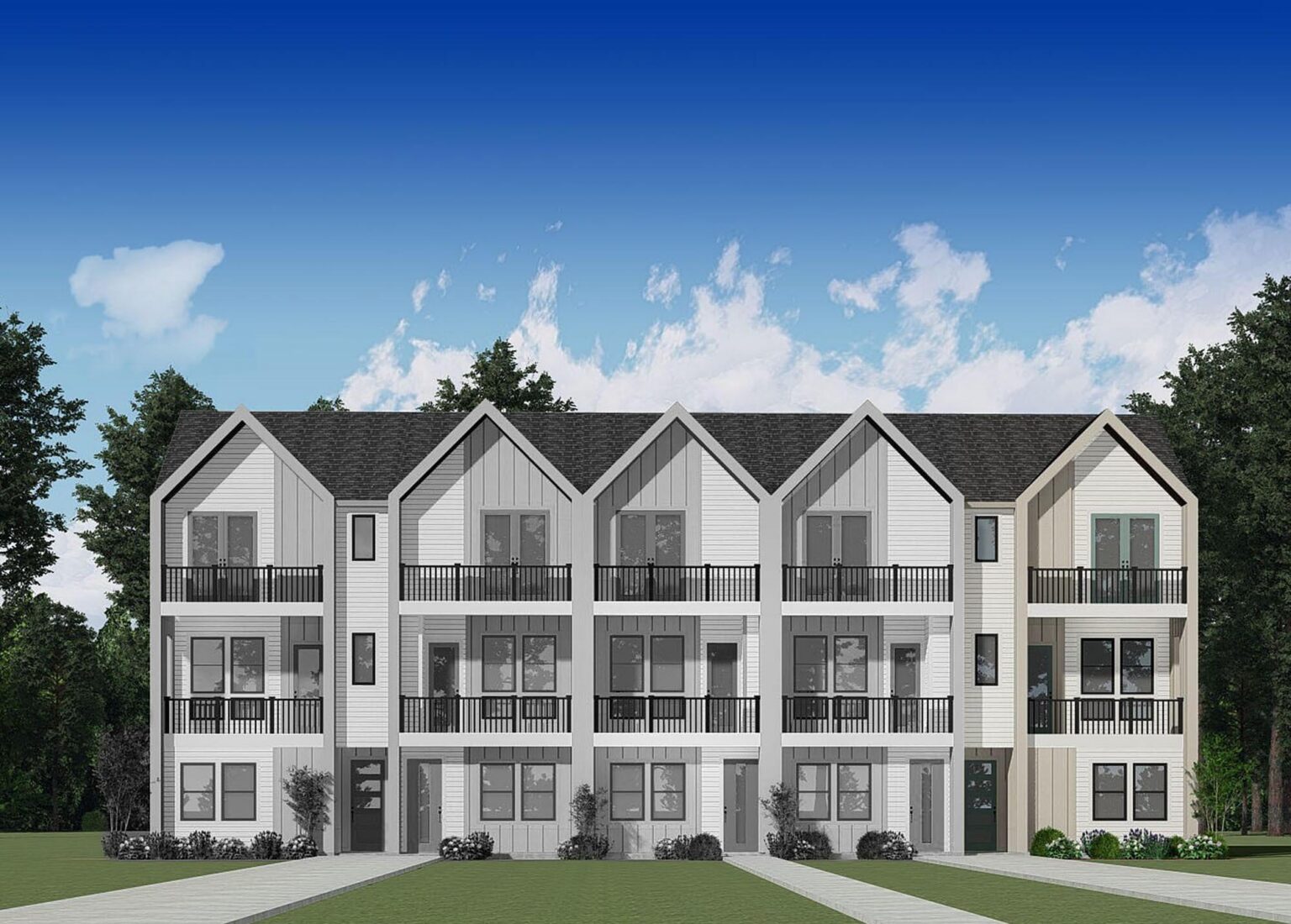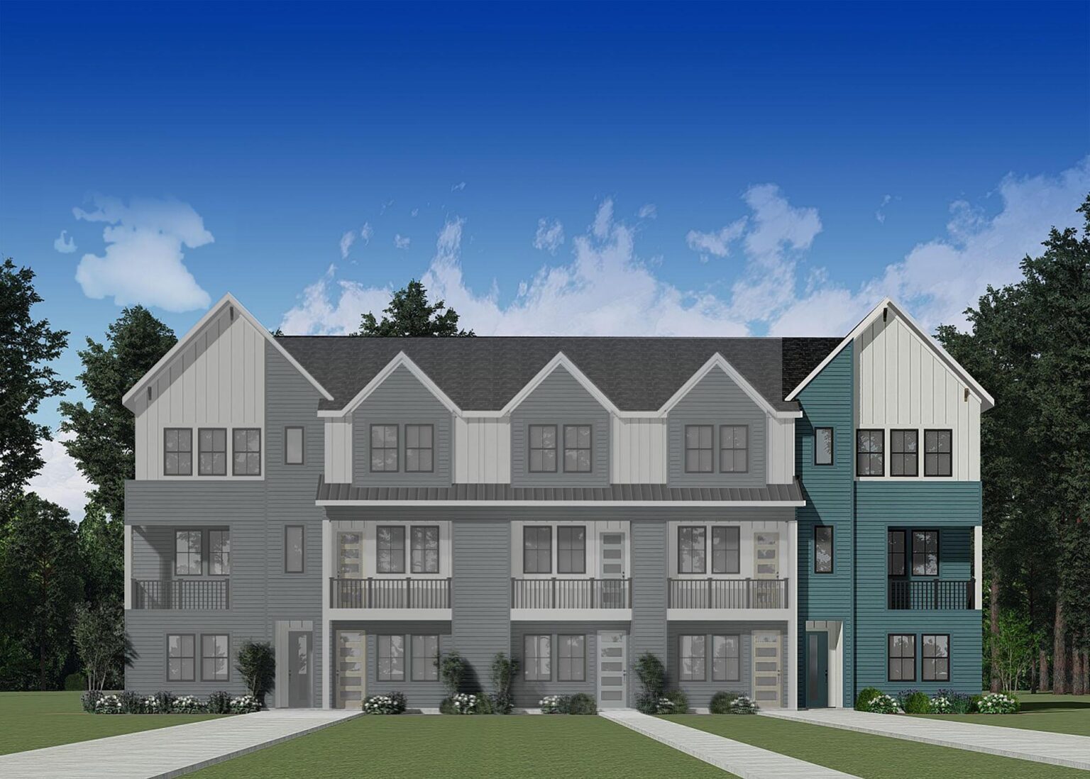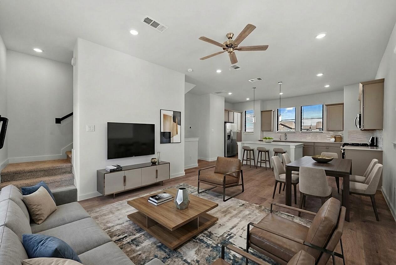 The Cedar floorplan offers 1,566 sq. ft. of modern living across three thoughtfully designed levels. The main floor includes a welcoming foyer, a private bedroom with a full bath, and a two-car garage, making it ideal for guests or a flexible living setup. On the second floor, an open-concept kitchen flows seamlessly into the living and dining area and extends to a private deck, perfect for entertaining or relaxing outdoors. The third floor features a spacious primary suite with a walk-in closet and a well-appointed bath, along with a secondary bedroom and full bath. A centrally located laundry area enhances everyday convenience. With its efficient layout, multiple living zones, and contemporary design, the Cedar plan delivers comfort and functionality in a low-maintenance home.
