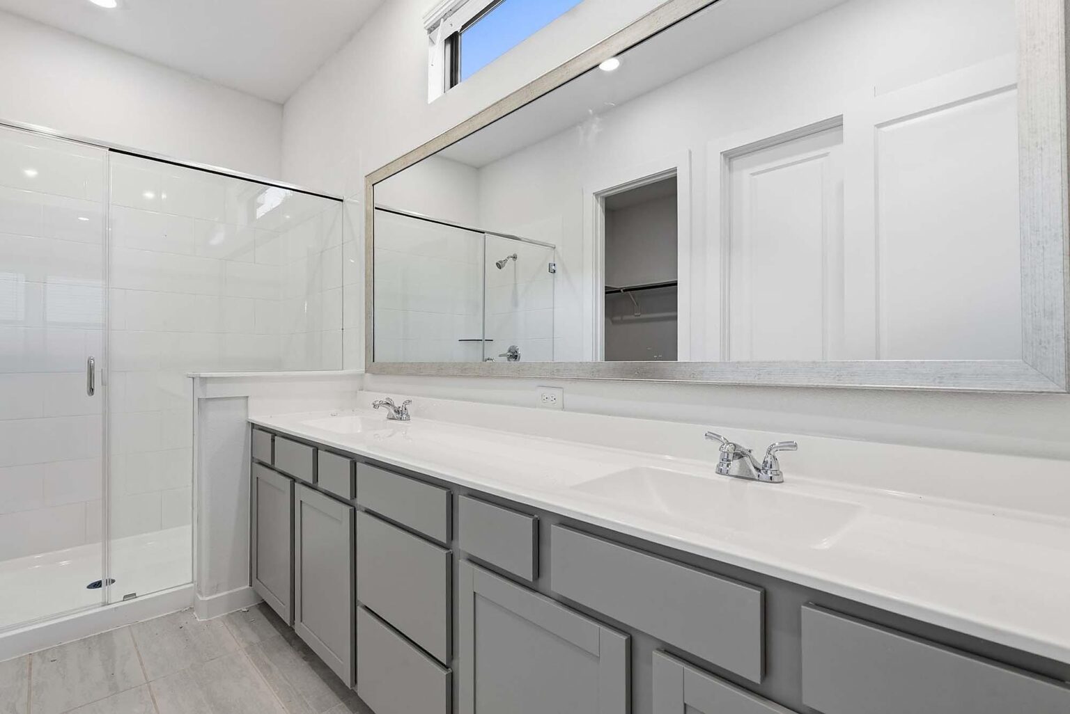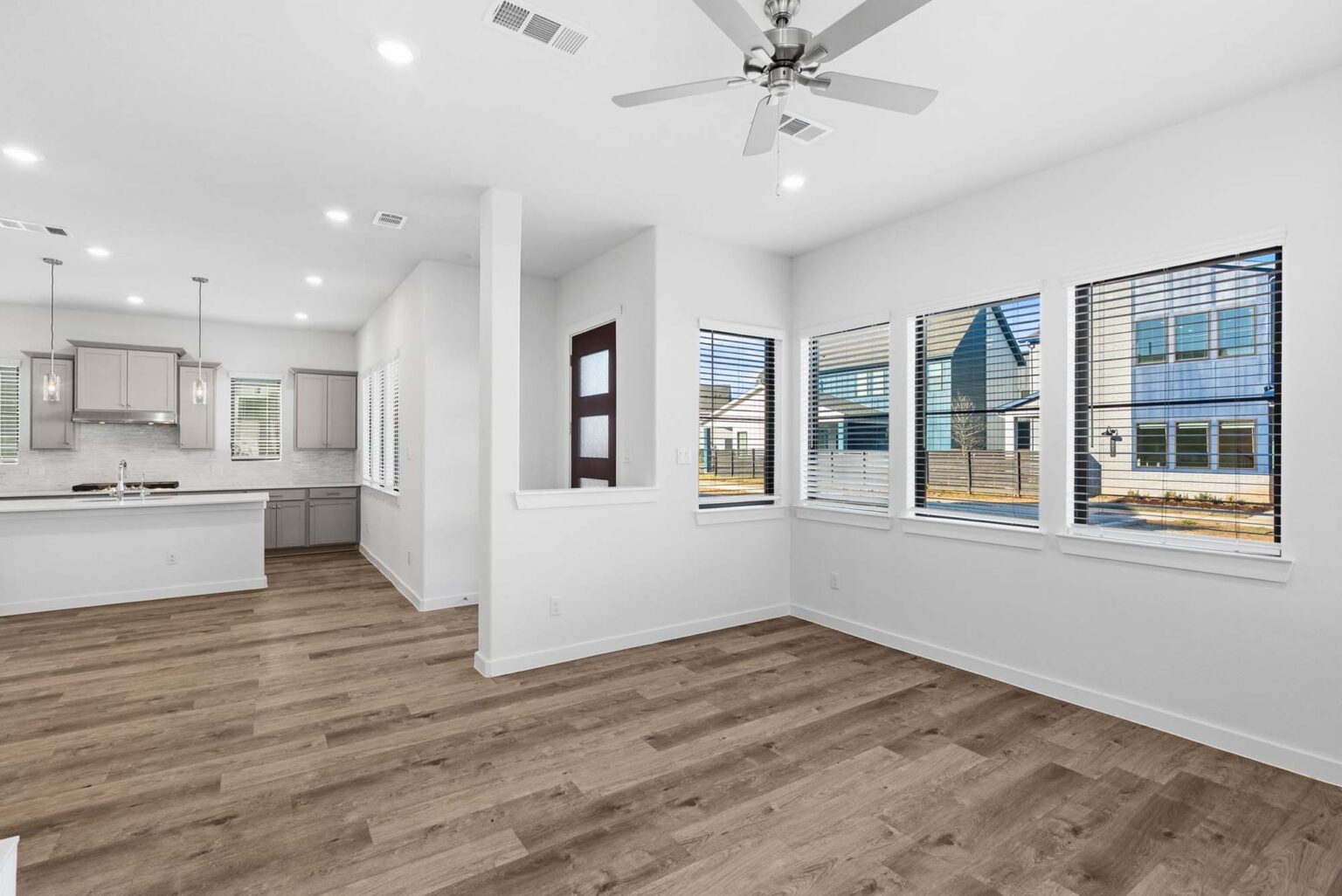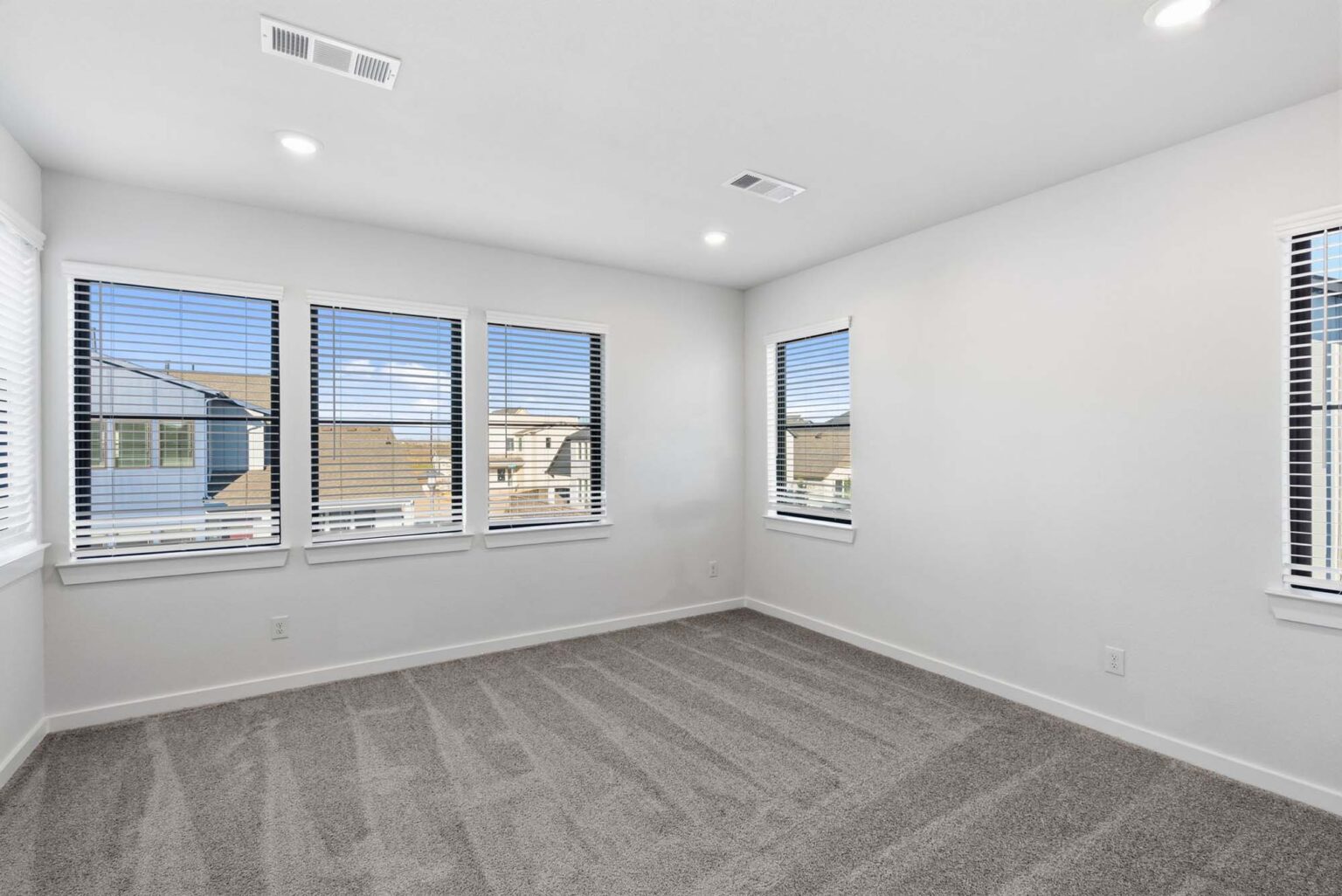 The Cardinal offers an expansive 2,181 square feet of flexible living space across two stories, thoughtfully designed for comfort and flow. The main floor features a spacious open-concept kitchen and dining area, complete with a walk-in pantry and oversized island, seamlessly connecting to the living room and a covered patio—perfect for entertaining. The private primary suite is also located downstairs and includes a large walk-in closet and a luxurious en suite with dual vanities and a glass-enclosed shower. Upstairs, a bright loft anchors three secondary bedrooms, each with easy access to two full bathrooms and a central gallery-style hallway. With finishes like quartz countertops, vinyl plank flooring in common areas, LED lighting, and energy-efficient systems, the Cardinal combines style with smart functionality. Every detail—from the WiFi-enabled garage door to the elegant 8' entry door—reflects the upscale standards of the Indigo community