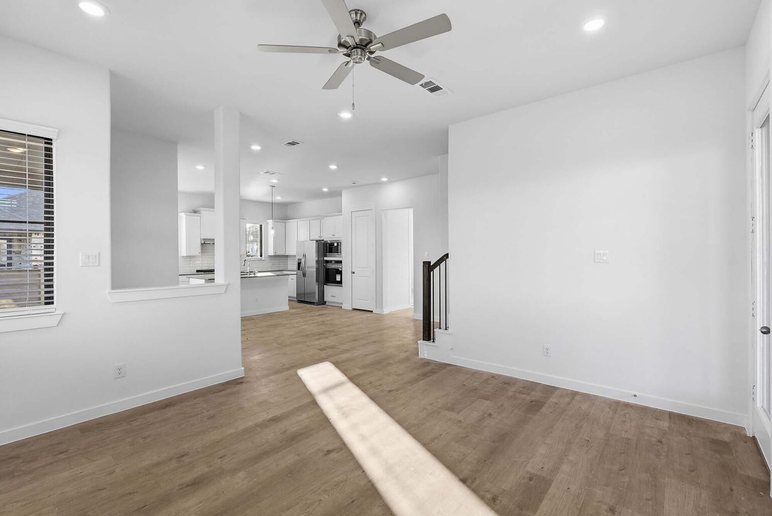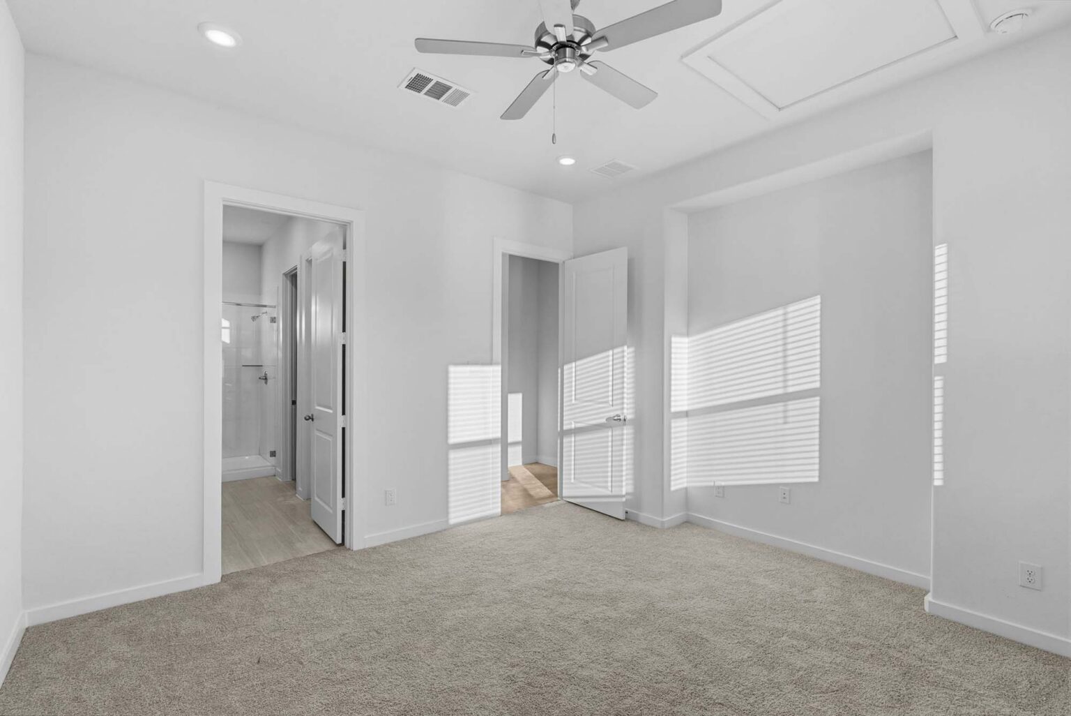 The Cardinal offers an expansive 2,181 square feet of flexible living space across two stories, thoughtfully designed for comfort and flow. The main floor features a spacious open-concept kitchen and dining area, complete with a walk-in pantry and oversized island, seamlessly connecting to the living room and a covered patio—perfect for entertaining. The private primary suite is also located downstairs and includes a large walk-in closet and a luxurious en suite with dual vanities and a glass-enclosed shower. Upstairs, a bright loft anchors three secondary bedrooms, each with easy access to two full bathrooms and a central gallery-style hallway. With finishes like quartz countertops, vinyl plank flooring in common areas, LED lighting, and energy-efficient systems, the Cardinal combines style with smart functionality. Every detail—from the WiFi-enabled garage door to the elegant 8' entry door—reflects the upscale standards of the Indigo community