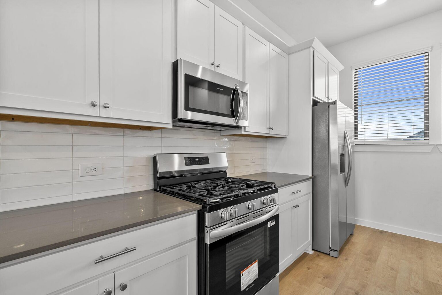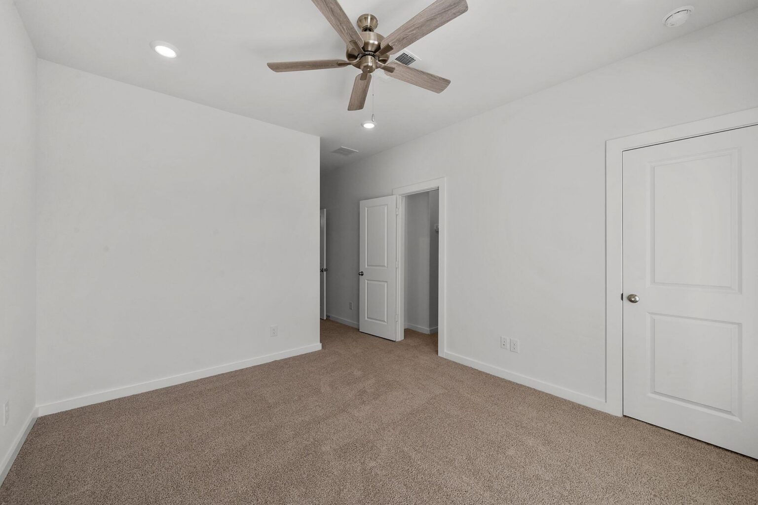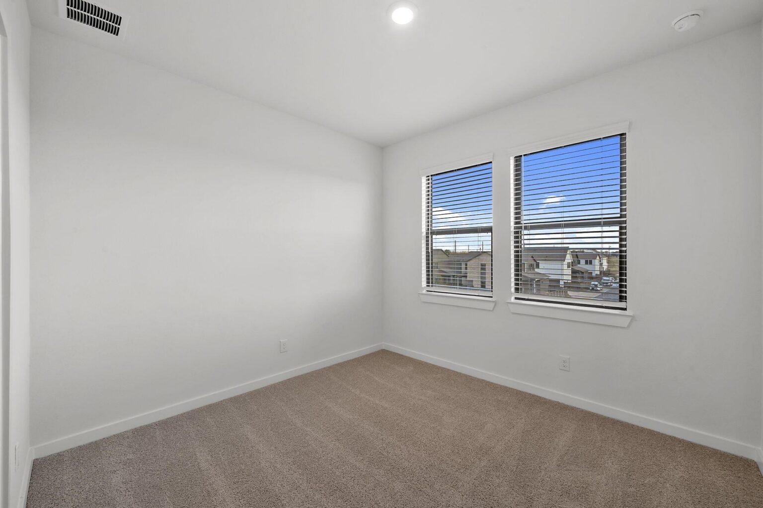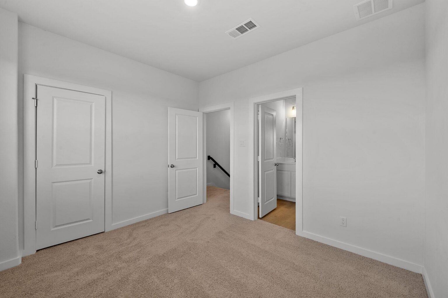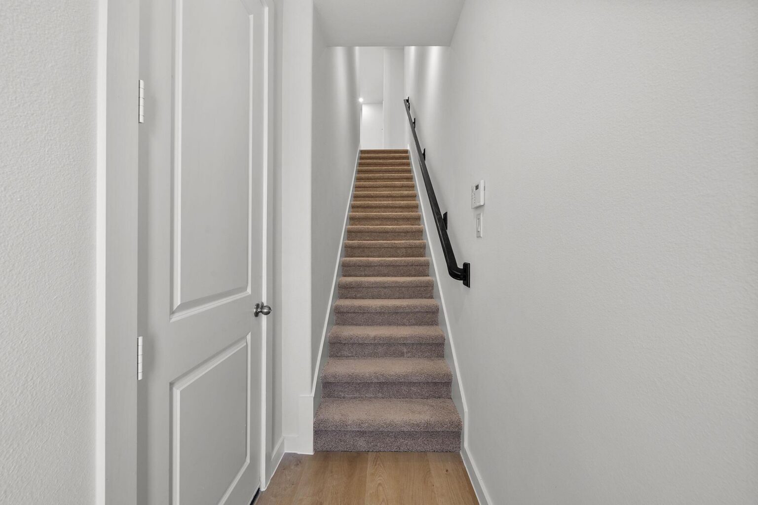 The Cypress floorplan is a smartly designed 1,231 sq. ft. townhome-style layout offering three levels of modern, efficient living. The first floor features a deep two-car garage with extra storage space and a welcoming foyer entry. On the second floor, an open-concept kitchen, living, and dining area creates a bright and flexible space, complete with a private deck for outdoor enjoyment. The top floor includes a well-appointed primary suite with a spacious bath, along with a secondary bedroom featuring its own walk-in closet and adjacent full bath. A conveniently located laundry area adds everyday ease. With its thoughtful layout and contemporary flow, this plan is ideal for those seeking low-maintenance living without sacrificing style or comfort.