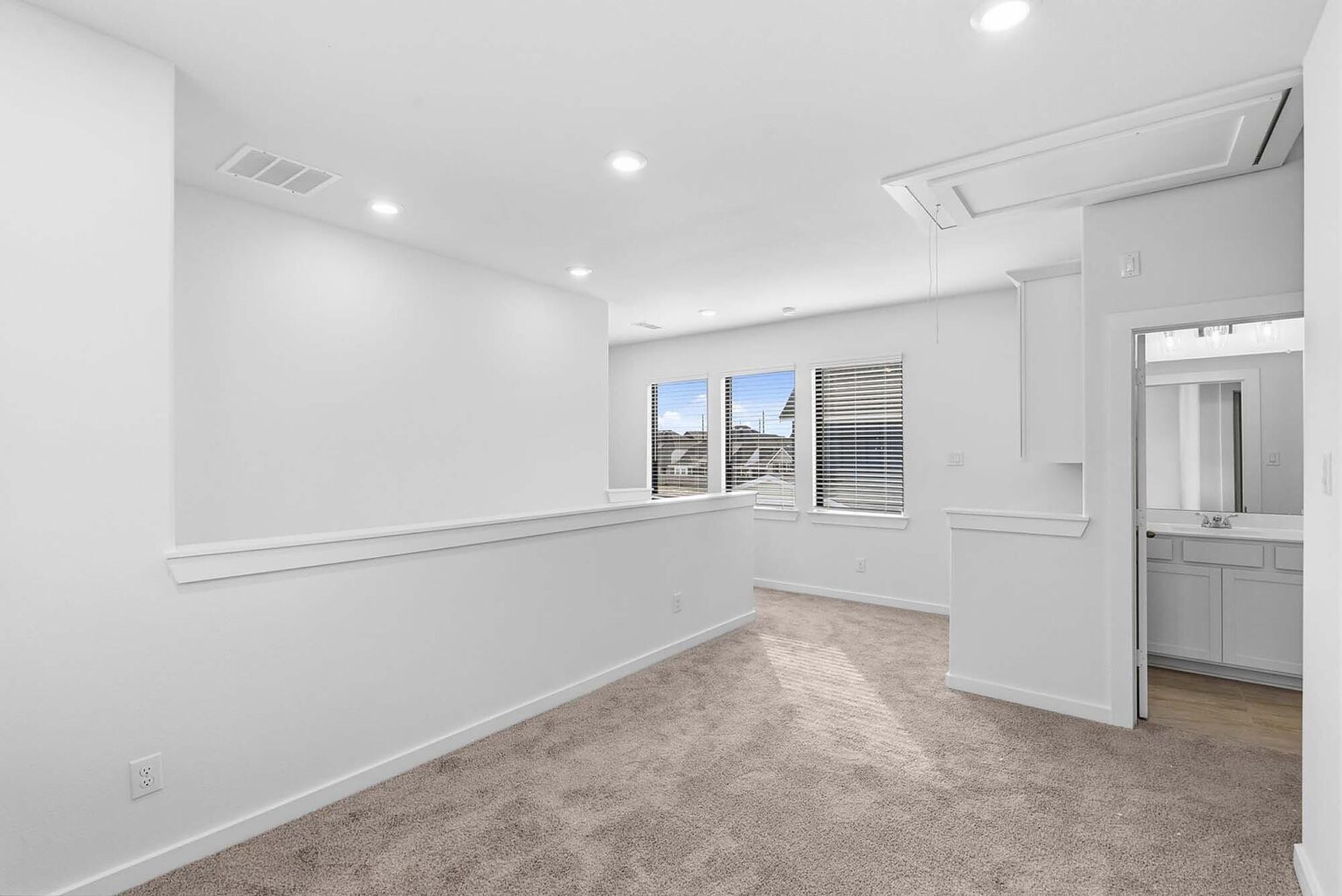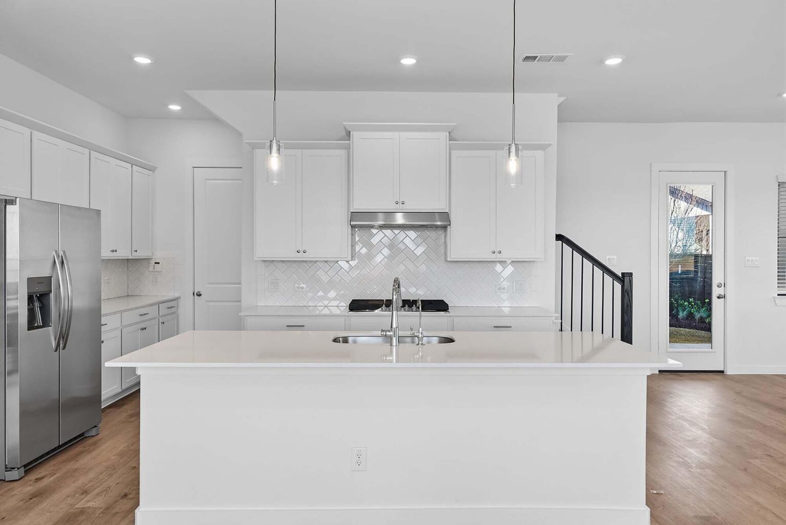 The Heron floorplan blends function and comfort across 1,970 square feet, featuring three bedrooms, three full bathrooms, and an open-concept layout ideal for everyday living. The main floor centers around a spacious kitchen with a central island and overlooks both the dining and living areas, seamlessly connecting to a covered patio perfect for outdoor entertaining. A full bedroom and bathroom on the main level offer flexible living for guests or multi-generational households. Upstairs, a versatile loft and convenient coffee bar sit between the two remaining bedrooms, including a private primary suite with dual walk-in closets and a spa-style bathroom. The design also includes a dedicated laundry room and a two-car garage with smart WiFi-enabled access. Finishes like quartz countertops, luxury vinyl plank flooring, and LED lighting reflect the quality craftsmanship showcased in the Indigo Clusters community.