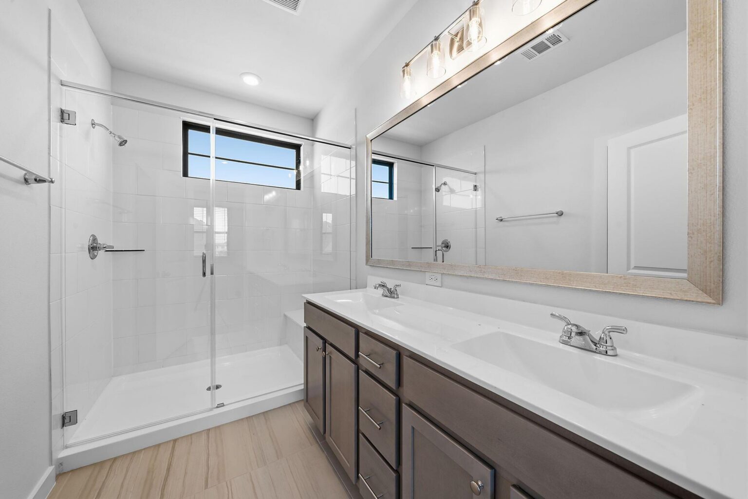 The Jasper Duet floorplan offers 1,815 sq. ft. of thoughtfully designed two-story living with a blend of open spaces and private retreats. The main floor features an open kitchen, living, and casual dining area that flows seamlessly to a covered patio, creating an ideal setup for everyday living and entertaining. A first-floor secondary bedroom with a nearby full bath adds flexibility for guests or a home office, while the two-car garage includes a convenient drop zone. Upstairs, the primary suite serves as a private escape with a spacious walk-in closet and a well-appointed bath. A central loft provides additional living space, complemented by a second bedroom, full bath, and an upstairs laundry for added convenience. With smart storage, modern finishes, and an efficient layout, this plan delivers comfort, functionality, and low-maintenance style.